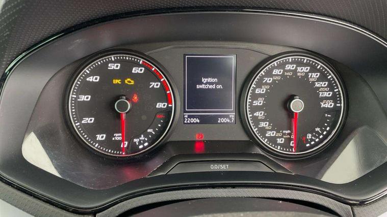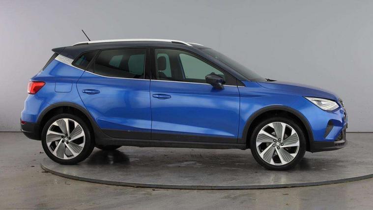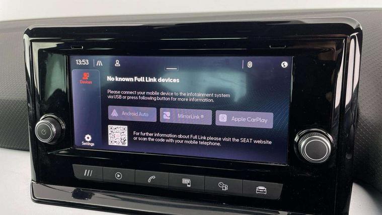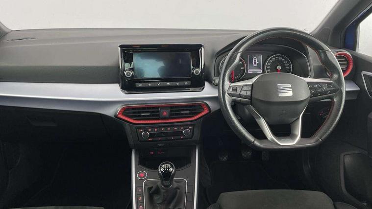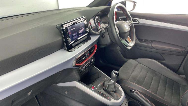 'Lights On' Reminder warning buzzer, Analogue cockpit with physical dials, Digital clock, E-call, Electric speed sensitive power steering, Full Link Smartphone Integration with Mirror Link, Apple Car Play, Google Android Auto with USB Type C cable for Apple and Android compatibility, Lane keeping system, Low fuel warning light, Outside temperature display, Rear parking sensor, RPM counter, Seat connect with safety, service and remote, SEAT Drive profile - Four different models normal-sport-eco-individual, steering response, throttle response, Trip computer, Wireless phone charger, Bluetooth interface for hands free and audio streaming, DAB digital radio and AM/FM radio, Media system with 8.25" colour touchscreen with USB port (type c), Steering wheel mounted audio controls, Anti theft roof antenna, Automatic activation of hazard warning lights, Body coloured bumpers, Body coloured door handle inserts, Chrome roof rails and window surrounds, Dark tinted rear windows, Dimming rear view mirror, Electric front/rear windows, Electrically adjustable and heated door mirrors, Front fog lights with cornering function and rear fog light, FULL LED automatic headlights with dynamic headlight range control, coming and leaving home, LED daytime running lights, LED rear tail lights and licence plate lights, Protective side mouldings, Rear side wing doors, Rear spoiler, Rear window wash/wipe, Roof colour door mirrors, Third brake light, Twin exhaust pipe styling hidden exhaust pipe, Visible VIN plate, Windshield wiper with intermittent control and potentiometer, 2 cupholders, 3 seat bench in 2nd row, 60/40 split folding rear seat, Aircare filter, Black interior roof, Double boot floor, Driver sunvisor with covered mirror + card holder, Dual zone climate control, Front comfort seats, Front courtesy light with 2x front and 2x rear reading lights, Gear shift indicator, Height adjustable front seats, Height/reach adjustable steering column, Illuminated boot, Instrument lighting with brightness control, Interior ambient lighting, Interior light in footwell, central console and door panel, ISOFIX points in outer rear seats with top tether anchorage points, Microsuede cloth upholstery, Passenger sunvisor with vanity mirror, Perforated flat bottomed leather steering wheel/gear knob/handbrake with red stitching and FR logo, Single front passenger seat, Two front and three rear height adjustable headrests, Interior chrome pack - Arona, 3 point seatbelts on all rear seats, ABS, Active front headrests, Child locks on rear doors, Driver and front passenger airbags with front passenger airbag de activation, front side and curtain airbags, Electronic stability control, Emergency Brake Assist (EBA) and front assist, Front and rear seatbelt reminder, Hill hold control, Multi-Collision braking, Tiredness recognition system, Traction control, Tyre pressure monitoring system, Alarm with back-up horn, Electronic engine immobiliser, KESSY Keyless entry and go, Locking wheel bolts, Remote central locking + deadlocks, Tow away protection, Titan black dashboard,