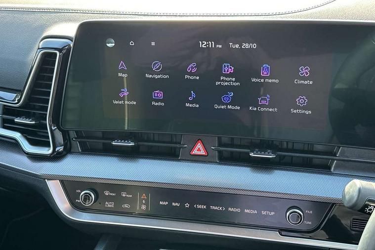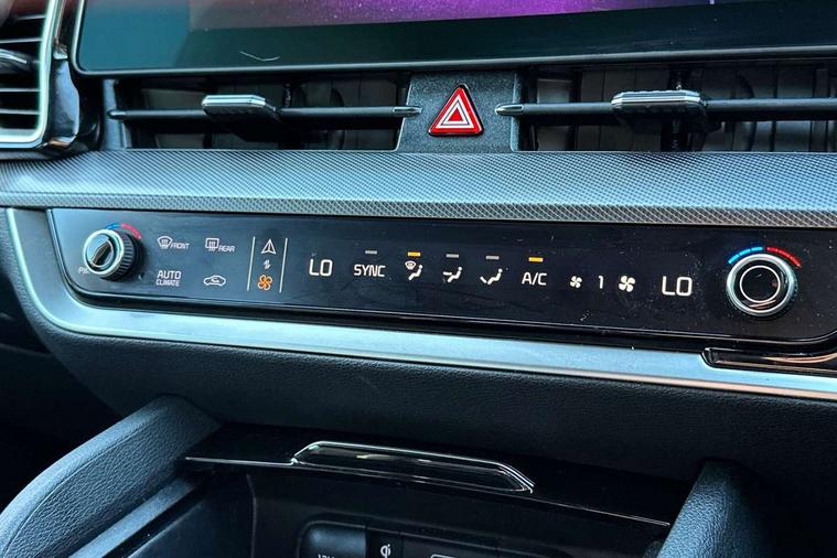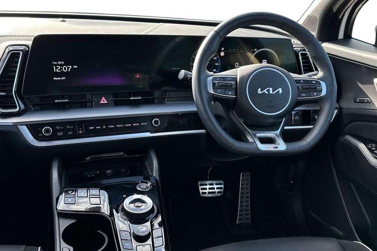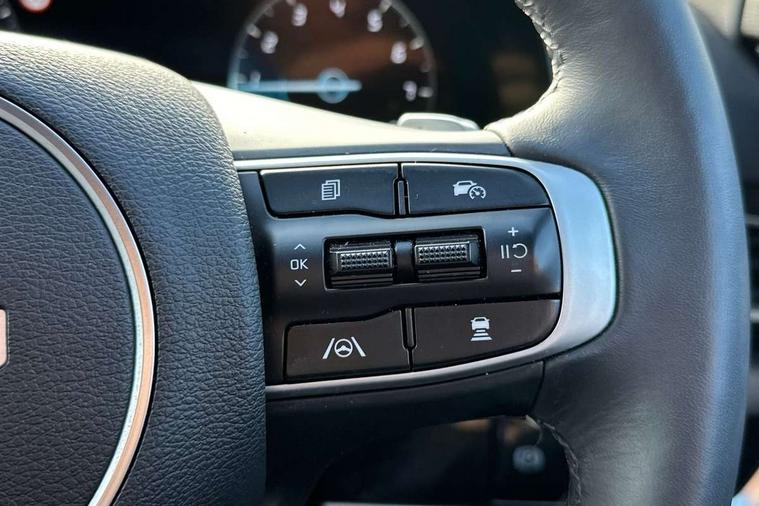 12.3" Driver display screen, 12.3" Touchscreen navigation system, 2 rear USB-C ports, 360 degree around view monitor, Apple car play/Android Auto, Blind spot collision avoidance assist, Blind spot view monitor, Drive mode selector, Driver attention warning, E-call, Emergency stop signalling system, Forward collision avoidance assist (FCA) - city/pedestrian/cyclist/junction covering, Front and rear parking sensors, Highway Driving Assist (HDA), Intelligent speed limit assist, Kia Connect (UVO), Lane Following Assist (LFA), Lane keep assist, Low washer fluid warning, Motor driven power steering, Parking collision avoidance assist (PCA), Rear cross traffic collision avoidance assist (RCCA), Reversing camera system integrated into centre fascia screen, Safe exit warning (SEW), Smart cruise control with stop and go functionality, Smart power tailgate, Speed limiter, Trip computer, Windscreen washer level indicator, Wireless Smartphone charger, 1x USB-C port in front, Bluetooth audio streaming, DAB Radio with MP3, Harman Kardon premium sound system with 8 speakers, Steering wheel mounted audio controls, USB C type charging ports on centre console, USB port for connection of a media device, All round electric windows with drivers and front passenger auto up/down function, Auto dimming rear view mirror, Automatic headlight control system, Automatic window defogger, Black and body coloured bumpers, Body colour exterior door handles, Body colour radiator upper garnish and door garnish, Dual LED headlights with adaptive driving beam, Electrically adjustable/heated/folding door mirrors with LED indicators, Front and rear chrome skid plates, Gloss black door mirrors, Gloss black radiator grille, Gloss black side sill and wheel arch body mouldings, Glossy black roof rack, GT-Line exterior styling, Heated rear window, High beam assist, Interior electrochromic mirror, LED daytime running lights, LED front fog lamps, LED High mounted stop light, LED rear combination lamp, Panoramic sunroof with tilting and sliding function with electric blind, Rain sensing wipers with aero blades, Rear fog lamp, Rear privacy glass, Rear side wing doors, Rear spoiler, Rear wiper, Satin finished beltline, Silver window surround, Tinted rear glass, Trailer stability assist, 12V power socket in front centre fascia and luggage compartment, 3 seat bench in 2nd row, 3 x passenger assist grips, 40/20/40 split folding rear seat, All-round height adjustable headrests, Alloy pedals, Automatic air conditioning, Black headlining, Centre console storage box, Cupholders in rear armrest, Customisable ambient lighting, Door courtesy lamps, Drink holder at centre armrest, Driver and front passenger side sunvisors with illuminated vanity mirrors, Drivers seat power lumbar support, Electric adjustable driver seat with memory function, Electric adjustable front passenger seat, Front and rear door storage, Front seat and rear pockets, Gear shift indicator, Glovebox illumination, GT-Line Interior Styling, Heated front and outer rear seats, Heated steering wheel, ISOFIX Child seat top tethers and anchor fixings outer rear seats, Leather steering wheel, LED front cabin light, LED interior personal lamp, LED lighting in overhead console, LED rear reading lights, Luggage area LED light, Luggage area load cover, Luggage area parcel shelf, Luggage board, Luggage compartment under floor storage, Luggage net with hooks, Manual adjust steering wheel, Metal paint interior door handles, Paddle shift controls, Rear air conditioning, Rear cabin light, Rear coat hooks, Single front passenger seat, Suede leather upholstery, Ventilated front seats, Ventilation ducts to rear compartment, Active front headrests, All round 3-point seatbelts, Anti-lock braking system (ABS), Dual front side airbags, Dual horn, Dynamic brake control, Electronic parking brake with auto hold function, Electronic stability control with downhill brake control, Front passenger airbag cut-off switch, Front seatbelt pretensioners + load limiters, Height adjustable front seatbelts, Hill start assist control (HAC), Impact sensing auto door unlocking, Multi collision brake assist, Rear airbags, Rear door child safety locks, Rear seat alert system, Seatbelt reminder warning, Traction control, Twin curtain airbags, Twin front airbags, Tyre pressure monitoring system, Vehicle stability management, Customisable automatic door locking, Customisable automatic door unlocking, Door deadlocks, Engine Start/Stop Button with Smart Entry System, Locking wheel nuts, Smart key with motion sensor, Speed sensitive auto door locking, Thatcham category 2 security alarm and immobiliser, Visible vehicle identification number, Aluminium pattern finish centre fascia and door garnish, 19" GT-Line alloy wheels, Tyre mobility kit,