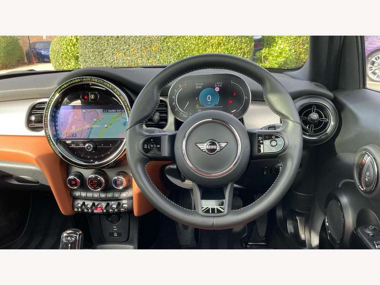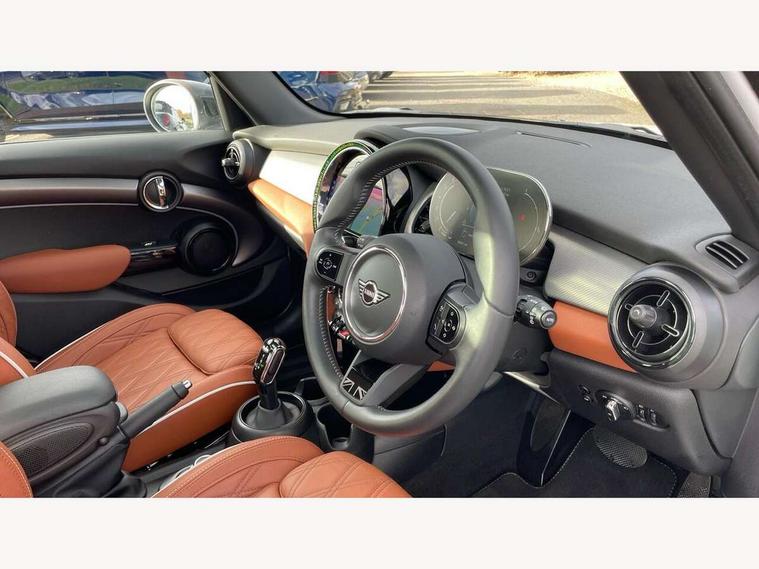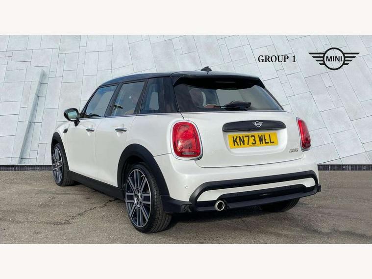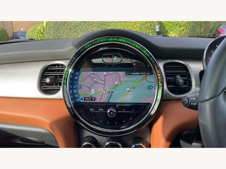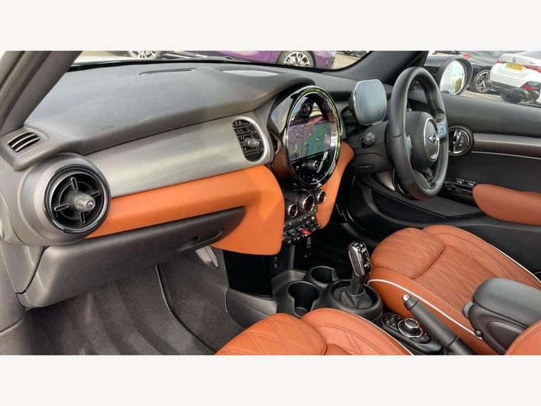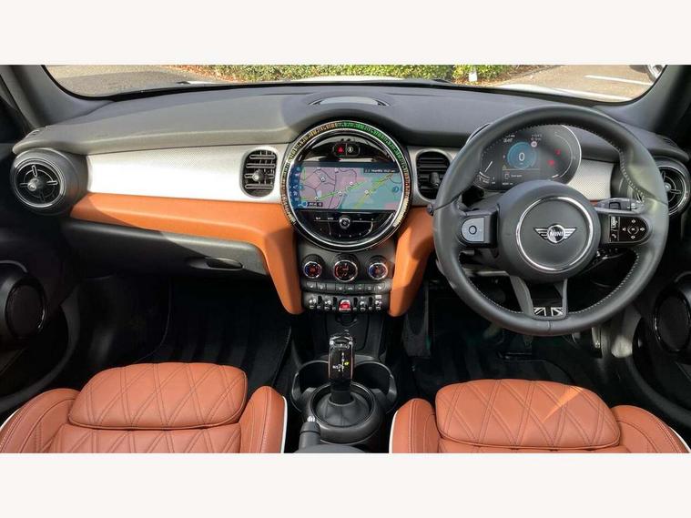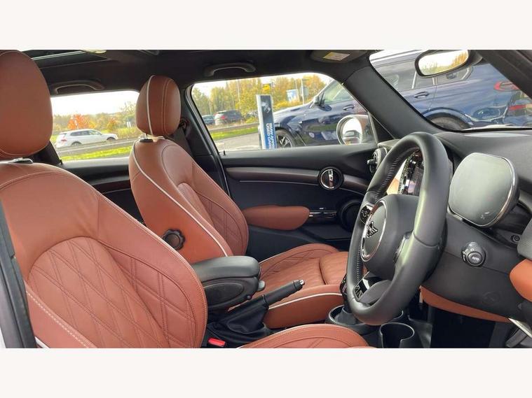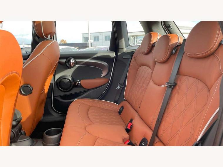 Apple CarPlay, Automatic start/stop function with brake energy recuperation, Compatible mobile phone bluetooth with audio streaming, Electro-mechanical speed dependant steering assistance, Flexible car sharing preparation, MINI Driving Modes - centre toggle switch to control driving setting (sport, mid and green), Mini E-call, MINI TeleServices, On board computer, Rear park distance control, Service interval indicator, Double Vanos system, Fully variable valve control, Gear change indicator display, High precision injection, Performance Control, Steptronic transmission with double clutch, 8.8" touchscreen with LED ring, FM tuner and DAB digital radio, 3rd brake light, Automatic headlight activation switch, Body colour fuel filler cap, Chrome line exterior - radiator grille bars, tailgate handle, lower front grille grating and rear central fog-light, Dynamic brake lights, Electric front+rear windows, Heated rear window, Heated windscreen washer jets, Metal door sill strips with MINI imprint, Model logo Cooper on right of tailgate, Rain sensor window wipers, Rear fog lights, Rear LED lights with union jack design, Rear side wing doors, Rear window wiper, Side scuttle panel with integrated indicator, Sun/heat protection glass, White indicator lenses, 12V Accessory socket in centre console, 3 seat bench in 2nd row, 4 lashing eyes in luggage compartment, 60/40 split folding rear seat, Anthracite headliner including grab handles and clothes hooks, Carbon black colour line - Knee roll and door armrest, Chrome interior highlights, Chrome line interior - air vents, gear lever base, door handles and speakers in doors, Cupholders, Front and rear head restraints, Front and rear isofix with front passenger airbag deactivation, Front and rear velour floor mats, Glove compartment, Height and length steering column adjustment, Interior lighting with 12 different colours across the dashboard, underneath door bezel with illuminated laser-engraved design on central display, Leatherette gearshift lever and handbrake gaiters, LED reading lights, vanity mirror lights, front foot well light and spotlight on front seats, Mechanical seat adjustment - forward/back & backrest for front seats and driver seat height adjust, MINI yours badge on exterior pillar, Multifunction steering wheel, Single front passenger seat, Storage compartments in doors, Sunvisors with vanity mirrors, Walknappa leather steering wheel with grey seam and MINI Yours badge on Piano Black lower steering wheel spoke, 3 point seatbelts on all five seats, 6 Airbags - front, side, head and seat belt tensioners, Anti-lock braking system (ABS), Child locks on rear doors, DSC - Dynamic Stability Control, Front and rear disc brakes, Hill start assist, Single tone fanfare horn, Tyre pressure monitoring system, Alarm system with tilt sensor, monitoring doors, bonnet interior and tailgate, Electronic vehicle immobiliser, Start/stop toggle with keyless go, Tool kit,