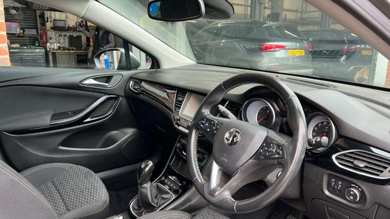 Central facia display with digital clock, outside air temperature and audio information, Cruise control + speed limiter, Digital fuel gauge with low fuel warning light, Digital water temperature gauge with warning light, Electric speed sensitive power steering, Facia mounted Sport switch, Gearshift up/down indication light, Left Key in ignition audible warning, Lights on audible warning, Monochrome colour display in instrument cluster, Multi function trip computer, Oil life monitoring system, Rev counter, Service due indicator, Speedometer, R4 Intellilink infotainment Sat Nav, 7" screen, DAB, traffic program, USB/iPod/Bluetooth audio stream, microphone, 2D map, Apple CarPlay/Android Auto, Steering wheel mounted audio controls, Adaptive brake lights, Automatic lighting control, Body colour door handles, Body colour rear roof spoiler, Body coloured door mirrors, Chrome effect upper window trim, Chrome front grille, Chrome headlight surround, Dipping rear view mirror, Door to door illumination, Electric front/rear windows/one touch facility, Front fog lights, Gloss black finish B pillar, Gloss black finish C pillar, Hazard warning lamps, Heated rear screen with timed cut off, High level LED centre rear brake light, Intermittent rear wash/wipe, LED daytime running lights, LED side repeat indicators, Rain sensor windscreen wipers, Rear fog lights, Reversing light, Shark fin roof aerial, Side window demist vents, Solar heat absorbing windscreen and windows, Tinted windows, Tunnel detection for auto light control, Twin electrically adjustable and heated door mirrors, Two speed windscreen wipers with variable intermittent wipe, Windscreen demist vents, 12V electrical accessory socket in front, 3 spoke leather covered steering wheel with accent stitching, 60/40 split folding rear seat, Ambient LED downlighter in facia/centre console, Black door panels with black atlantis cloth inserts, Chrome interior door handles, Driver and front passenger illuminated vanity mirrors with flip up covers, Driver and front passenger sunvisors, Fade up/down courtesy light, Folding storage box on driver side lower facia, Four adjustable facia vents, Four load restraint lashing eyes, Front and rear door pockets, Front centre armrest with storage, Front courtesy lights, Front red LED ambient lighting, Front seat back storage pockets, Fully carpeted load area, Glovebox with lid, Height adjustable and removable rear head restraints (x3), Height adjustable front head restraints, Illuminated load area, Interior tailgate handle, Isofix child seat mounting points on outer rear seats, Luggage compartment cover, Plain black fabric side bolsters and surrounds, Reach + rake adjustable steering column, Rear courtesy lights, Satin chrome effect bezel on steering wheel, Storage compartment in centre console, Titanium headlining, Twin front reading lights with illuminated switches, Twin gas assisted tailgate struts, Twin rear reading lights with illuminated switches, Two drinks holders in centre console, Driver's ergonomic active seat pack - Astra SRi/SRi Vx-Line/Elite, Driver's ergonomic active seat pack with Formula cloth upholstery- Astra, 3x3 point rear seatbelts, Anti-lock braking system (ABS), Child locks on rear doors, Electronic Stability Programme, Height adjustable front seatbelts, Hill start assist, Passenger airbag deactivate switch, Pedal release system, Seatbelt pretensioners on front/outer rear seats, Seatbelt warning, Six airbags - Driver's dual stage airbag/front passenger's dual stage airbag/front seat side impact airbags/full size curtain airbags, Traction control, Tyre pressure monitoring system, Electronically protected audio, Engine Immobiliser & Deadlocks, Freewheeling door locks, Locking wheel bolts, Remote control central locking, Remote control ultrasonic security alarm system, Visible vehicle identification number, Black facia with piano black trim inserts, Instrument panel bar in piano black, Piano black trim inserts on front doors, Silver air vent surrounds,