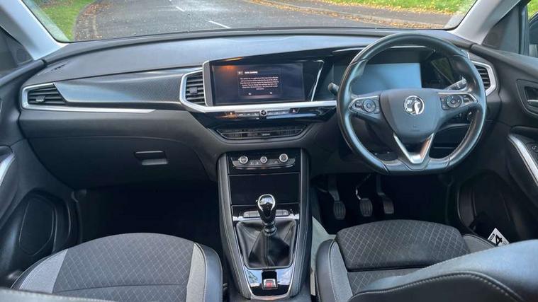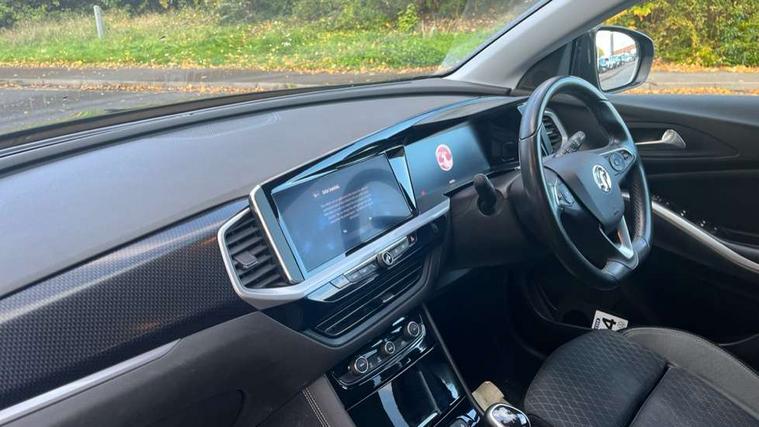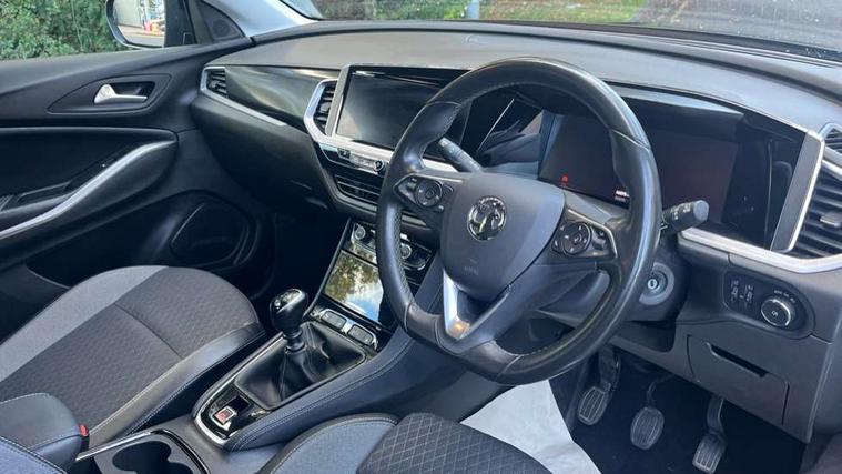 12" colour digital cluster, 180 degree rear view camera, Central facia display with digital clock, outside air temperature and audio information, Cruise control with speed limiter, Digital fuel gauge with low fuel level warning light, Digital rev counter, Digital speedometer, Digital water temperature gauge with warning light, Driver drowsiness alert system, Driver information - Total mileage, service indicator, oil life, Gearshift up/down indication light, Lane departure warning system, Lane keep assist, Lights on audible warning, Multi function trip computer - Trip odometer, vehicle range, average speed and fuel economy, instantaneous fuel economy and driving time, Multimedia navi pro with 10" colour touch+ sat nav+AM/FM/DAB radio, bluetooth audio streaming/mobile phone portal, Apple carplay/Android auto, USB, Speed sensitive electric power assisted steering, Speed sign recognition, Vauxhall connect including Ecall and connected services, Six speaker - four front + two rear, Steering wheel mounted audio/phone/cruise controls, 3rd brake light, Automatic lighting control, Automatically dimming anti dazzle rear view mirror, Black door mirrors, Black side window trim, Body colour door handles, Carbon black door claddings, Collapsible windscreen wipers, Dark tinted rear side and tailgate windows, Door mirror puddle light, Door to door illumination, Electrically adjustable and heated power door mirrors (wide-angle on drivers side) with automatic timed cut-off, Electrically operated front and rear windows with safety auto reverse and one touch up/down facility, Front/rear bumper and wheel arches in carbon black exterior color, GRANDLAND Carline name badge in - High gloss black, Hazard warning lights, Heated rear screen with timed cut off, High beam assist, High gloss black protective front and rear skid plates with C shape bumper inserts, High gloss black roof rails, High level centre rear brake light, Intermittent rear window wash/wipe, LED daytime running lights, LED Headlights, LED tail lights, Manual headlight beam levelling, Rain sensor windscreen wipers, Rear side wing doors, Rear spoiler, Reversing light, Shark fin aerial, Side protection mouldings, Side window demist vents, Soundproof insulated windscreen, Tinted windows, Upper and lower bumper design, Vauxhall brand griffin badge in front and rear in high gloss black, Vauxhall plate door sill cover, Vizor front grille, Welcome lighting, Windscreen demist vents, 12V electrical accessory socket in front, 3 bench rear seats in 2nd row, 3 spoke flat bottom leather steering wheel with satin chrome effect bezel, 4 way electric driver lumbar support, 4 way manual adjustable driver seats with height, reach and backrest, 60/40 split folding rear seat, Advanced predictive logic control system using a sun sensor, Ambient centre console downlighter, Anti submarining ramps in front seats, Automatic air direction and fan speed with manual override, Black premium leather-effect side bolsters, Charcoal filter, Chrome effect interior door handles, Cosmo 1 Harlekin curitiba seats, Covered storage compartment in centre console and in driver armrest, Driver ergonomic active front seat, Driver's centre armrest, Dual zone electronic climate control, Four adjustable facia vents, Front door pockets with 2.6 litre capacity, Front passenger seat, Front passenger seat cushion extension, Front passenger sport style seat, Grey headliner, Height adjustable headrests, Illuminated controls, Illuminated driver/passenger sunvisors, Illuminated luggage area + Ambient lighting in front doors, Interior courtesy light operated by door switches, ISOFIX on front passenger and rear outer seats, Luggage compartment cover, Reach + rake adjustable steering column, Rear centre seat head restraint, Rear door pockets with 1.8 litre capacity, Rear passenger compartment heating ducts, Rear reading lights, Two drinks holders in centre console, Ventilated glovebox with lid, 6 Airbags - Driver and passengers front airbag, two front side impact airbag, full size curtain airbags for driver, Anti-lock braking system (ABS), Automatic emergency braking system, Child proof locks on rear doors, CSC - Cornering stability control, Deactivation switch for front passenger front and side impact airbags, Deflation detection system, Deformation zones front and rear, Dual seatbelt pretensioners on front seats, EBD - Electronic brakeforce distribution, Electronic parking brake, Electronic stability program (ESP) including traction control, Energy absorbing steering column, Engine drag torque control, Hill start assist, Hydraulic Brake Assist (HBA), Inertia reel lap and diagonal seatbelts for all seats, Load limiters on outer rear seatbelt retractors, Rear restraint seat belt pretensioner, Reinforced passenger safety cell, Side impact protection beam, Smart seatbelt reminder for front and rear seats, Tyre pressure monitoring system, Deadlocking system, Electronically protected audio equipment, Engine deadlock immobiliser, Freewheeling door locks, Key left in ignition audible warning, Locking wheel nuts, One rigid one flap-key coloured, Remote control central locking activation switch on driver door, Remote control primary foldable and additional foldable key, Remote security alarm system, Self powered alarm horn, Single horn, Theft deterent body security content and electircal child lock system, Theft deterent electrical, Visible vehicle identification number, Black door panels with black premium leather effect inserts, Dax decor facia panel with palladium medium finish, 18" 5 twin spoke high gloss black alloy wheels, Tyre inflation kit,