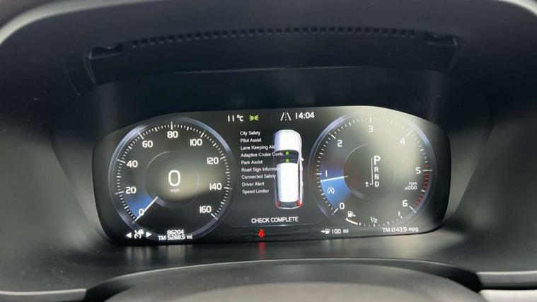 12.3" Active TFT crystal driver's instrument display, Adaptive cruise control with pilot assist, Adjustable steering wheel force, Bluetooth system, Drive mode selector, Electric tailgate release, Forward collision warning, Lane keep assist with driver alert control, Oncoming Lane Mitigation, Road Edge Detection, Service interval indicator, Speed limiter, Speed sensitive steering, Touch screen display, Trip computer, Voice control system, Volvo on call, Dynamic chassis, Recharging port located in nearside front wing, DAB Digital radio, Steering wheel mounted audio controls, Adaptive brake lights, Auto dimming interior mirror, Automatic headlamp levelling, Body colour electric folding/heated door mirrors, Body coloured bumpers, Chrome window surround, Front and rear electric windows, Home safe and approach lighting, Illuminated side steps, LED Headlights + Active high beam incorporating daytime running lights, Piano black front grille with chrome surround, Rain sensor windscreen wipers, Roof antenna, Roof spoiler, Silver roof rails, Twin chrome exhaust tailpipes, Visible VIN plate, 12V power point in luggage area, 12V socket in front tunnel console, 3 spoke leather steering wheel with chrome trim, 60/40 split folding rear seat, A-pillar parking ticket holder, B Pillar ventilation, Bright metal luggage threshold, Centre armrest with storage box, Centre console cupholder, Centre console storage, Door step illumination, Electric height adjustable driver seat, Electric lumbar support, Floor mats, Front and rear aluminium tread plates, Front footwell illumination, Front headrests, Front passenger seat electric height adjust, Front tunnel storage net, Front/rear reading lights, Grocery bag holder-luggage area, Heated front seats, Height/reach adjustable steering column, Illuminated gear knob, Illuminated glovebox with lock, Illuminated luggage compartment, Illuminated vanity mirror, Isofix system on outer rear seats, Leather upholstery, Load cover, Pollen filter, Power Folding Rear Seat Backrests and Headrests, Rear armrest with storage + cupholders, Ski hatch, Storage compartment on driver's side, Theatre dimming interior lights, Underfloor stowage compartment, 3x3 point rear seatbelts, ABS/EBD, Active bonnet, City safety braking system, Drivers knee airbag, Dual stage driver/passenger airbags, EBA, Electronic parking brake with auto hold, Fasten seatbelt reminder, Front and rear curtain airbags, Hill start assist, IC (Inflatable Curtains) - Full Length, Passenger airbag cut-off device, Road sign information display, Run off Road Mitigation, Run off Road Protection, Seatbelt pre-tensioners, Side airbags, Side impact protection, STC - Stability and traction control, Tyre pressure monitoring system, Warning triangle and first aid kit, WHIPS whiplash protection system - front, Anti-theft alarm including immobiliser/volume sensor + level sensor, Deadlocking system, Key integrated remote control central locking, Keyless Start, Locking wheel nuts, Private locking, Tempa spare wheel,