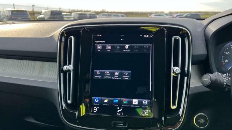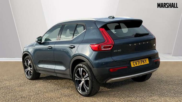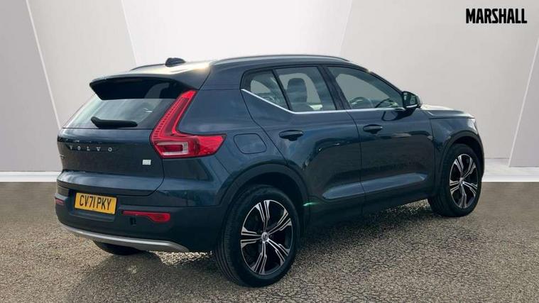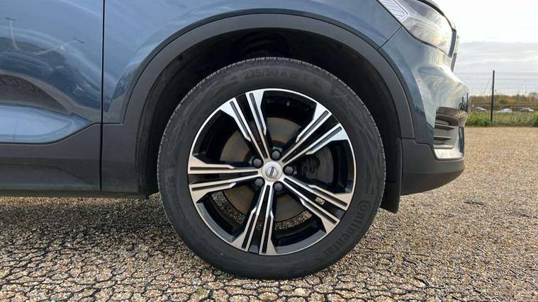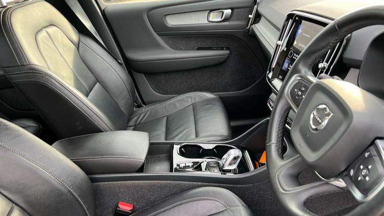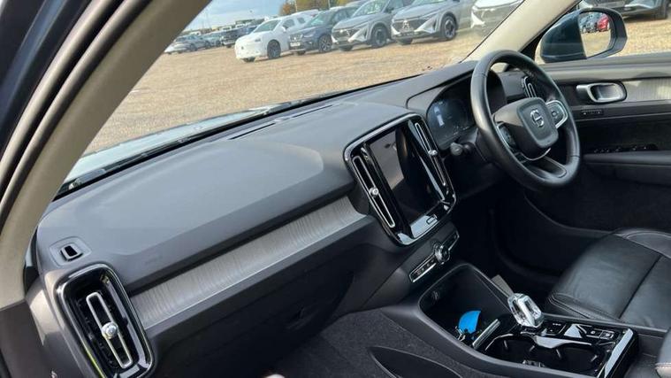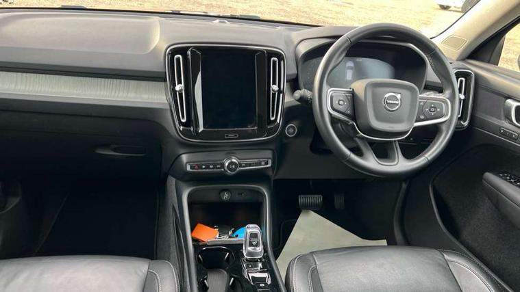 12.3" Active TFT crystal driver's instrument display, 9" centre console portrait touch screen, Adjustable steering wheel force, Bluetooth hands free telephone kit, Drive mode selector, E-call, Lane keep assist with driver alert control, Oncoming Lane Mitigation, Power operated tailgate, Sensus navigation with European mapping and traffic information, Speed limiter, Speed sensitive steering, Voice activated control for key functions, Volvo on call, 7m 10amp charge cable with 3 pin plug and 7m 1 phase 16amp type 2/mode 3 charge cable, Dynamic chassis, Electric front axle drive, Recharging port located in nearside front wing, DAB Digital radio, Low speed exterior sound speaker, Steering wheel mounted remote controls, Adaptive brake lights with high level LED brake lights, Auto dimming interior mirror, Automatic headlamp levelling, Chrome window surround, Colour coordinated auto folding and heated power door mirrors, Front aluminium tread plates, Front and rear electric windows, High gloss black front grille with chrome inserts, High gloss black sensus surround deco, High Gloss silver front and rear skid plate, Home safe and approach lighting, Integrated roof rails in silver, LED Headlights + Active high beam incorporating daytime running lights, Rain sensor with automatic windscreen wiper activation, Rear side wing doors, Rear wiper, Roof antenna, Roof spoiler, Visible VIN plate, 12V socket in front tunnel console and luggage compartment, 2 zone electronic climate control and rear air vent, 3 seat bench in 2nd row, 3 Spoke tailored steering wheel with chrome trim, 60/40 versatile split folding rear seat, A-pillar parking ticket holder, Bright metal luggage threshold, Centre console cupholders and storage, Floor mats, Front footwell illumination, Front headrests, Front reading light and theatre lighting, Glovebox bag hook, Height/reach adjustable steering column, Height/tilt adjustable driver's seat, High gloss centre tunnel deco, Illuminated glovebox, Illuminated luggage compartment, Illuminated vanity mirrors, Isofix attachments on outer rear seats, Leather faced upholstery, Load protection net, Multi directional lumbar support, Orrefors Crystal gear lever knob, Power driver seat with memory + exterior mirrors memory, Rear armrest / integral cup holders / storage tray, Rear coat hook, Single front passenger seat, Underfloor cargo storage, Vanity mirror with ticket holder, Park assist pack - XC40, 3x3 point rear seatbelts, City safety includes pedestrian, cyclist and large animal detection and front collision warning with full auto brake, Drivers knee airbag, Dual stage driver/passenger airbags, Electronic parking brake with auto hold, First aid kit, Front and outer rear seatbelt reminder and pretensioners, Front seats SIPS airbags, Hill descent control, Hill start assist, Inflatable curtain, Passenger airbag cut-off device, Road sign information display, Run off Road Mitigation, Run off Road Protection, SIPS (Side Impact Protection System), Slippery road and hazard light alert, Stability and Traction Control with Spin control, Engine Drag Control and Corner Traction Control, Tyre pressure monitoring system, Vehicle deceleration control with Anti-lock Brake System, Electronic Brake Distribution and Emergency Brake Assist, Warning triangle, WHIPS whiplash protection system - front, Anti-theft alarm including immobiliser/volume sensor + level sensor, Care key with user defined top speed, Key integrated remote control central locking + fuel flap with deadlocking system and auto open/close power windows, Locking wheel nuts, Private locking for tailgate, Driftwood inlays,