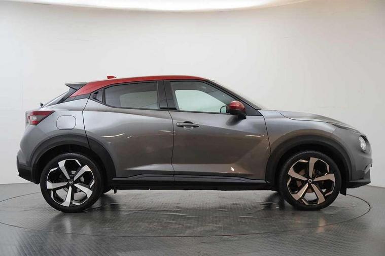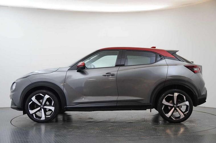 7" full colour TFT screen combimeter, Apple CarPlay and Google Android auto, Drive modes select (Eco, normal and sport), Emergency and breakdown call, Front parking sensor, Idle start/stop system, Intelligent lane intervention, Lane departure warning system, Nissan connect 8" touch screen entertainment system, Nissan connect nav with TomTom traffic, Nissan connect services and Wifi connection, Outside temperature sensor, Power Steering, Rear parking sensor, Traffic sign recognition, Trip computer, Voice recognition, Gasoline particulate filter, 10 Bose speakers 6 speakers and 2 headrest speakers for driver/passenger seats, Bluetooth system, USB, Aux-in and 12V socket, Bose personal sound stage control, DAB Digital radio, Rear console USB port, Auto dimming interior rear view mirror, Auto headlights, Automatic hazard signal with emergency stop signal, Body colour bumpers, Body colour door handles, Electrically adjustable door mirrors with integrated indicators, Follow me home headlights, Front and rear electric window with one touch driver window, Heated and auto folding door mirrors, High beam assist, LED daytime running lights, LED front fog lights, LED headlamps, LED rear fog lamp, LED rear lamps, Rain sensor windscreen wipers, Rear privacy glass, Rear side wing doors, Rear wiper, Thermaclear heated windscreen, Three blink turn signal, 3 height adjustable rear headrests, 3 seat bench in 2nd row, 60/40 split folding rear seat, Automatic climate control, Card holder on driver sunvisor, Door ambient lighting, Driver and passenger sliding and reclining seats, Driver seat back pocket, Driver side rear coat hanger, Driver/passenger sunvisors and vanity mirrors, Front and rear cabin lights, Front armrest, Front door pockets with bottle holders, Front head restraints, Front passenger isofix child seat anchorage point, Front/rear passenger grab handles, Gear console ambient circle lighting, Grey synthetic leather kneepad, Heated front seats, Height adjustable driver's seat, Height adjustable passenger seat, Internal chrome door handles, Leather gearshift knob, Leather steering wheel, Luggage board, Luggage space lighting, Monoform sporty seats, Multifunction steering wheel, Passenger seat back pocket, Rear door bottle holders, Single front passenger seat, Synthetic leather upholstery, Telescopic steering wheel adjustment, Two cupholders in front centre console, Two rear isofix child seat anchorage points with top tether, Welcome light and console tray ambient lighting, Advanced safety shield pack - Juke, ABS with EBD and brake assist, Active ride control, Active Trace Control, Driver and passenger airbags, Driver and passenger side airbags, Electric handbrake with auto hold function, Electronic Stability Programme (ESP), Front and rear curtain airbags, Height adjustable seatbelts, Hill start assist, Intelligent emergency braking with pedestrian and cyclist recognition, Rear door child safety locks, Seatbelt reminder for driver/front passenger and rear seats, Single tone horn, Three 3 point rear seatbelts, Traction control, Tyre pressure monitoring system, VDC Dynamic Vehicle Control, Ventilated rear brake discs, Alarm, Immobiliser, Intelligent key and start push button with walk away lock and approach unlock functions, Remote central locking,