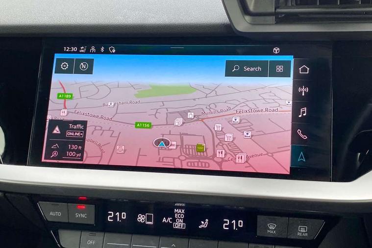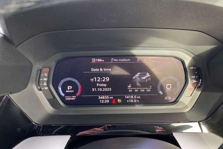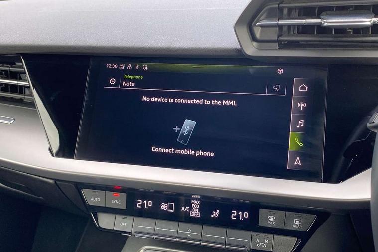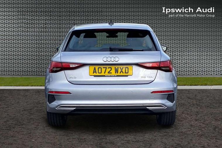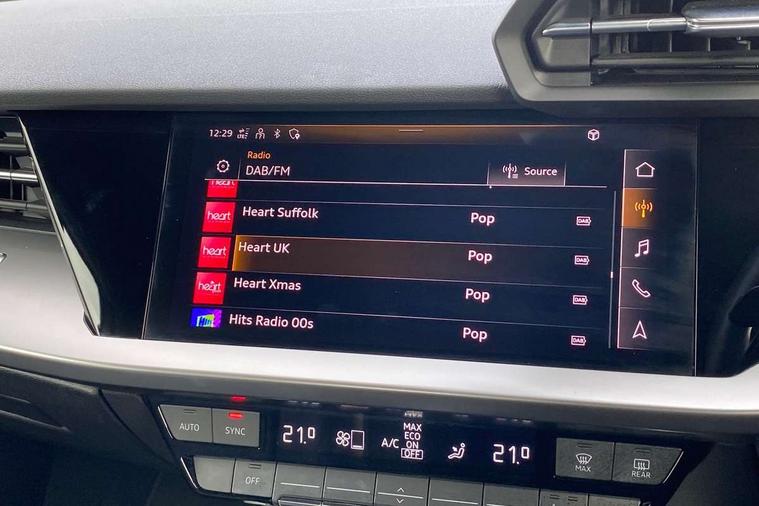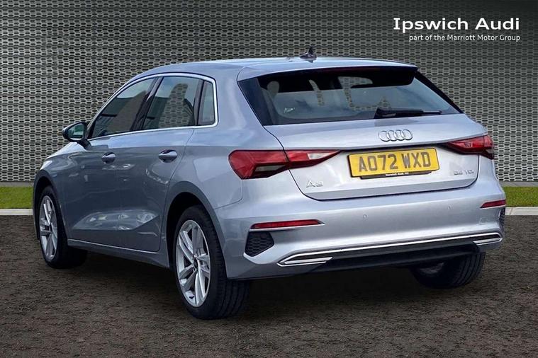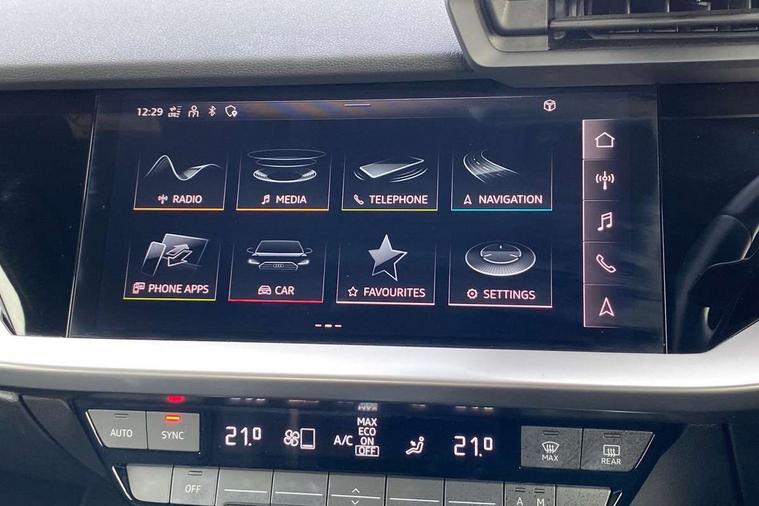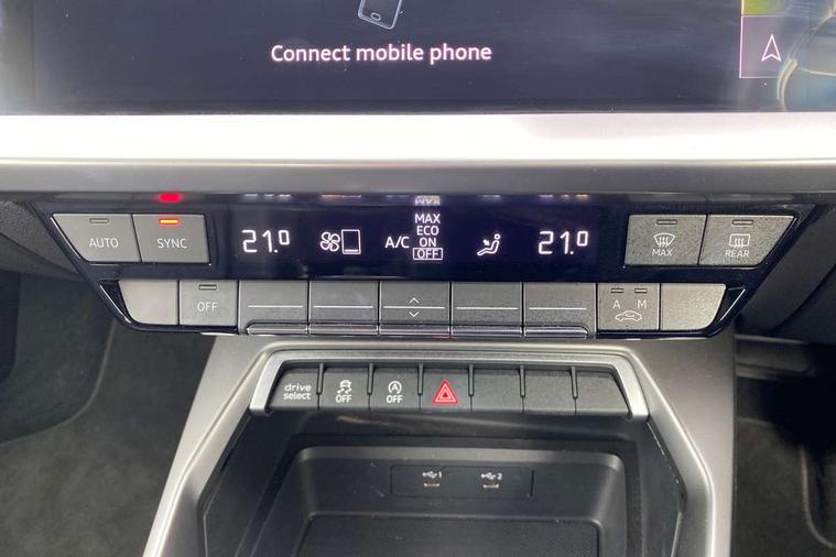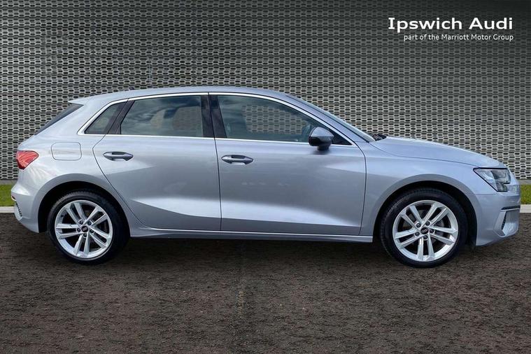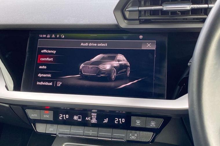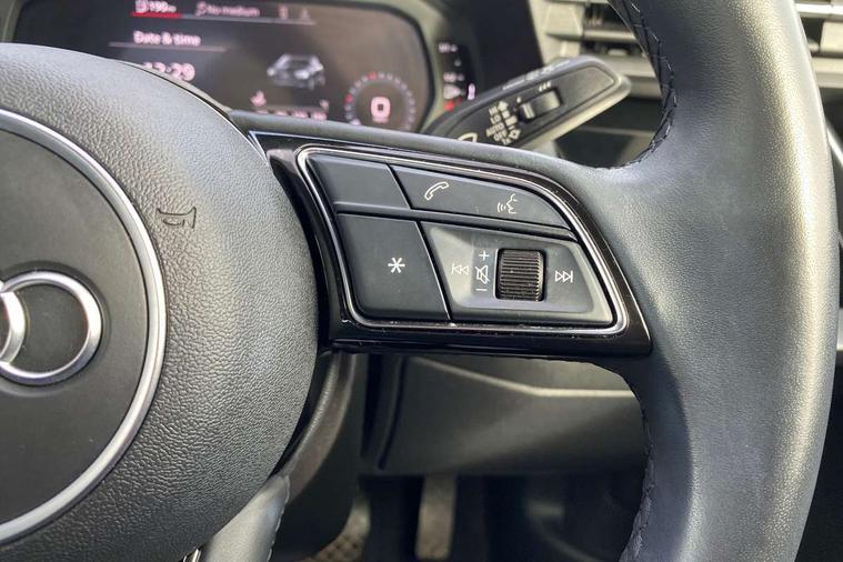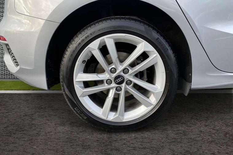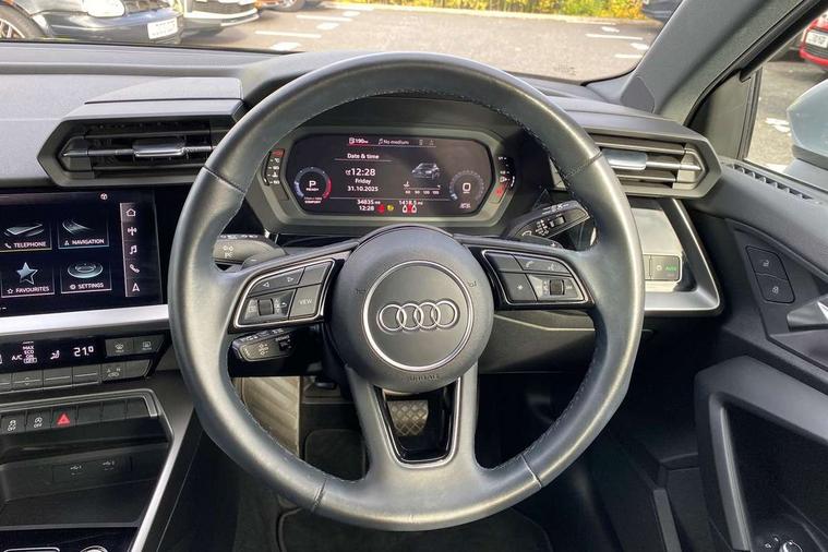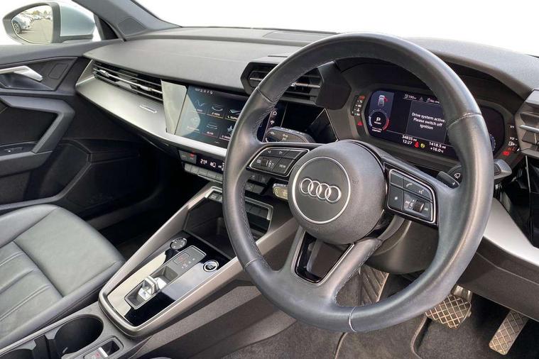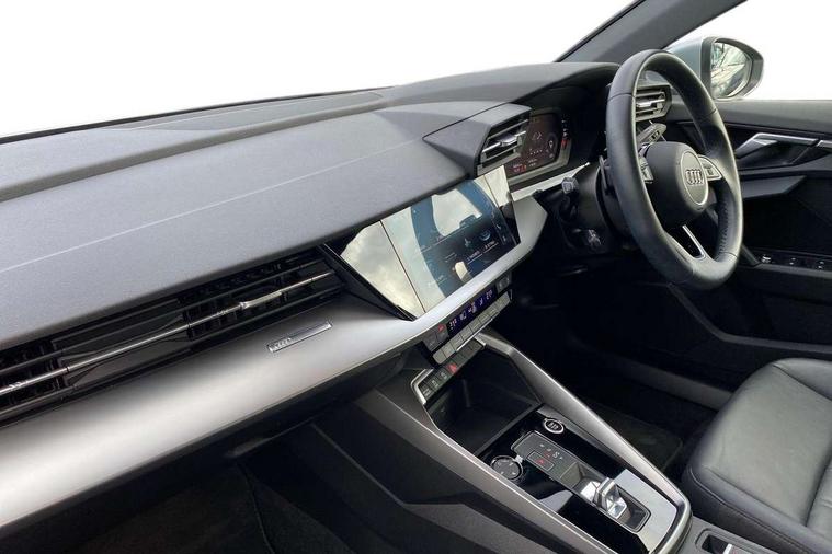 Audi drive select (Auto, Comfort, Dynamic, Efficiency and Individual), Audi smartphone interface, Audi Virtual Cockpit - 10.25" digital and colour instrument cluster, Automatic start/stop system with recuperation, Bluetooth interface, Collision avoidance assistant, e-Call (emergency call), Electromechanical power speed sensitive steering, Lane departure warning system, MMI Navigation Plus with high resolution 10.1" colour touch screen display, Service indicator, Trip computer, Voice control system with natural language interaction, Standard suspension, 2xUSB-C connection with data and charging functions, 6 passive loudspeakers, DAB Digital radio, 3rd brake light, Acoustic glass windscreen, Aluminium window trim, Auto dimming frameless rear view mirror, Body colour exterior mirrors, Body colour roof spoiler, Electrically adjustable/heated/folding/dimming door mirrors with kerb view includes integrated LED indications + kerb view function for passenger side, Front electric windows, LED daytime running lights, LED headlights and halogen rear lights, Light and rain sensors, Rear electric windows, Rear side wing doors, Rear window, rear door windows and rear side windows in clear glass, Rear wiper, 12V socket and storage compartment in front centre console, 3 seat bench in 2nd row, 40/20/40 split folding rear seat bench with cupholder, Dual zone electronic climate control, Front and rear centre armrest, Front and rear headrests, Front door sill trims with aluminium inlay, Front/rear floor mats, Height and reach adjustable steering wheel, Interior lighting - Front and rear roof module including reading lights, glove compartment light and right hand side, Luggage compartment floor covering, Manual boot compartment lid, Manually adjustable front seats, Seat side bolsters, Single front passenger seat, Steel grey cloth headlining, Twin leather upholstery, Aluminium interior elements pack - A3 Sportback, Sport styling pack - A3 Sportback, 3x3 point rear seat belts, Audi pre sense front, Driver and front passenger airbag with passenger airbag deactivation, Electronic Stabilisation Control (ESC) including ABS, ASR and EDL, First aid kit with warning triangle and 2 safety vests, Front side airbags with head airbags and interaction airbag, Pre-sense front with pedestrian and cyclist detection, Seatbelt monitoring, Tyre pressure loss indicator, Anti theft alarm, Anti-theft wheel bolts, Electronically operated child lock, Immobiliser, Remote control central locking, Inlays with silk effect paint in platinum grey,