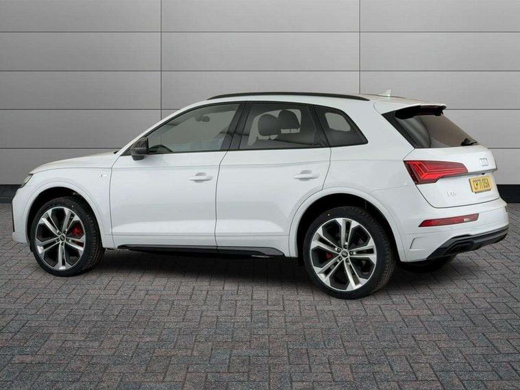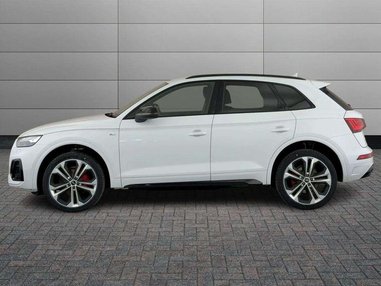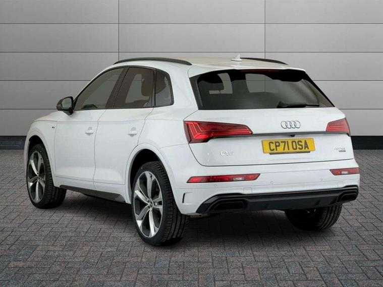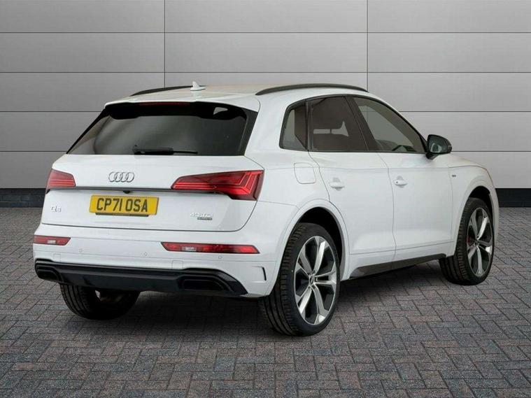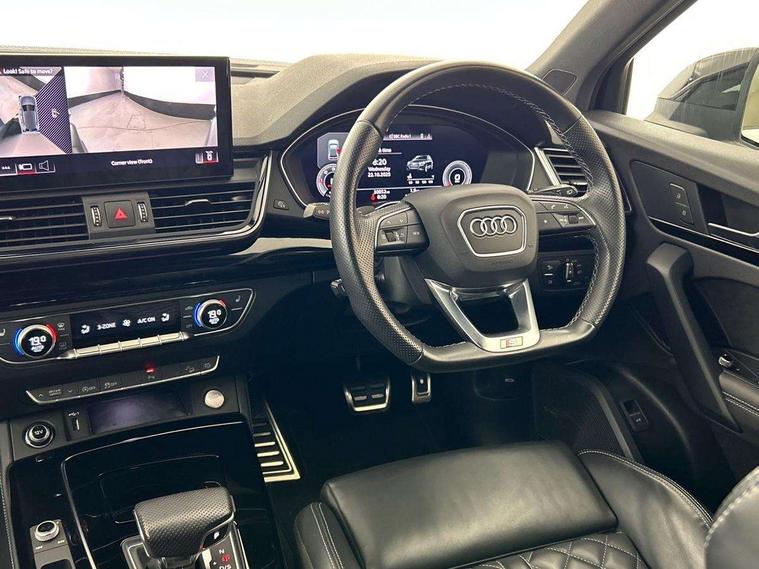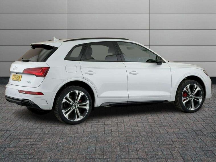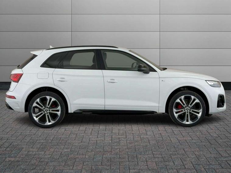 Audi connect safety and service (e-call), Audi connect with Amazon Alexa Integration, Audi drive select, Audi virtual cockpit plus with 12.3" screen and three different layout designs, Audi wireless smartphone interface, Automatic start-stop system with coasting functionality and efficiency programme, Bluetooth interface, Electro - mechanical power assisted steering, MMI navigation plus with 10.1" touch screen, Power tailgate, Reversing camera, Service interval indicator, Voice control system with Audi hotword activation "Hey Audi", Diesel particulate filter, Quattro on demand, S line sports suspension, 2 x USB charging port with aux input socket, DAB Digital radio, Acoustic windscreen, Audi beam with Audi rings logo, Audi matrix LED headlights with dynamic front and rear indicators, Audi rings at front and rear in black, Audi rings decal on rear doors, Auto dimming door mirrors, Auto dimming rear view mirror, Automatic headlights and windscreen wipers, Black door mirrors, Black roof rails, Body colour bumpers, Body colour underbody protection, Chrome plated exhaust trims, Daytime running lights, Door sills in Selenite silver, Electric adjustable/heated/folding door mirrors, Front air inlet surrounds in titanium black, Front and rear electric windows, Headlight washers, High gloss black B pillar trims and triangular rear door trim, High level LED brake light, Rear chrome trim strip below lights, Rear privacy glass and rear side windows, Rear side wing doors, Rear spoiler, Rear wiper, Roof bars, Without model and engine badging at rear, 3 rear headrests, 4 way electric lumbar support for driver and front passenger, 40:20:40 split folding 3 rear bench seat in 2nd row with rear centre armrest, Black cloth headlining, Comfort front centre armrest, Contrast stitching on seats, steering wheel and gear lever gaiter, Deluxe 3 zone electronic climate control, Electrically adjustable front seats, Fine Nappa leather upholstery with diamond pattern contrast stitching + front sport seats with S embossed logo, Front/rear floor mats, Gear lever in black leather, Heated front seats, Height adjustable front head restraints, Height/reach adjustable steering column, Illuminated door sill trims with S logo, ISOFIX child seat mounting and top tether, Luggage compartment cover, Rear seat bench plus, Removable luggage compartment floor, Single front passenger seat, Stainless steel pedals, Sunvisors with vanity mirrors, Black styling package - Q5 Edition 1, Extended interior upholstery pack - Q5, Extended LED Interior multi coloured Lighting Pack - Q5, 3 point seatbelts on all seats, 6 airbags - Driver, front passenger, curtain and side airbags, Electrically operated child locks on rear doors, Electromechanical parking brake, Electronic stabilisation control including ABS, ASR and EDL, Front and rear brake calipers painted in red, Front passenger airbag deactivation, Hill descent control, Hill hold assist, Multi collision brake assist, Pop-up bonnet for pedestrian protection, Pre sense city, Seat belt force limiter, Seatbelt monitoring, Tyre pressure warning, Warning triangle and first aid kit, Anti theft alarm, Anti-theft wheel bolts, Keyless Go access/ignition system, Remote central locking, Piano black finish inlay,