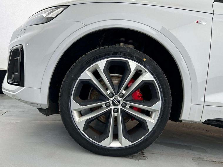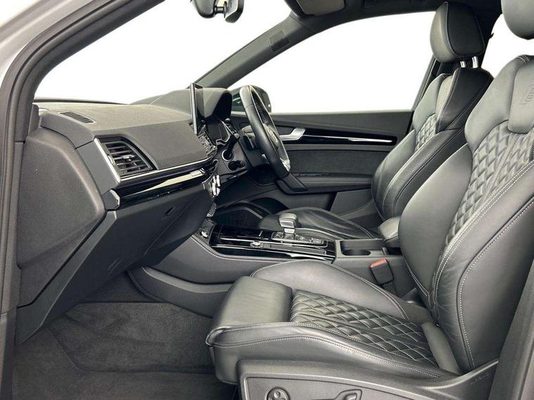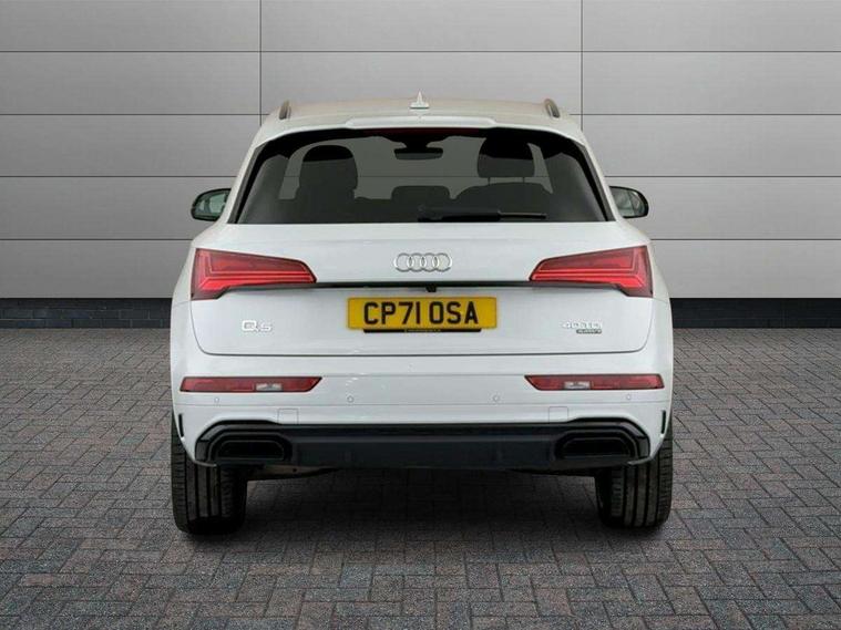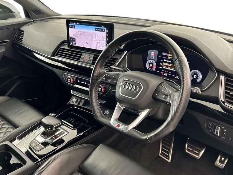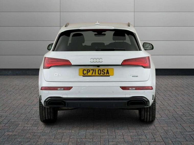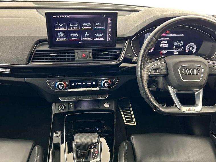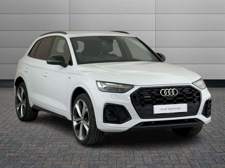 Audi connect safety and service (e-call), Audi connect with Amazon Alexa Integration, Audi drive select, Audi virtual cockpit plus with 12.3" screen and three different layout designs, Audi wireless smartphone interface, Automatic start-stop system with coasting functionality and efficiency programme, Bluetooth interface, Electro - mechanical power assisted steering, MMI navigation plus with 10.1" touch screen, Power tailgate, Reversing camera, Service interval indicator, Voice control system with Audi hotword activation "Hey Audi", Diesel particulate filter, Quattro on demand, S line sports suspension, 2 x USB charging port with aux input socket, DAB Digital radio, Acoustic windscreen, Audi beam with Audi rings logo, Audi matrix LED headlights with dynamic front and rear indicators, Audi rings at front and rear in black, Audi rings decal on rear doors, Auto dimming door mirrors, Auto dimming rear view mirror, Automatic headlights and windscreen wipers, Black door mirrors, Black roof rails, Body colour bumpers, Body colour underbody protection, Chrome plated exhaust trims, Daytime running lights, Door sills in Selenite silver, Electric adjustable/heated/folding door mirrors, Front air inlet surrounds in titanium black, Front and rear electric windows, Headlight washers, High gloss black B pillar trims and triangular rear door trim, High level LED brake light, Rear chrome trim strip below lights, Rear privacy glass and rear side windows, Rear side wing doors, Rear spoiler, Rear wiper, Roof bars, Without model and engine badging at rear, 3 rear headrests, 4 way electric lumbar support for driver and front passenger, 40:20:40 split folding 3 rear bench seat in 2nd row with rear centre armrest, Black cloth headlining, Comfort front centre armrest, Contrast stitching on seats, steering wheel and gear lever gaiter, Deluxe 3 zone electronic climate control, Electrically adjustable front seats, Fine Nappa leather upholstery with diamond pattern contrast stitching + front sport seats with S embossed logo, Front/rear floor mats, Gear lever in black leather, Heated front seats, Height adjustable front head restraints, Height/reach adjustable steering column, Illuminated door sill trims with S logo, ISOFIX child seat mounting and top tether, Luggage compartment cover, Rear seat bench plus, Removable luggage compartment floor, Single front passenger seat, Stainless steel pedals, Sunvisors with vanity mirrors, Black styling package - Q5 Edition 1, Extended interior upholstery pack - Q5, Extended LED Interior multi coloured Lighting Pack - Q5, 3 point seatbelts on all seats, 6 airbags - Driver, front passenger, curtain and side airbags, Electrically operated child locks on rear doors, Electromechanical parking brake, Electronic stabilisation control including ABS, ASR and EDL, Front and rear brake calipers painted in red, Front passenger airbag deactivation, Hill descent control, Hill hold assist, Multi collision brake assist, Pop-up bonnet for pedestrian protection, Pre sense city, Seat belt force limiter, Seatbelt monitoring, Tyre pressure warning, Warning triangle and first aid kit, Anti theft alarm, Anti-theft wheel bolts, Keyless Go access/ignition system, Remote central locking, Piano black finish inlay,