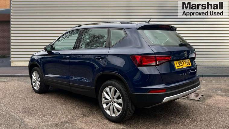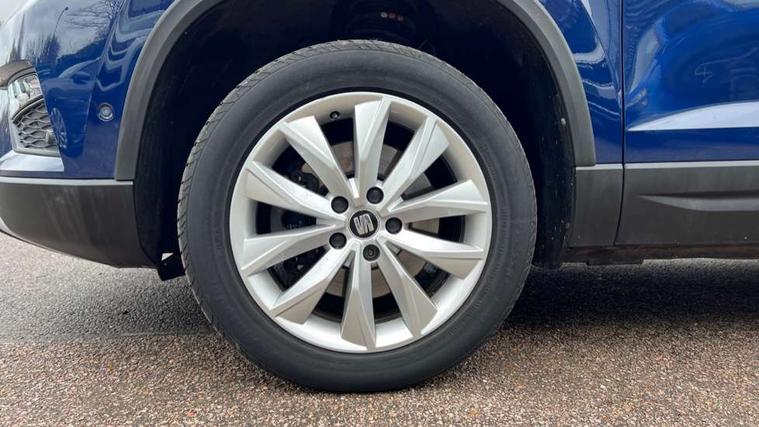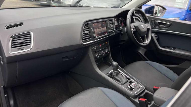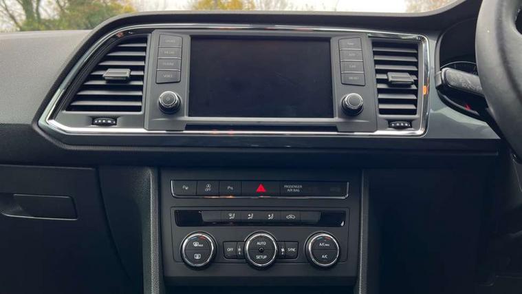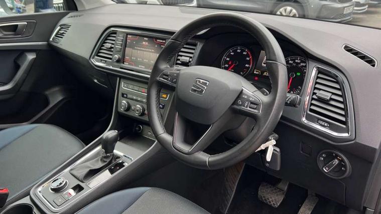 'Lights On' Reminder warning buzzer, Apple car play/Android Auto, Driver alert system, Electric speed sensitive power steering, Low fuel warning light, Multi function display, Outside temperature gauge, Rear parking sensor, Remote fuel flap release, SEAT Drive profile, SEAT logo boot release, Trip computer, Comfort suspension, XDS electronic differential lock, Mirror link app interface, Steering wheel mounted audio/phone controls, Black roof rails, Body colour bumpers, Body colour door handles, Body colour door mirrors, Chromed centre radiator grille surround, Cornering front fog lights, Electric folding door mirrors, Electrically adjustable and heated door mirrors, Front and rear electric windows, LED daytime running lights, LED tail lights, Rear wash/wipe, 12V power point front, 3 height adjustable rear headrests, 4 Lashing eyes in boot, 60/40 split folding rear seat, Active head restraints, Adjustable front armrest with storage compartment, Card holder, Cloth upholstery, Comfort front seats, Driver/passenger lumbar adjustment, Driver/passenger sunvisors with illuminated vanity mirrors, Dual zone climate control, Footwell illumination, Front cupholders x 2, Front reading lights, Front seat back storage pockets, Height adjustable driver's seat, Height adjustable front headrests, Height adjustable passenger seat, Illuminated boot, Isofix child seat preparation, Leather steering wheel and gear knob, Rear armrest, Rear central air outlet, Rear reading lights, Steering wheel gearshift paddles, Storage box under drivers seat, Seat Media System Plus pack - Ateca, 3x3 point rear seatbelts, ABS, Auto hold function, Automatic post collision braking, Curtain airbags, Driver/Front Passenger airbags, Drivers knee airbag, Electronic parking brake, Electronic stability control, ESP+EBA, Front and rear seatbelt reminder, Front assist including city emergency braking, Front passenger airbag deactivation, Front side airbags, Hill hold control, Predictive pedestrian protection, Tiredness recognition system, Traction control, Tyre pressure monitoring system, 2 folding remote keys with window open/close function, Immobiliser, Locking wheel bolts, Remote central locking, Volumetric alarm with back up horn, Chrome effect dashboard facia,