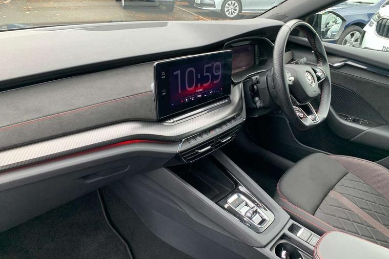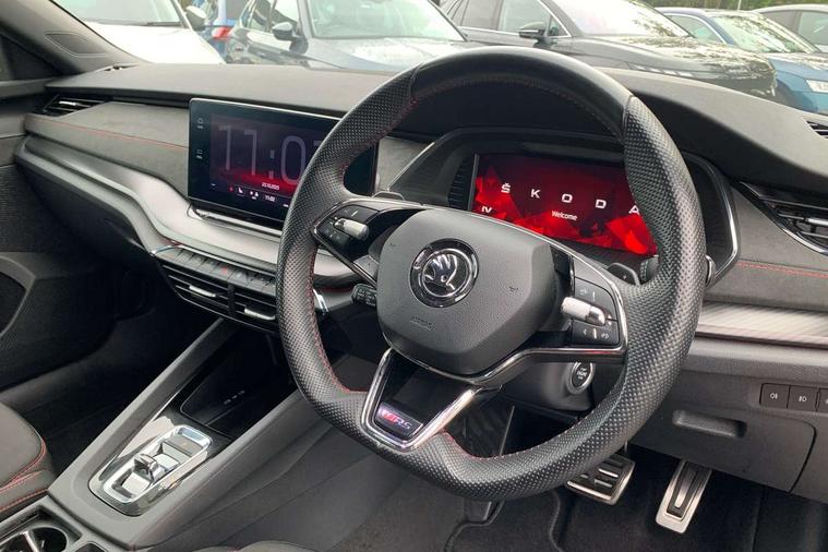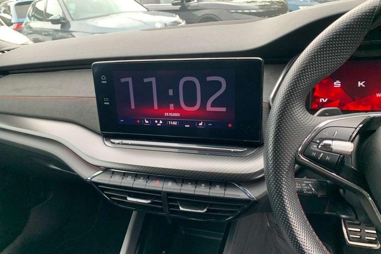 1x USB Type C port in rear view mirror (charging only), 2x USB Type C ports in rear of front centre armrest (charging only), Bluetooth system, Columbus satellite navigation with 10" touchscreen display, Driver fatigue sensor, E mode button for electric/hybrid drive, eCall emergency system, Front and rear parking sensors with manoeuvre assist, Front assist system, Progressive dynamic steering, Smartlink (includes android auto and mirrorlink), Speed limiter, Turn Assist, Unique iV instrument panel, Virtual Cockpit - 10.25" digital display, Voice control system, Wireless SmartLink for Apple Car Play, 10 amp mains UK 3 pin charge cable mode 2, 16 amp AC charge cable for wallbox/charge points mode 3, E-noise generator for electric drive with noise emitted upto speed of 50km/h, Front and rear stabilizers, 2x USB Type C ports (for charging and data transfer), 8 Speakers, DAB Digital radio, Aero front windscreen wipers with intermittent function, Auto dimming rear view mirror, Black roof rails, Body colour door handles, Chrome exhaust tailpipes, Door sills with vRS logo, Electric front and rear windows, Exterior gloss black sports styling including front grille, side strip, window surrounds, door mirror and badging, Full LED Matrix headlights with AFS and cornering front fog lights, Headlight washers, Heated rear windscreen, High level third brake light, Ice scraper in fuel cap, LED daytime running lights, Rain and light sensors, Rear fog light on one side, Rear privacy glass, Rear side wing doors, Rear spoiler, Rear window wiper, Unique iV badge on tailgate, 3 seat bench in 2nd row, 4 foldable roof handles, Aluminium pedals, Black headlining, Black microsuede padded dash panel with red contrast stitching, Charging socket cover on front left fender, Chrome inner door handles, Front centre armrest, Front head restraints, Heated front seats, Illuminated glovebox, Leather trimmed gearshift lever, Luggage compartment lighting with two side lamps, Mechanical rear seat release, Parcel shelf - rolling, Single front passenger seat, Sport button for hybrid drive delivering maximum system performance, Storage compartment for charging cables under the luggage compartment mat, Sunglasses storage, Textile floor mat set, Three spoke leather sports multifunction steering wheel with paddles, Ticket holder, Umbrella in door panel, Unsplit rear bench seat and split folding backrest, LED interior light pack - Octavia, 3 point front/outer rear seatbelts+pre-tensioners, Alarm with interior monitoring, tilt sensor and back up horn, Automatic door unlocking in case of crash, Automatic fuel cut off in case of crash, Automatic warning lights in case of emergency braking, Curtain airbags and front side airbags, Driver and front passenger airbags, Drivers knee airbag, Electronic parking brake, Emergency call and proactive services, ESC including ABS, EBV, MSR, ASR, EDS, HBA, DSR, Front and rear disc brakes, Front central airbag, Hill hold control, Hill start assist, ISOFIX on front passenger seat and outer rear seats, Manual rear child locks, Passenger airbag deactivate switch, Red brake calipers, Two tone horn, Tyre pressure monitor, Visual and acoustic seat belt reminder, Warning reflectors in front door, Door locks with immobiliser, Keyless entry and start/stop including rear doors, Remote central locking, Carbon optic decorative inserts, Gloss black air vent surrounds, Unique decorative door sills front and rear, 19" Altair anthracite alloy wheels, Tyre repair kit,