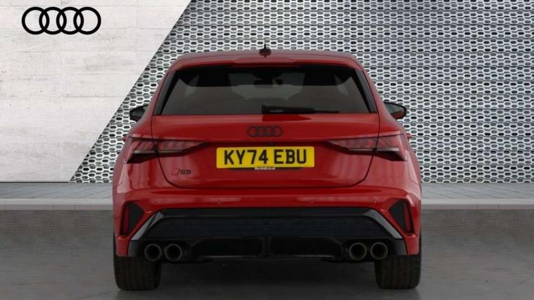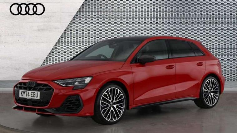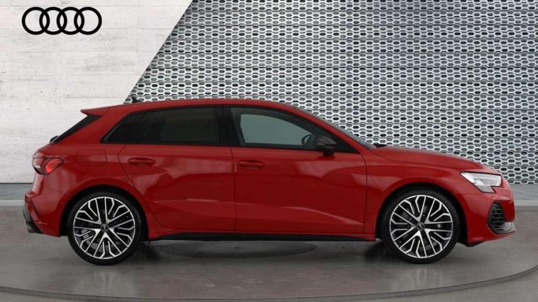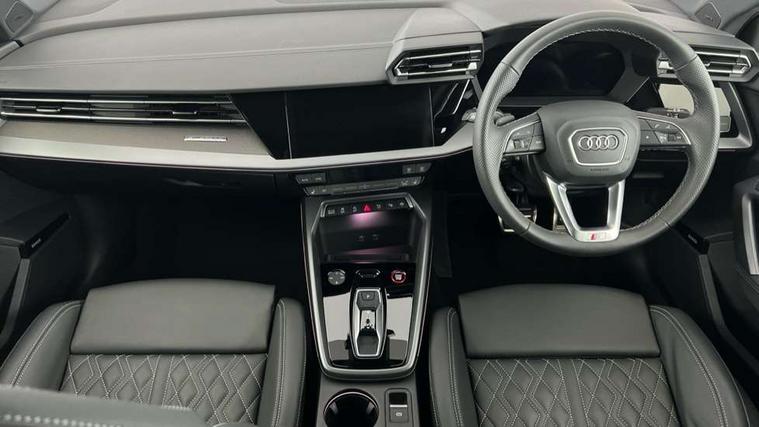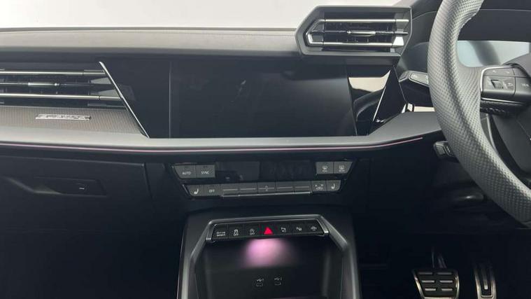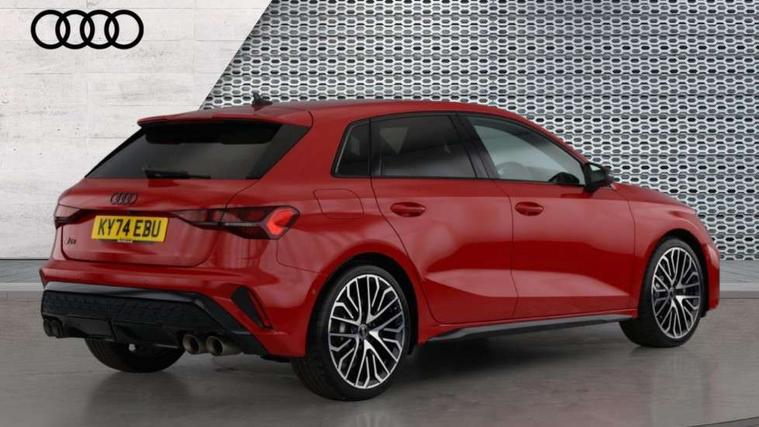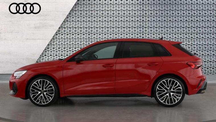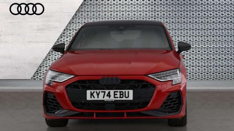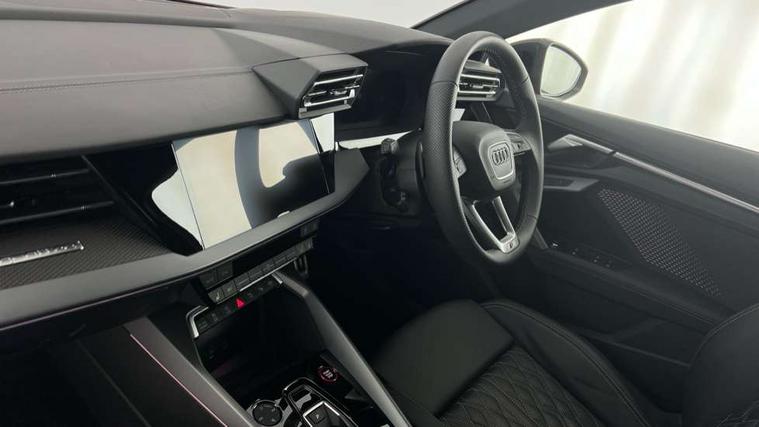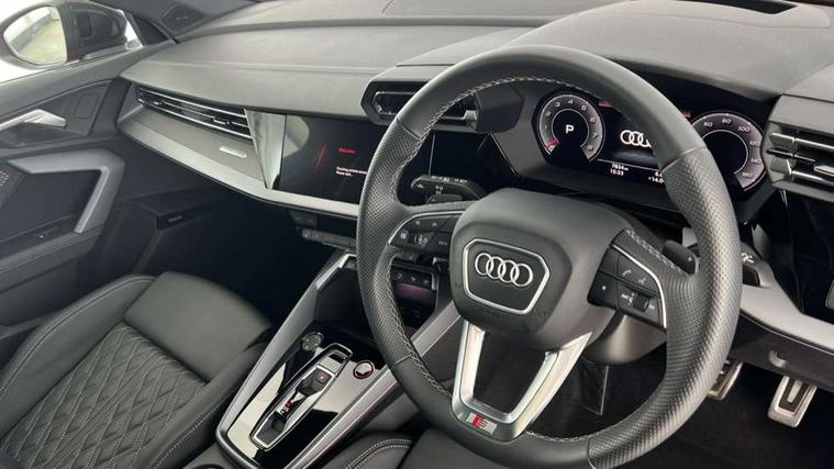 Adjustable speed limiter, Audi drive select, Audi smartphone interface with app store includes wireless Apple carplay, Android auto and Amazon alexa integration, Audi virtual cockpit plus - 12.3" full HD resolution dynamic digital instrument cluster, Automatic start/stop system with recuperation, Bluetooth interface, Camera based traffic sign recognition, Collision avoidance assistant, Distraction and Fatigue warning, e-Call (emergency call), Electromechanical power speed sensitive steering, Lane departure warning system, MMI Navigation Plus with high resolution 10.1" colour touch screen display, Park Assist with parking system Plus, Progressive steering, Service indicator, Tailgate, Trip computer, Voice control system with natural language interaction, S suspension with damper control, Audi Phonebox light with wireless charging, DAB Digital radio, USB ports with charging function in the rear, 3rd brake light, Anthracite grey Audi rings (front and rear), Audi Beam uses LEDs to project Vorsprung onto the ground as you exit your S3, Auto dimming frameless rear view mirror, Black accents front and rear bumpers including air inlets, Black accents in front grille and frame, Black accents window trims strips, Carbon door mirror housings, Electrically adjustable/heated/folding/auto dimming door mirrors with integrated LED indications + kerb view function for passenger side, Exterior model badging, Front electric windows, Headlight washers, Heat insulating glass windscreen, Illuminated door sills with aluminium inserts at the front with S logo, LED daytime running lights, Light and rain sensors, Privacy glass - dark tinted rear window, rear door and side windows, Rear electric windows, Rear side wing doors, Rear wiper, S grille, S3 front bumper with S specific air intake grilles, S3 roof spoiler, 12V socket and storage compartment in front centre console, 3 seat bench in 2nd row, 3 spoke leather multifunction steering wheel with gear shift paddles, 3-zone deluxe automatic air conditioning, 4 way electrically adjustable lumbar support for driver and front passenger, 40/20/40 split folding rear seat bench, Black cloth headlining, Fine Nappa leather upholstery with front sports seats S embossed logo, Front and rear centre armrest in artificial leather, Front and rear headrests, Front/rear floor mats, Heated front seats, Height and reach adjustable steering wheel, Manual boot compartment lid, Rear cup holders, S badging on the steering wheel, Seat side bolsters, Single front passenger seat, Stainless steel pedals and front footrest in black, Aluminium interior elements pack - A3 Sportback, Extended ambient lighting package Pro - S3, Storage package - A3, Technology package pro - A3 S Tronic, 3x3 point rear seat belts, Driver and front passenger airbag with passenger airbag deactivation, Electronic Stabilisation Control (ESC) including ABS, ASR and EDL, First aid kit with warning triangle and 2 safety vests, Front side airbags with head airbags and interaction airbag, Hill hold assist, Pre-sense front with pedestrian and cyclist detection, Seatbelt monitoring, Tyre pressure loss indicator, Anti theft alarm, Anti-theft wheel bolts, Electronically operated child locks, Immobiliser, Remote central locking with safelock, Dash & door inlays in carbon atlas structure, 19" Multi spoke S design gloss turned alloy wheels in anthracite black, Tyre repair kit,