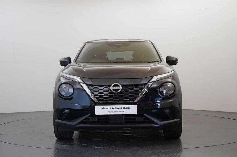 12.3" full colour TFT screen combimeter, Drive modes select (Eco, normal and sport), e-Pedal step, Emergency and breakdown call, EV mode switch, Front parking sensor, Intelligent driver alert system, Intelligent lane intervention, Lane departure warning system, Nissan connect 12.3" touch screen entertainment system, Nissan connect nav with TomTom traffic, Nissan connect services, Outside temperature sensor, Power Steering, Rear parking sensor, Stop/start button, Traffic sign recognition, Trip computer, Voice recognition, WiFi connectivity, Wireless Apple CarPlay and Google Android auto, Wireless Smartphone charger, 10 Bose speakers 8 speakers and 2 headrest speakers for driver/passenger seats, 2 X Rear console USB port, Bluetooth system, USB, Aux-in and 12V socket, Bose personal plus audio system, DAB Digital radio, Auto dimming frameless rear view mirror, Automatic hazard signal with emergency stop signal, Body colour door handles, Electrically adjustable door mirrors with integrated indicators, Follow me home headlights, Front and rear electric window with one touch driver window, High beam assist, LED 3rd brake light, LED daytime running lights, LED front fog lights, LED headlamps, LED rear fog lamp, LED rear lamps, One touch passenger window, Rear privacy glass, Rear side wing doors, Rear wiper, Roof spoiler, Shark fin roof antenna in solid Black, Solid black door mirrors, Three blink turn signal, 3 height adjustable rear headrests, 3 seat bench in 2nd row, 60/40 split folding rear seat, Card holder on driver sunvisor, Door ambient lighting, Driver seat back pocket, Driver side rear coat hanger, Driver/passenger sunvisors and vanity mirrors, Front and rear cabin lights, Front armrest, Front door pockets with bottle holders, Front head restraints, Front/rear passenger grab handles, Gear console ambient circle lighting, Height adjustable driver's seat, Internal chrome door handles, Luggage board, Luggage space lighting, Monoform sporty seats, Multifunction steering wheel, Passenger seat back pocket, Rear door bottle holders, Single front passenger seat, Smooth synthetic leather steering wheel, Synthetic leather kneepad, Synthetic leather shift knob, Synthetic leather upholstery, Telescopic steering wheel adjustment, Two cupholders in front centre console, Two rear isofix child seat anchorage points with top tether, Welcome light and console tray ambient lighting, Comfort pack - Juke, Heat pack with height adjustable passenger seats - Juke, ProPilot pack - Juke Auto, ABS with EBD and brake assist, Active ride control, Active Trace Control, Driver and passenger airbags, Driver and passenger side airbags, Electric handbrake with auto hold function, Electronic Stability Programme (ESP), Front and rear curtain airbags, Height adjustable seatbelts, Hill start assist, Intelligent emergency braking with pedestrian and cyclist recognition, Rear door child safety locks, Seatbelt reminder for driver/front passenger and rear seats, Three 3 point rear seatbelts, Traction control, Tyre pressure monitoring system, VDC Dynamic Vehicle Control, Alarm, Immobiliser, Intelligent key and start push button with walk away lock and approach unlock functions, Remote central locking, 19" Alloy wheels, Tyre puncture repair kit,