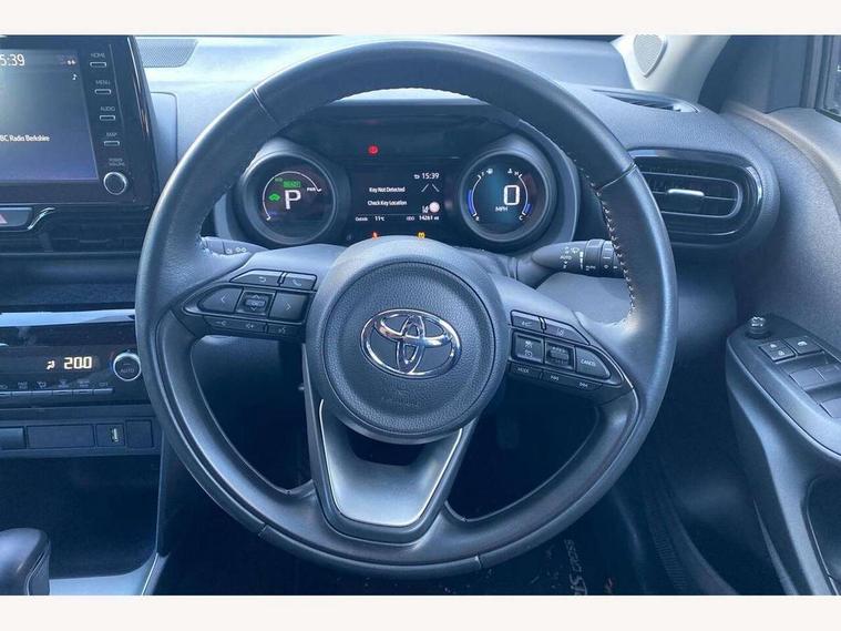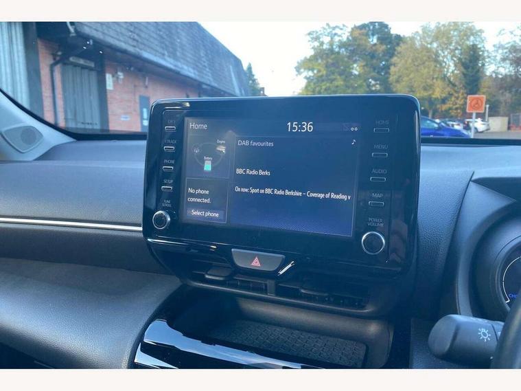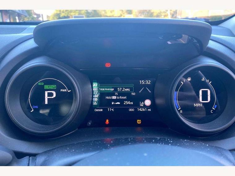4.2" multi information display, 8" Toyota touch 2 multimedia system with Smartphone integration with Apple CarPlay and Android auto, Adjustable speed limiter, Bluetooth connectivity, Digital speedometer, Driver attention alert system, eCall emergency system, Electric power steering, Full range intelligent adaptive cruise control, Hybrid system indicator, Key reminder warning, Lane trace assist, Multimedia, audio, telephone and voice recognition switches on steering wheel, My T Connected services, Pre-collision system enhanced with emergency steering assist, Reversing camera, Road sign assist - RSA, Steering assisted vehicle stability control, 6 speakers, DAB Digital radio, USB connection, 3rd brake light, Acoustic windscreen glass, Anti-jam protection on power windows, Auto high beam [AHB] with on/off switch, Automatic headlights, Black lower front grille, Black Shark-fin antenna, Black upper front grille, Black wheel arch mouldings, Body colour door handles, Body colour front bumper, Body colour rear bumper, Electric adjustable heated door mirrors, Follow me home headlights, Front and rear electric windows with auto up/down function, Front intermittent wipers, Halogen projector headlights, Headlight cut off reminder, Indicators integrated on door mirrors, Intermittent rear wiper, LED daytime running lights, LED Indicators, Manual headlight levelling, Manually retractable door mirrors, Noise reduction layer on windscreen, Rain sensor, Rear side wing doors, Rear spoiler, Rear window defogger, 12v power outlet - front, 2x Rear coat hooks, 3 seat bench in 2nd row, 3 spoke leather steering wheel, 60/40 split folding rear seat, Adjustable speed limiter switch on steering wheel, Auto air conditioning, Boot light, Central armrest, Driver and front passenger personal lights, Fabric door trim, Fabric upholstery, Front console box, Front cup holders, Front head restraints, Glovebox, Grey roof lining, Height adjustable driver's seat, Height adjustable front passenger seat, ISOFIX child restraint system, Lane departure alert switch on steering control, Leather gearshift, Manual telescopic and tilting steering wheel, Mirror on driver and passenger sun visor, Pollen air filter, Rear head restraints, Single front passenger seat, Soft tonneau cover, 3x3 point rear seat belts, ABS+EBD+Brake assist, Driver and passenger central airbags, Driver and passenger front airbags, Driver and passenger side airbags, Electronic parking brake, Emergency brake light system (EBS), Front seat belt reminder, Hill start assist control (HAC), Passenger airbag on/off switch, Pre-collision system with pedestrian and cyclist detection, Rear door child safety locks, Rear passenger side airbags, Rear seat belt reminder, Traction control, Tyre pressure warning system, Immobiliser, Intrusion alarm, Keyless smart entry with push button start, Power door locks, Power passenger window lock, Remote door lock, 16" 10 spoke alloy wheels, Tyre repair kit,