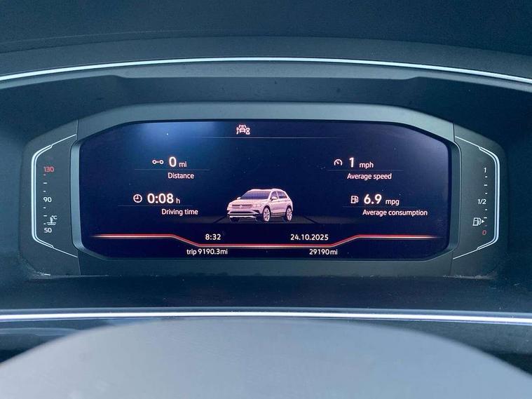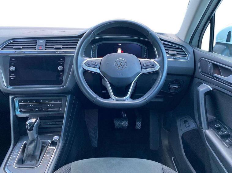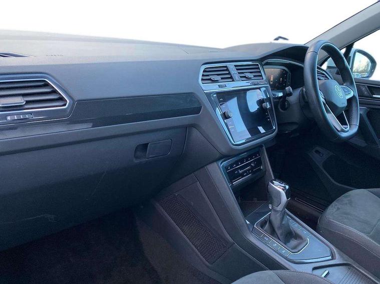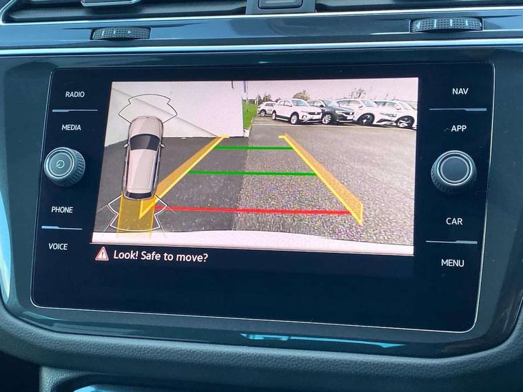 Adaptive cruise control ACC stop and go including speed limiter, App-Connect incl. App-Connect Wireless for Apple CarPlay and Android Auto, Bluetooth phone integration system, Distance control assist, Driver alert system, Driver profile selection, Dynamic road sign display, eCall emergency call system, Electromechanical speed sensitive power steering, Engine start/stop button, Lane keeping system Lane Assist, Lights on warning, Motorised electric tailgate operated via key fob, drivers door and foot movement under tailgate, Multifunction front facing camera, Outside temperature display, Premium multifunction display with multi colour display, Remote control boot opening, Rev counter, Revision / skills operating concept travel assistant, Service interval indicator, Speed limit display, Start/stop system with regenerative braking, Tailgate/trunk lid unlocking from outside, Trip computer, Warning sound and light for doors and tailgate open, Battery regeneration during braking, XDS electronic differential lock for improved traction and handling, 4 X 20 watt output, 8 Speakers, Diversity antenna for FM reception, Radio, SD card slot, Simultaneous pairing of 2 compatible mobile devices, SMS functionality - read, compose and send SMS messages using touch-screen display, Title and cover art display, USB C ports, Aluminium door sill protectors, Auto dimming interior rear view mirror, Automatic headlight control system, Body colour door handles, Body coloured bumpers, Body coloured door mirrors with integrated indicators, Coming/leaving home lighting function, Dynamic headlight range control, Front and rear electric windows, Heated rear window, High level 3rd brake light, IQ light-Adv high beam, Dynamic light assist for LED matrix headlamp+LED separate DRL+DCL, dark red rear LED tech, Poor weather light+ cornering light, Laminated safety glass windshield, heat and sound insulating, LED rear number plate lights, Poor weather light and cornering light, Privacy glass for rear side windows and rear window, Rain sensor windscreen wipers, Rear exhaust tailpipe, Rear fog lamp, Rear side wing doors, Rear windscreen washer and wiper with interval delay, Side and rear windows in heat insulating glass, Tilting and sliding panoramic sunroof with rear panoramic sunroof, Trailer Stability Programme, Windscreen wipers/ intermittent wipe + 4 position delay, 12V outlet in center console rear and in luggage compartment, 12V outlet in front and tray, 2 cup holders in front, 2 LED front reading lights, 2 LED rear reading lights, 3 bench rear seats in 2nd row, 3 rear headrests, 4 load lashing points, 40:20:40 split folding rear seats, Air Care Climatronic 3 zone automatic climate control with enhanced air filter and controls in the rear, Backrest release for left front seat, Climate control unit rear with touch function, Door and side trim panel in foam film and woven fabric, Front centre armrest, Front footwell illumination, Front seats head restraints (x-adjustment), Height adjustable front seats, Height/reach adjust steering wheel, Instrument lighting white adjustable panel illumination, Interior light with delay, Isofix Preparation 2 Rear child seats, Leather gear knob, Lockable cooled glovebox, Luggage compartment lighting, Luggage net, Rear bench seat asymetrically split folding, longitudinally movable and folding with load-through hatch and center armrest, Remote unlocking for rear seat backrest, Removable luggage cover, Removable rear headrests, Safety optimised front head restraints, Single front passenger seat, Sliding/reclining rear seats, Standard rear seat release, Storage compartment in driver's door, Storage compartment in passenger's door, Storage compartment in rear doors, Storage compartments in luggage area left and right, Storage tray on dashboard, Sun visors with illuminated vanity mirrors, Top front comfort seats, Variable boot floor, height adjustable and removable, Easy open and close pack with safelock - Tiguan, 3 point seat belt for centre rear seats, 3 point seat belts with seat belt pretensioners for the outer rear seats, Active bonnet, Curtain airbags for front and rear passengers, Driver/Front Passenger airbags, Drivers knee airbag, Electronic parking brake with auto hold, Electronic Stability Control with driver steering recommendation, ABS, ASR, EDL, EDTC and trailer stabilization, Front assist with autonomous emergency braking (for Adaptive Cruise Control ACC up to 130 mph), Front disc brakes, Front passenger airbag deactivation, Front side airbags, Height adjustable front 3 point seatbelts + pretensioners, Hill hold control, Manual child proof rear door locks, Pedestrian monitoring system, Power assisted brakes, Proactive passenger protection system in combination with front assist, Rear disc brakes, Rigid safety cell with front and rear crumple zones, Two tone horn, Warning sound and light for front seat belts if unfastened, Anti theft alarm system with interior monitoring, backup horn and towing protection, Anti theft wheel bolts, Central locking system with safelock radio remote control and 2 remote control folding keys, Electronic engine immobiliser, Tool kit,