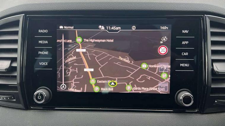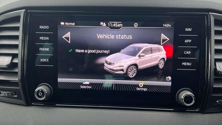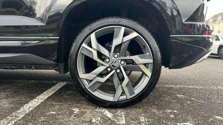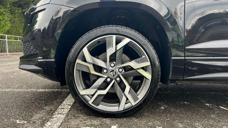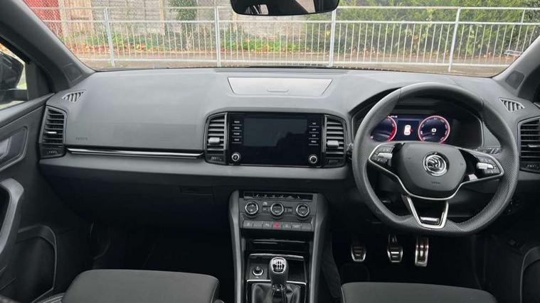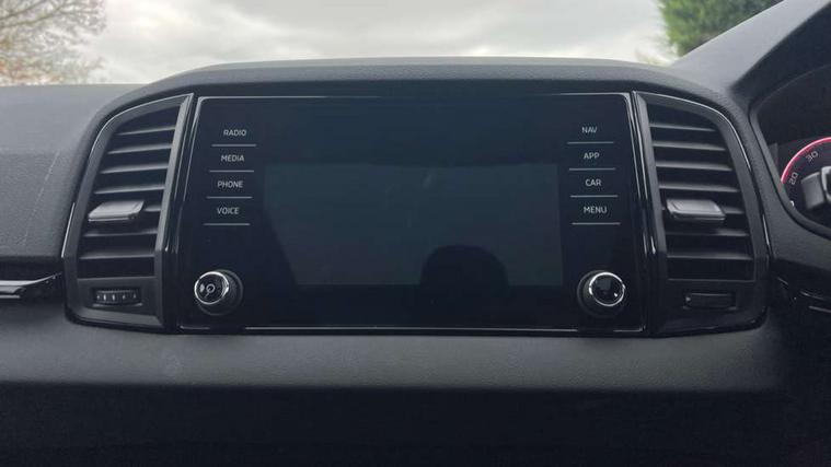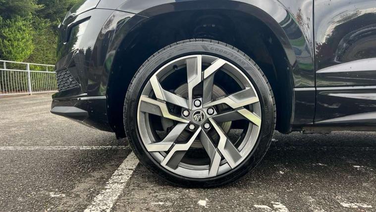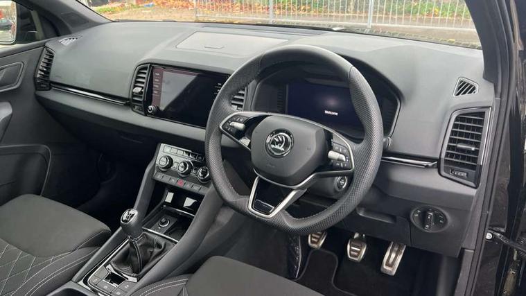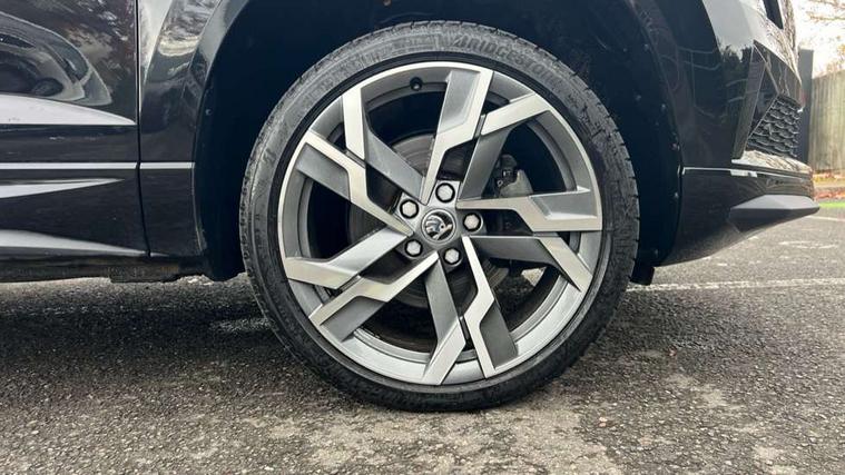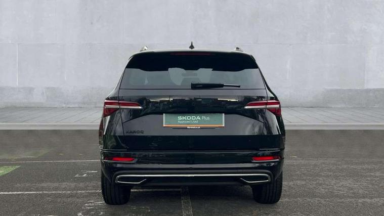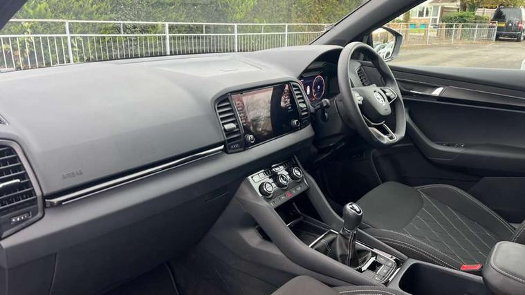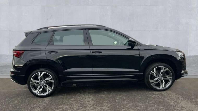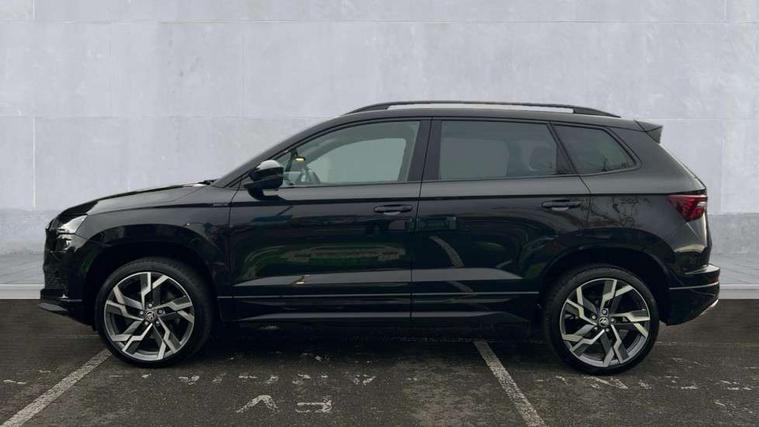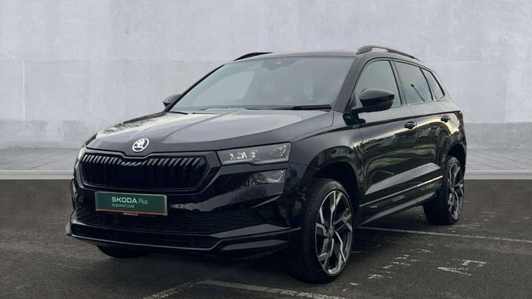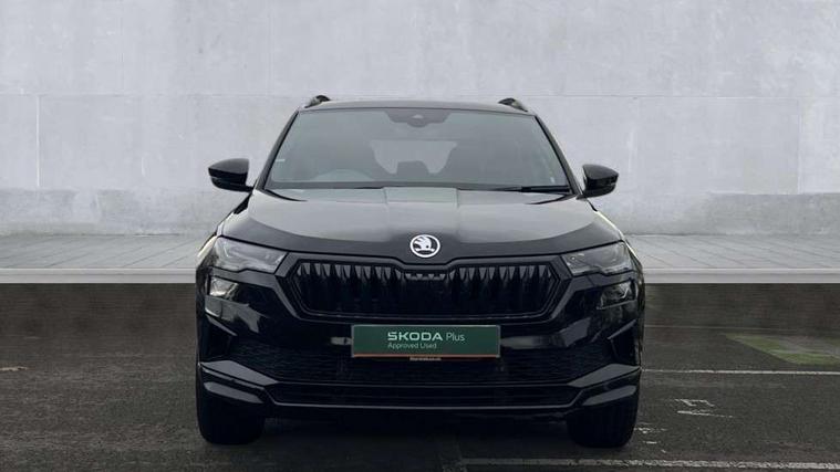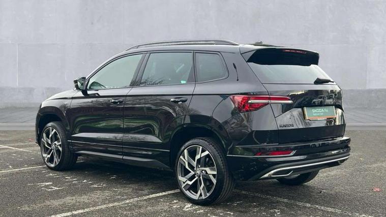 8" Digital display, Advanced driver attention and drowsiness monitor, Emergency services call system, Outside temperature gauge, Sensor for driver assistance systems, Service interval indicator, SmartLink wireless for Apple and wired for Android, Start/stop system with regenerative braking, USB C Port x 2 in front centre console, Virtual Cockpit - 10.25" digital display, Virtual pedal with electrically operated boot door, Wireless smartphone charging, DAB radio with Bluetooth, USB connection, Acoustic glass, Aero front windscreen wipers with intermittent function, Auto dimming rear view mirror with light and rain sensors, Black door mirrors, Black electric window control buttons, Black radiator grille, Black roof rails, Body colour door handles, Electric front and rear windows with child proof lock, Front door steps with SportLine logo, Heated rear windscreen, LED daytime running lights, LED rear lights with high functionality welcome effect and dynamic indicators, Light assistant (coming/leaving home/tunnel light), Panoramic sliding sunroof, Plastic scuff plates in door apertures, Privacy glass, Protective door side sills in body colour, Rear diffuser, Rear side wing doors, Rear spoiler, Rear window wiper with washer system and intermittent control, Safety reflectors on front doors, Skoda lettering on tailgate in black, Sportline badge on front fender, Sportline decorative inserts with badging, Sports front and rear bumpers, Third brake light, 1.5 litre bottle holders in driver and front passenger door panels, 12V socket in boot, 12v socket in front centre armrest with storage compartment and rear air vents, 2 x Tablet holder, 3 rear height adjustable headrests, 3 seat bench in 2nd row, 3 spoke sports leather heated multifunction steering wheel, 4 foldable roof handles with rear coat hooks, Black floor carpet, Black roof headlining, Chrome inner door handles, Foldable hooks in the boot, Front head restraints, Height adjustable front three point seats belts with tensioners, Height/reach adjust steering wheel, Ice scraper, Illuminated glovebox, Illuminated luggage compartment, Isofix child seat preparation for front passenger seat, Isofix child seat preparation outer rear, Manual lumbar support for front seats, Pen holder, Pollen filter, Rear boot cover, Rear reading lights, Rear seats fixed folding and divided 60:40, Rubbish bin door, Safety vest holder, Single front passenger seat, Storage box in upper central dashboard closed, Sunvisors with illuminated vanity mirrors, Textile floor mats, Ticket holder, Titan black interior ceiling, Umbrella under passenger seat, Under passenger seat storage compartment, LED Interior lighting pack with Skoda welcome logo - Karoq, Light Pack - Karoq, Non Smokers pack, Automatic door unlocking in case of crash, Automatic fuel cut off in case of crash, Driver airbag, Electronic parking brake with auto hold function, Emergency rear braking signal, ESC (incl. ABS+MSR+ASR+EDS+HBA+DSR+RBS+MKB), Front side airbags, Head airbags, Hill hold control, Knee airbags, Passenger airbag with switch-off function, Pedestrian monitor, Seatbelt reminder signalisation and pretensioner for all seats, Three point seatbelts rear, Two tone horn, Tyre pressure monitor, Alarm with interior monitoring, back up horn and tilt sensor with safe function, Electronic engine immobiliser, Keyless entry and start/stop, Remote central locking with 2 remote folding keys, Black air vent surround, Black centre console, carbon door decor, Satin black dashboard, Satin black door trim, 19" Sagittarius anthracite alloy wheels, Anti-theft wheel bolts protection, Breakdown and tool kit,