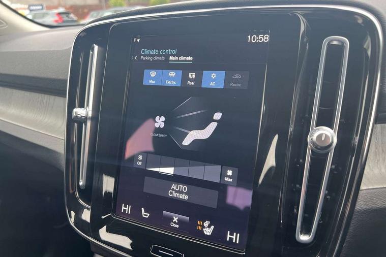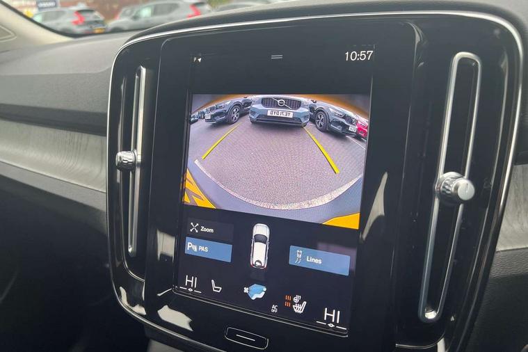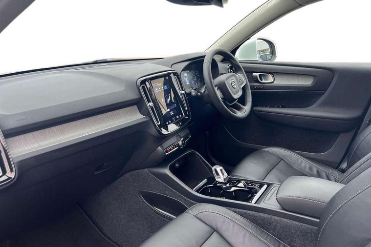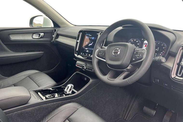 12.3" Active TFT crystal driver's instrument display, 9" centre console portrait touch screen, Adjustable steering wheel force, Bluetooth hands free telephone kit, Drive mode selector, E-call, Lane keep assist with driver alert control, Oncoming Lane Mitigation, Power operated tailgate, Sensus navigation with European mapping and traffic information, Speed limiter, Speed sensitive steering, Voice activated control for key functions, Volvo on call, Dynamic chassis, DAB Digital radio, Steering wheel mounted remote controls, Adaptive brake lights with high level LED brake lights, Auto dimming interior mirror, Automatic headlamp levelling, Chrome window surround, Colour coordinated auto folding and heated power door mirrors, Front aluminium tread plates, Front and rear electric windows, High gloss black front grille with chrome inserts, High gloss black sensus surround deco, High Gloss silver front and rear skid plate, Home safe and approach lighting, Integrated roof rails in silver, LED Headlights + Active high beam incorporating daytime running lights, Rain sensor with automatic windscreen wiper activation, Rear side wing doors, Rear wiper, Roof antenna, Roof spoiler, Visible VIN plate, 12V socket in front tunnel console and luggage compartment, 2 zone electronic climate control and rear air vent, 3 seat bench in 2nd row, 3 Spoke tailored steering wheel with chrome trim, 60/40 versatile split folding rear seat, A-pillar parking ticket holder, Bright metal luggage threshold, Centre console cupholders and storage, Floor mats, Front footwell illumination, Front headrests, Front reading light and theatre lighting, Front tunnel net pocket and integrated waste bin, Glovebox bag hook, Height/reach adjustable steering column, Height/tilt adjustable driver's seat, High gloss centre tunnel deco, Illuminated glovebox, Illuminated luggage compartment, Illuminated vanity mirrors, Isofix attachments on outer rear seats, Leather faced upholstery, Load protection net, Multi directional lumbar support, Orrefors Crystal gear lever knob, Power driver seat with memory + exterior mirrors memory, Rear armrest / integral cup holders / storage tray, Rear coat hook, Single front passenger seat, Underfloor cargo storage, Vanity mirror with ticket holder, Park assist pack - XC40, 3x3 point rear seatbelts, City safety includes pedestrian, cyclist and large animal detection and front collision warning with full auto brake, Drivers knee airbag, Dual stage driver/passenger airbags, Electronic parking brake with auto hold, First aid kit, Front and outer rear seatbelt reminder and pretensioners, Front seats SIPS airbags, Hill descent control, Hill start assist, Inflatable curtain, Passenger airbag cut-off device, Road sign information display, Run off Road Mitigation, Run off Road Protection, SIPS (Side Impact Protection System), Slippery road and hazard light alert, Stability and Traction Control with Spin control, Engine Drag Control and Corner Traction Control, Tyre pressure monitoring system, Vehicle deceleration control with Anti-lock Brake System, Electronic Brake Distribution and Emergency Brake Assist, Warning triangle, WHIPS whiplash protection system - front, Anti-theft alarm including immobiliser/volume sensor + level sensor, Care key with user defined top speed, Key integrated remote control central locking + fuel flap with deadlocking system and auto open/close power windows, Locking wheel nuts, Private locking for tailgate, Driftwood inlays,