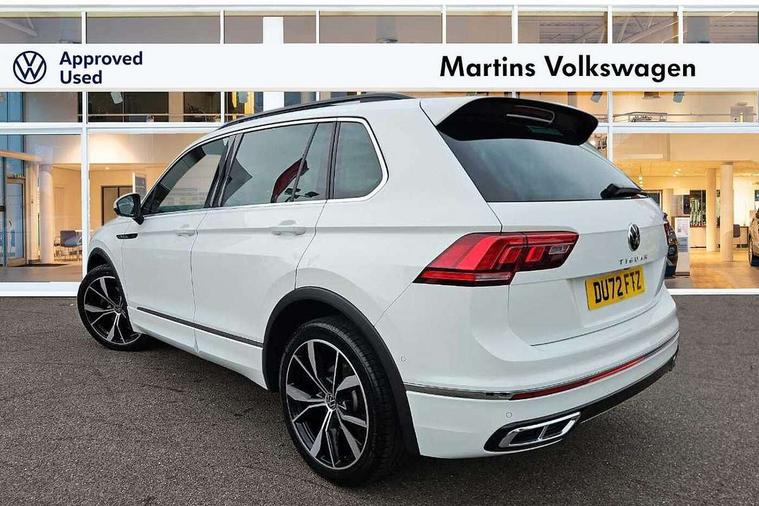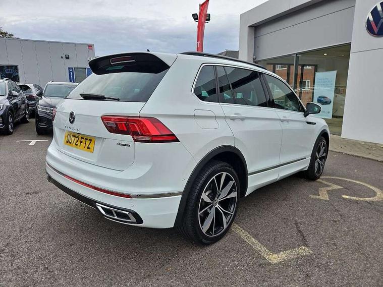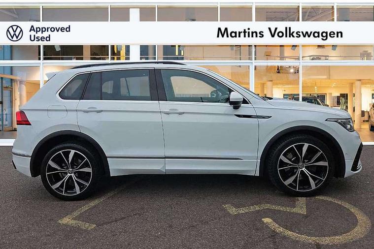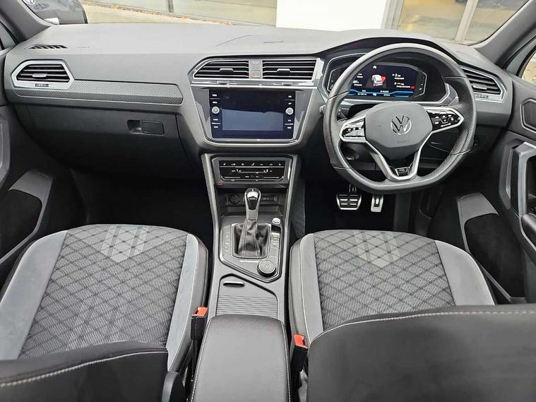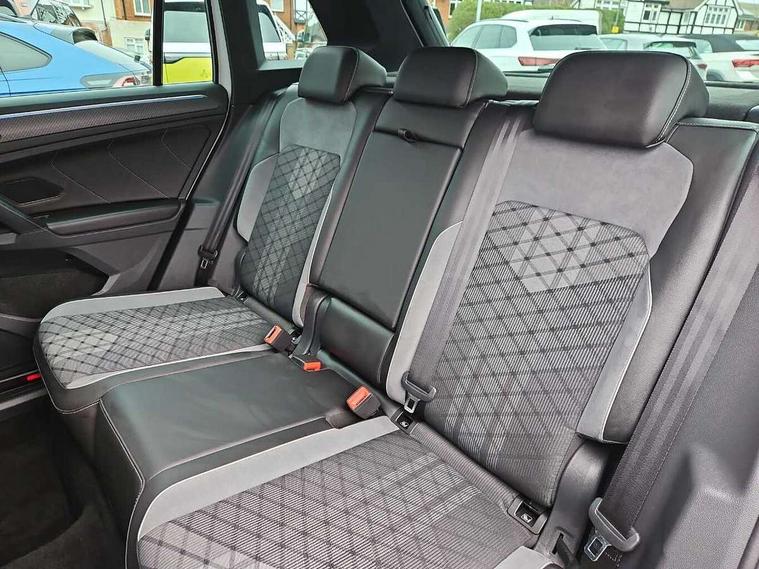 Adaptive cruise control ACC stop and go including speed limiter, App-Connect incl. App-Connect Wireless for Apple CarPlay and Android Auto, Bluetooth phone integration system, Distance control assist, Driver alert system, Driver profile selection, Dynamic road sign display, eCall emergency call system, Electromechanical speed sensitive power steering, Engine start/stop button, Lane keeping system Lane Assist, Lights on warning, Multifunction front facing camera, Outside temperature display, Premium multifunction display with multi colour display, Remote control boot opening, Rev counter, Revision / skills operating concept travel assistant, Service interval indicator, Speed limit display, Start/stop system with regenerative braking, Trip computer, Warning sound and light for doors and tailgate open, All wheel drive - 4Motion, Battery regeneration during braking, XDS electronic differential lock for improved traction and handling, 4 X 20 watt output, 8 Speakers, Diversity antenna for FM reception, Radio, SD card slot, Simultaneous pairing of 2 compatible mobile devices, SMS functionality - read, compose and send SMS messages using touch-screen display, Title and cover art display, USB C ports, Auto dimming interior rear view mirror, Automatic headlight control system, Body colour door handles, Chrome moldings on the side windows, Coming/leaving home lighting function, Dynamic headlight range control, Front and rear electric windows, Heated rear window, High level 3rd brake light, Laminated safety glass windshield, heat and sound insulating, LED headlamps with LED separate daytime running light and dynamic cornering light, LED rear combination lamps, LED rear number plate lights, License plate carrier in front and rear, Poor weather light and cornering light, R Line body kit, R Line side sills, Rain sensor windscreen wipers, Rear exhaust tailpipe, Rear fog lamp, Rear side wing doors, Rear spoiler in R style, Rear windscreen washer and wiper with interval delay, Side and rear windows in heat insulating glass, Trailer Stability Programme, Unique R Line badging, Windscreen wipers/ intermittent wipe + 4 position delay, 12V outlet in center console rear and in luggage compartment, 12V outlet in front and tray, 2 cup holders in front, 2 LED front reading lights, 2 LED rear reading lights, 3 bench rear seats in 2nd row, 3 rear headrests, 4 load lashing points, 40:20:40 split folding rear seats, Air Care Climatronic 3 zone automatic climate control with enhanced air filter and controls in the rear, Backrest release for left front seat, Black headlining, Brushed stainless steel pedals and footrest, Carpet mats in front and rear with decorative stitching in Gray, Climate control unit rear with touch function, Door and side trim panel in foam film, insert in leatherette, Front centre armrest, Front footwell illumination, Front seats head restraints (x-adjustment), Height adjustable front seats, Height/reach adjust steering wheel, Instrument lighting white adjustable panel illumination, Interior light with delay, Isofix Preparation 2 Rear child seats, Leather gear knob, Lockable cooled glovebox, Luggage compartment lighting, Luggage net, Rear bench seat asymetrically split folding, longitudinally movable and folding with load-through hatch and center armrest, Remote unlocking for rear seat backrest, Removable luggage cover, Removable rear headrests, Safety optimised front head restraints, Single front passenger seat, Sliding/reclining rear seats, Standard rear seat release, Storage compartment in driver's door, Storage compartment in passenger's door, Storage compartment in rear doors, Storage compartments in luggage area left and right, Storage tray on dashboard, Sun visors with illuminated vanity mirrors, Top front comfort seats, Variable boot floor, height adjustable and removable, Driver assistance pack plus - Tiguan DSG, 3 point seat belt for centre rear seats, 3 point seat belts with seat belt pretensioners for the outer rear seats, Active bonnet, Curtain airbags for front and rear passengers, Driver/Front Passenger airbags, Drivers knee airbag, Electronic parking brake with auto hold, Electronic Stability Control with driver steering recommendation, ABS, ASR, EDL, EDTC and trailer stabilization, Front assist with autonomous emergency braking (for Adaptive Cruise Control ACC up to 130 mph), Front disc brakes, Front passenger airbag deactivation, Front side airbags, Height adjustable front 3 point seatbelts + pretensioners, Hill hold control, Manual child proof rear door locks, Pedestrian monitoring system, Power assisted brakes, Proactive passenger protection system in combination with front assist, Rear disc brakes, Rigid safety cell with front and rear crumple zones, Two tone horn, Warning sound and light for front seat belts if unfastened, Anti theft alarm system with interior monitoring, backup horn and towing protection, Anti theft wheel bolts, Electronic engine immobiliser, Tool kit,