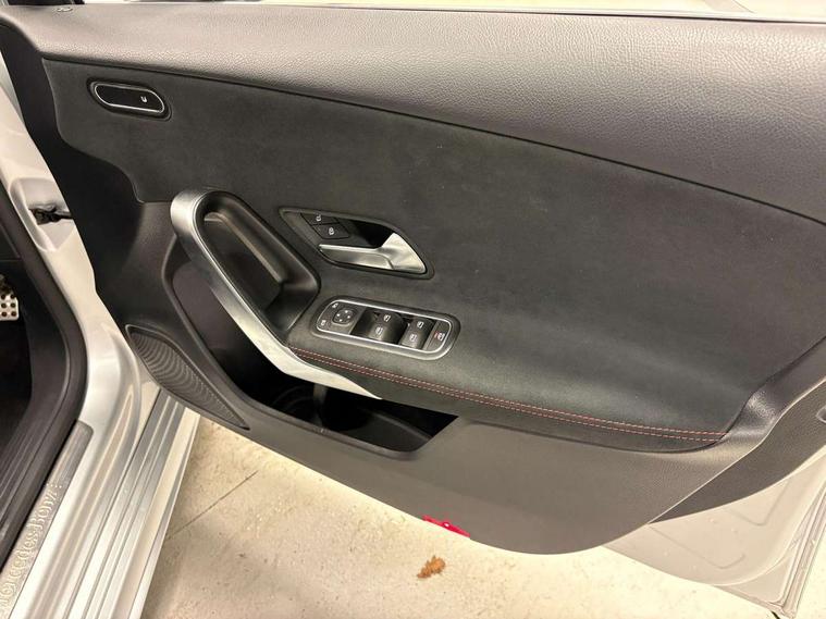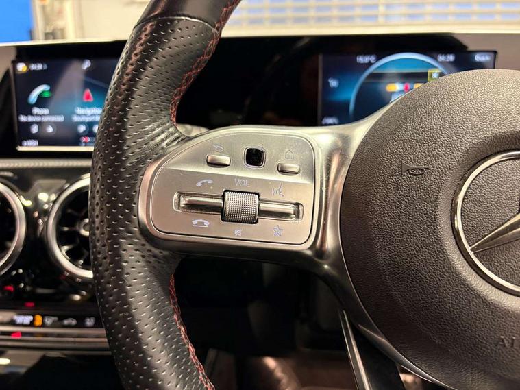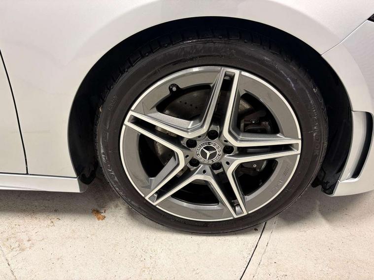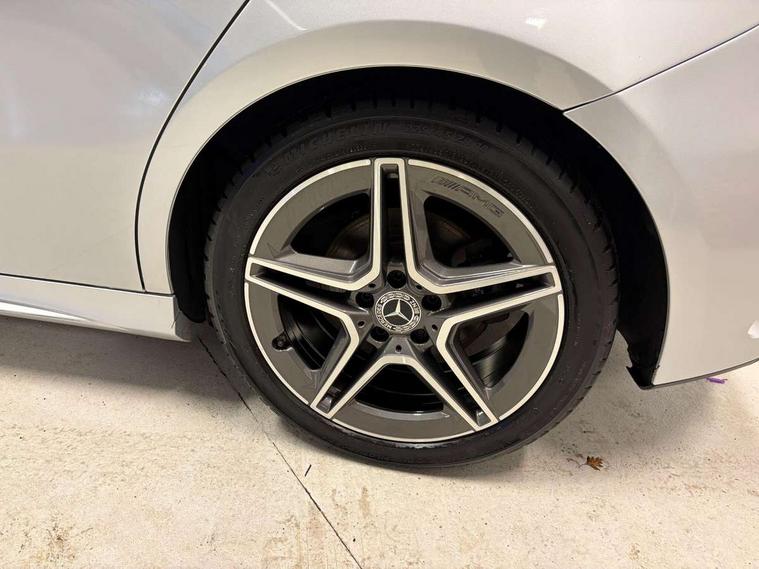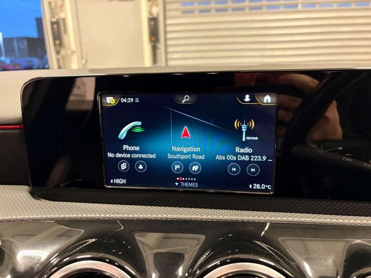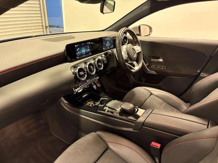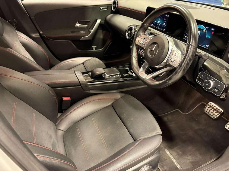 180 degree rear view camera with parking guidelines, 7" colour screen in instrument panel, 7" touchscreen media display, Attention assist, Brake pad wear indicator warning light, Car wash mode, Cruise control + speed limiter, Direct steering, Dual bluetooth interfaces, DYNAMIC SELECT with a choice of driving modes (ECO, Comfort, Sport and Individual), ECO start/stop function, Fluid level warning indicator for fuel, oil, coolant and washer fluid, Hard-disk navigation, Hey Mercedes Voice activation, Lamp failure indicator, Mercedes me connect including emergency call system, accident recovery, breakdown and maintenance management, Mercedes me remote services, Outside temperature gauge, Owners manual in English, Pre-installation for private car sharing, Preinstallation for Mercedes Benz link, Service indicator (ASSYST), Speed sensitive power steering, Trip computer, Lowered comfort suspension, Rear axle multi-link, 2 USB ports (type C) in rear stowage compartment and one in front of center console, 6 speakers, DAB Digital radio, MBUX multimedia system with DAB digital radio and touchpad including satellite navigation, Mercedes-Benz sound system - 100W, 4 Electric Front and Rear windows, Adaptive brake lights, AMG bodystyling - Front apron with splitter in chrome, rear apron with chrome trim and chrome visible trim elements in tailpipe, Black weather strip, Body colour bumpers, Body colour door handles, Body colour side skirt, Body coloured door mirrors, Chrome beltline trim, Diamond radiator grille with chrome pins and silver louvre + chrome insert, Electric adjustable and heated door mirrors with integrated LED side indicators, Exhaust system - Twin visible tailpipes in polished stainless steel, Headlamp assist automatic headlamp activation, Heated glass rear windscreen + timer control, LED high performance headlamps with integrated LED daytime running lights, LED tail lamp, LED third brake light, Privacy glass, Radio aerial, Rain sensing windscreen wipers with two sensitivity settings, Rear fog lights, Rear wiper, Window line trim strip in chrome, 3 Spoke flat bottom leather multi function steering wheel with perforated leather in grip area, 40:20:40 split folding rear seats, Artico man-made leather/Microfibre Dinamica upholstery with red contrast stitching, Auto Mercedes-Benz child seat recognition sensor, Black air vents with surround in silver chrome, Black roof lining, Brushed stainless steel sports pedals with rubber studs, Controller on centre console with chrome surround, Floor mats with stitched edging and AMG lettering, Front centre armrest with storage compartment, Front door sills with Mercedes Benz lettering, Front seat backs luggage nets, Front seat cushion length adjustment, Galvanished gear shift paddles on steering wheel, Heated front seats, Height/reach adjustable steering column, Interior mirror with reading lamps in black and frameless, Manual height adjustable front seats, Rear head restraints, Seat occupancy sensor for front passenger seat, Sports seats with integrated headrests, Stowage compartment in centre console with retractable cover, Sunvisors with illuminated vanity mirrors, Touchpad on center console, Twin front cupholders, Two zone thermotronic luxury automatic climate control, Light and sight pack - A Class, Seat comfort pack - A Class, 3 rear 3 point seatbelts, ABS with Brake Assist, Active bonnet, Active brake assist includes forward collision warning system with autonomous braking, Adaptive brake assist with hold function and hill start assist, Black seatbelts, Childproof locks manually operated for rear doors and electrically operated for rear power windows, Crash responsive emergency lighting, Driver and passenger head and side airbags, Drivers knee airbag, Dual stage driver/passenger airbags, Electronic parking brake, ESP curve dynamic assist, ESP with ASR, Front and rear seatbelt reminder, Front brake callipers with Mercedes Benz lettering, ISOFIX and top tether child seat fixing points in two outer rear seats, Tyre pressure monitoring system, Warning triangle and first aid kit, Window airbags, Alarm system/interior protection/immobiliser, Keyless Go, Remote central locking and crash sensor with emergency opening function, Urban guard vehicle protection system with immobiliser and interior protection, Dinamica microfibre trim in black, 18" AMG 5 twin spoke light alloy wheels in titanium grey with highsheen finish, Summer tyres, Tirefit sealant kit,