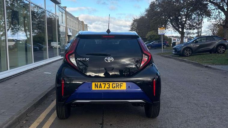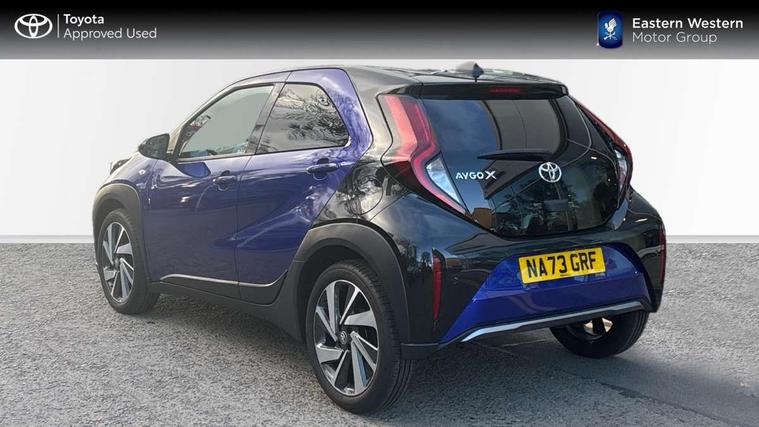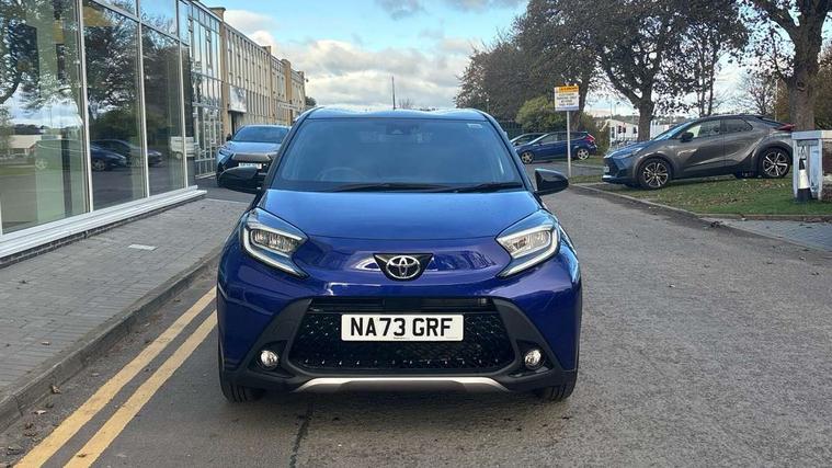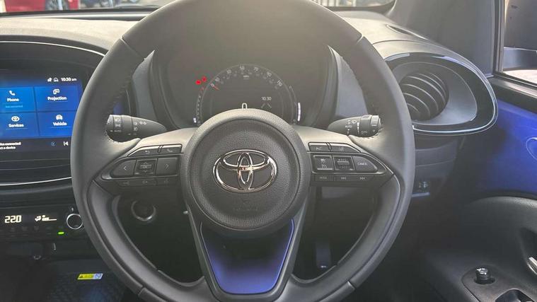4.2" TFT colour screen, Adjustable speed limiter, Analogue speedometer, Bluetooth connectivity, Digital tachograph, Driver attention alert system, eCall emergency call system, Electric power steering, Front and rear parking sensors with auto brake, Intersection turn assist, Key reminder warning, Noise reduction kit, Pre collision system with emergency steering assist, Remote boot door release on key, Reversing camera with static guide lines, Smart entry and push button start, Speed limit display, Start and stop, Wireless charger, Wireless Smartphone Integration includes Apple CarPlay and Android auto, Vehicle Stability Control (VSC), 4 speakers, 9" HD multimedia display touch screen with Toyota smart connect, DAB digital audio broadcast, USB connector, Auto headlights, Auto wipers, Automatic headlights cut-off, Automatic high beam On/Off switch, Bicycle towing hook, Black fog light surrounds, Black side protection mouldings, Black wheel arch mouldings, Body colour door handles, Body coloured front bumper, Boot door scuff plate, Eclipse black rear bumper, Electric heated door mirrors, Follow me home headlights, Front and rear underruns in silver, Front fog lights, Front power windows, Gloss black door mirrors, Gloss black upper front grille, Headlight cut-off reminder, LED daytime running lights guide, LED front light guide, LED High mounted stop lamp, LED projector headlights, Manual day/night rear view mirror, Manual headlight levelling, Pagoda roof, Power adjustable door mirrors, Power back door, Privacy glass, Rain sensor, Rear combination lights LED bulb type, Rear side wing doors, Rear windscreen defogger, Rear windscreen wiper, Remote hazard lights system, Short antenna, Variable intermittent windscreen wipers, 12v power outlet - front, 2 seat bench in 2nd row, 3 spoke leather steering wheel, 50/50 split folding rear seat, Adhesive roof headlining, Adjustable speed limiter switch on steering wheel, Audio and telephone switches on steering wheel, Auto air conditioning, Black roof lining, Body colour satin anodised insert on steering wheel, Boot light, Centre room light, Chrome interior door handles, Chrome surround on air conditioning buttons, Clean air filter, Console box storage, Floor mats, Front and rear cup holders, Front head rest deco art, Front head restraints, Height adjustable driver seat, Intelligent adaptive cruise control switch on steering wheel, ISOFIX child restraint system on rear seats, Lane departure alert switch on steering wheel, Leather gearshift knob, Light blue ambient lighting in centre console, Manual tilt steering wheel, Manually reclining and sliding driver seat, Manually reclining and sliding front passenger seat, Multimedia switches on steering wheel, Partial synthetic leather upholstery, Pollen filter, Rear door pockets, Rear head restraints, Satin silver insert on gear shift knob, Single compartment glovebox with lights, Single front passenger seat, Soft tonneau cover, Sun visors with mirror on driver and passenger side, Voice recognition switch on steering wheel, Toyota safety sense pack - Aygo X, Anti lock braking system + Electronic brake force distribution, Child safety door lock, Emergency brake light signal (EBS), Hill start assist control (HAC), Passenger airbag on/off switch, Seat belt reminder for front and rear seats, Supplement restraints system (SRS) - 6 airbags, Traction control, Tyre pressure warning system, Immobiliser, Remote power door locks, Black wheel centre caps, Tyre repair kit,