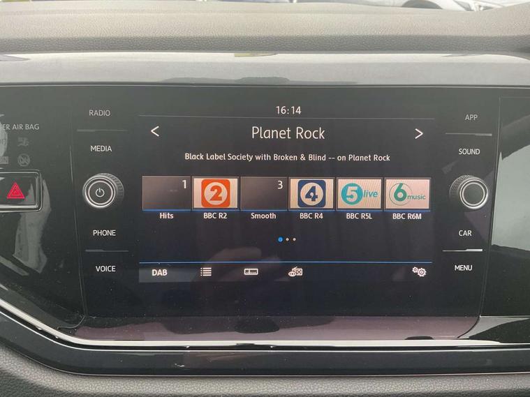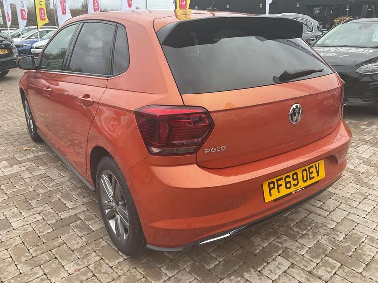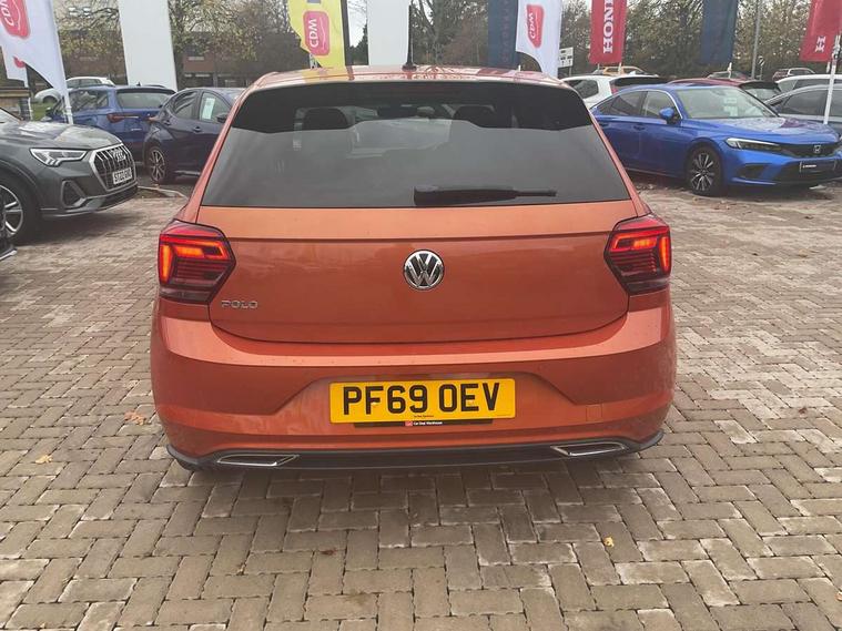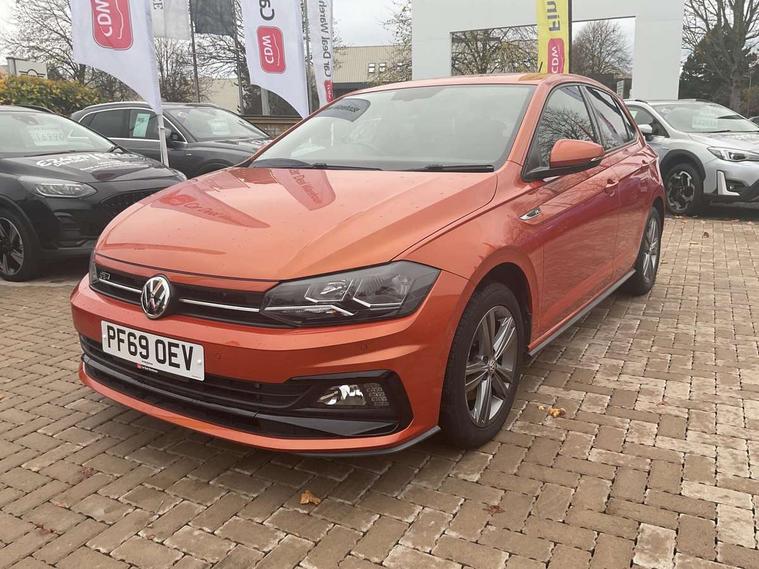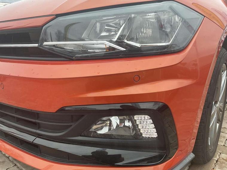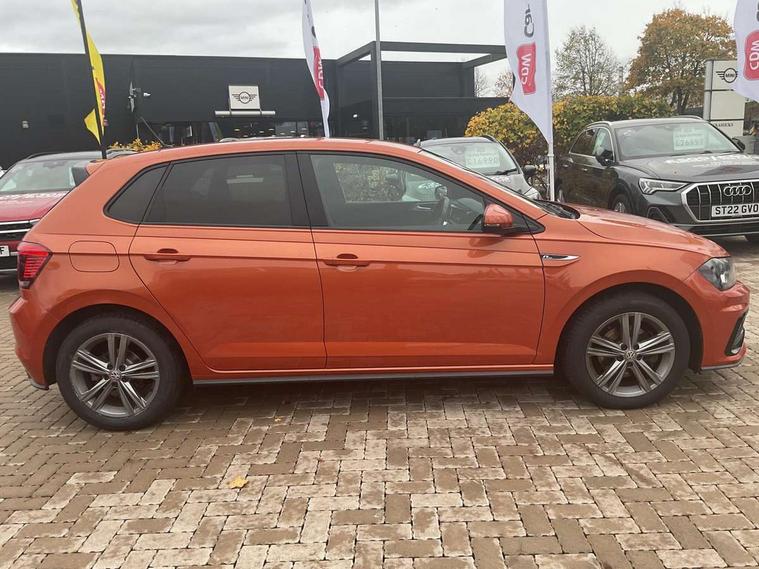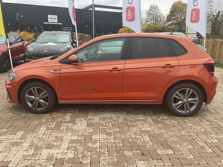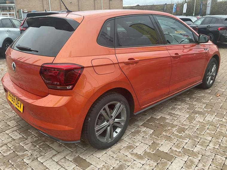 App-Connect, Digital clock, Driver alert system, Lights on warning, Multifunction computer plus, Power assisted speed sensitive steering, Speedo and rev counter, electronic odometer, trip, service interval display and fuel gauge, Start/stop system, Volkswagen connect, Warning buzzer and light for front seatbelts unfastened, Battery regeneration during braking, Galvanished body, Black grille with chrome surround, Body colour door handles, Body coloured side sills, Chrome trimmed strip on lower bumper, Electric front windows, Electrically foldable, adjustable and heated door mirrors with reverse activated kerb view adjustment on passenger's side, Front fog lights including static cornering, Front windscreen washers and wipers with 4 speed intermittent delay, Heat insulating tinted glass, Heated rear window with auto timer, High level 3rd brake light, LED darkened rear light clusters, LED daytime running lights, LED rear number plate lights, Left and right chrome effect trapezoid fascia exhaust tailpipe surrounds, Rear diffuser, Rear electric windows, Rear windscreen washer and wiper with interval delay, reverse activated, Unique R Line badging, 2 bag hooks in luggage compartment, 2 front cupholders and 12 V socket with cover, 3 rear head restraints, 60/40 split folding rear seat, Ambient lighting in front foorwell, front/rear door and dashboard light strips, Carbon flag cloth upholstery, Centre console storage with open storage compartment, Chrome-plated electric mirror adjustment switch surround, Chrome-plated electric window button surround, Driver and front passenger seat height adjustment, Driver and front passenger sunvisors with illuminated vanity mirrors, Dust/pollen filter, Folding rear seat backrest, Front + rear carpet mats, Front centre armrest with storage compartment, Front head restraints, Front seat backrest storage pockets, Front sport seats with lumbar adjustment and R line logo on seat backrest, Gear change selection via paddle shift on steering wheel, Gear lever gaiter in black trim surround, Glovebox, Handbrake grip button in chrome effect, Height/reach adjustable steering column, Instrument lighting, adjustable panel illumination, Interior light with delay, Isofix Preparation 2 Rear child seats, Jack and tool kit, Leather gear knob and handbrake grip, LED interior lighting - 2 reading lights front and rear with interior delay and dimming function, Luggage compartment cover, removable, Luggage compartment lighting, Luggage compartment with variable load floor, Stainless steel pedals, Storage compartment in front doors, Storage compartment in rear doors, Storage compartment under front seats, Three spoke leather trimmed multifunction steering wheel with aluminium inserts and R Line Logo, Titanium black roof lining and sun visors, Unique R Line door sill protectors, Light and sight pack - Polo, R Line styling pack - Polo, 3 point height adj front seatbelts + pretensioners, 3x3 point rear seatbelts, ABS, Automatic post collision braking, Driver/front passenger airbag, Drivers and front passengers safety optimised head restraints, ESP with EDL + ASR, Front and rear passenger curtain airbags, Front passenger airbag deactivation, Front seat side impact airbags, Front/rear disc brakes, Hill hold control, Hydraulic Brake Assist (HBA), Single tone horn, Tyre pressure monitoring system, Alarm with interior protection and deactivation via infotainment system, Electronic engine immobiliser, Remote central locking with 2 remote folding keys, Chrome plated air vent surround, Chrome plated instrument surrounds, Shadow steel decorative inserts, Steel space saver spare wheel,