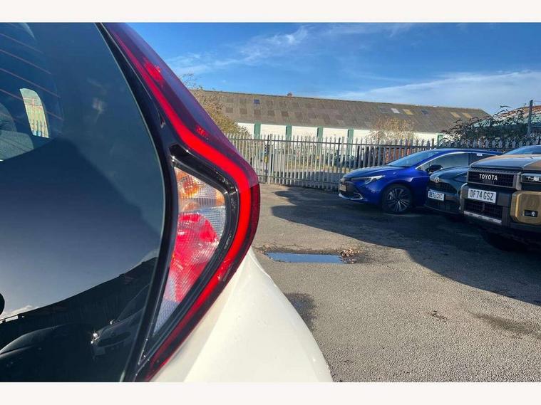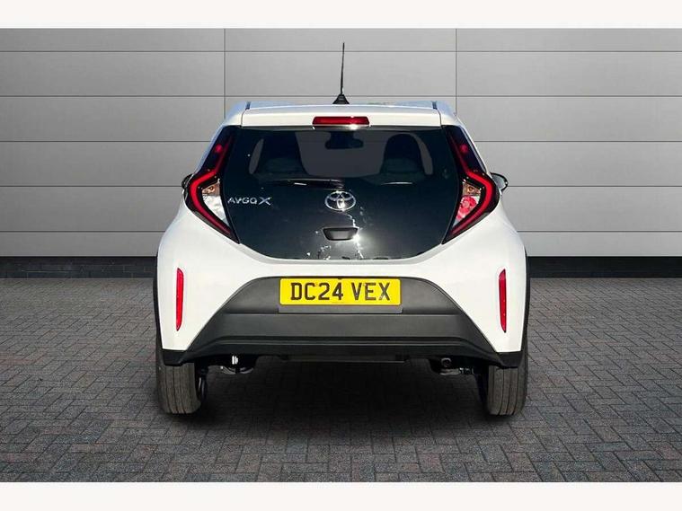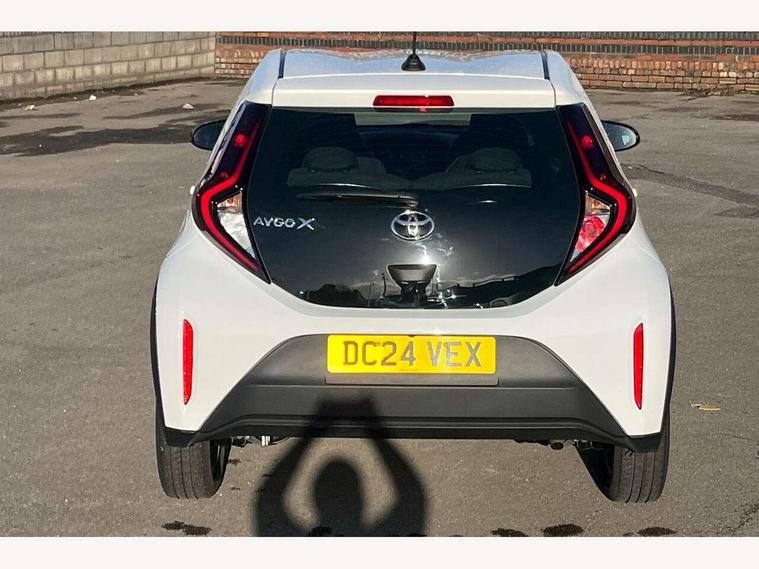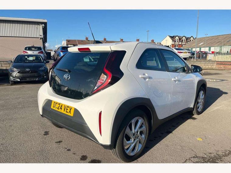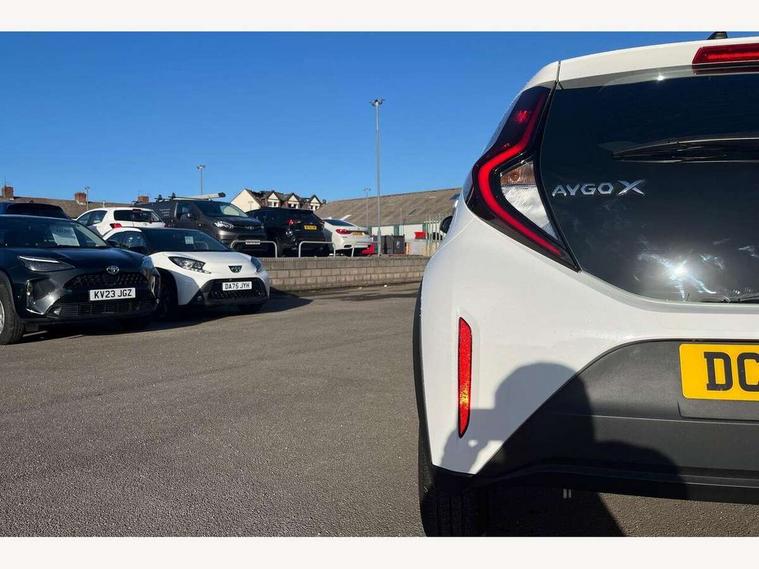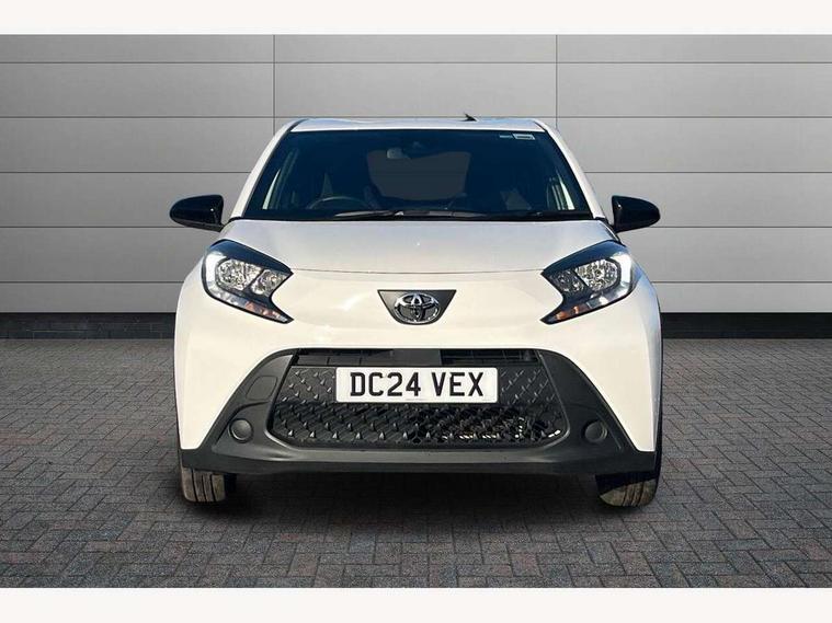 4.2" TFT colour screen, Adjustable speed limiter, Analogue speedometer, Bluetooth connectivity, Digital tachograph, Driver attention alert system, eCall emergency call system, ECO-driving indicator, Electric power steering, Intersection turn assist, Key reminder warning, Noise reduction kit, Pre collision system with emergency steering assist, Reversing camera with static guide lines, Smart phone integration with Apple car play/Android Auto, Speed limit display, Start and stop, Vehicle Stability Control (VSC), 4 speakers, 9" HD multimedia display touch screen with Toyota smart connect, DAB digital audio broadcast, USB connector, Auto headlights, Automatic headlights cut-off, Bicycle towing hook, Black lower front grille, Black rear bumper, Black side protection mouldings, Black upper front grille, Black wheel arch mouldings, Body colour door handles, Body coloured front bumper, Boot door scuff plate, Electric heated door mirrors, Follow me home headlights, Front power windows, Gloss black door mirrors, Headlight cut-off reminder, LED daytime running lights, LED front light guide, LED High mounted stop lamp, Manual day/night rear view mirror, Manual headlight levelling, Pagoda roof, Power adjustable door mirrors, Power back door, Projector halogen headlights, Rain sensor, Rear combination lights LED bulb type, Rear side wing doors, Rear windscreen defogger, Rear windscreen wiper, Short antenna, Variable intermittent windscreen wipers, 12v power outlet - front, 2 seat bench in 2nd row, 3 spoke leather steering wheel, 50/50 split folding rear seat, Adhesive roof headlining, Adjustable speed limiter switch on steering wheel, Audio and telephone switches on steering wheel, Black insert on steering wheel, Boot light, Centre room light, Chrome interior door handles, Chrome surround on air conditioning buttons, Clean air filter, Fabric upholstery, Floor mats, Front and rear cup holders, Front head rest deco art, Front head restraints, Gear shift indicator, Height adjustable driver seat, Intelligent adaptive cruise control switch on steering wheel, ISOFIX child restraint system on rear seats, Lane departure alert switch on steering wheel, Leather gearshift knob, Light grey roof lining, Manual air conditioning, Manual tilt steering wheel, Manually reclining and sliding driver seat, Manually reclining and sliding front passenger seat, Multimedia switches on steering wheel, Pollen filter, Rear door pockets, Rear head restraints, Resin console box storage, Satin silver insert on gear shift knob, Silver stitching on gear shift knob, Single compartment glovebox with lights, Single front passenger seat, Soft tonneau cover, Sun visors with mirror on driver and passenger side, Voice recognition switch on steering wheel, Toyota safety sense pack - Aygo X, Anti lock braking system + Electronic brake force distribution, Child safety door lock, Emergency brake light signal (EBS), Hill start assist control (HAC), Passenger airbag on/off switch, Seat belt reminder for front and rear seats, Supplement restraints system (SRS) - 6 airbags, Traction control, Tyre pressure warning system, Immobiliser, Remote power door locks, Black air vent surround, Black wheel centre caps, Tyre repair kit,