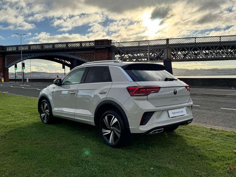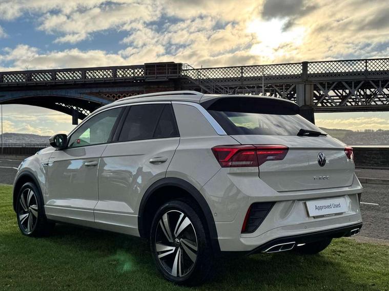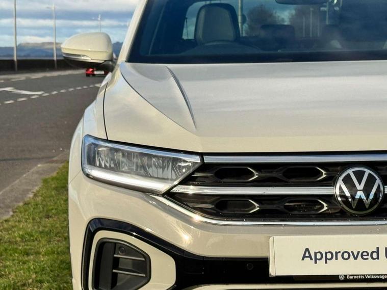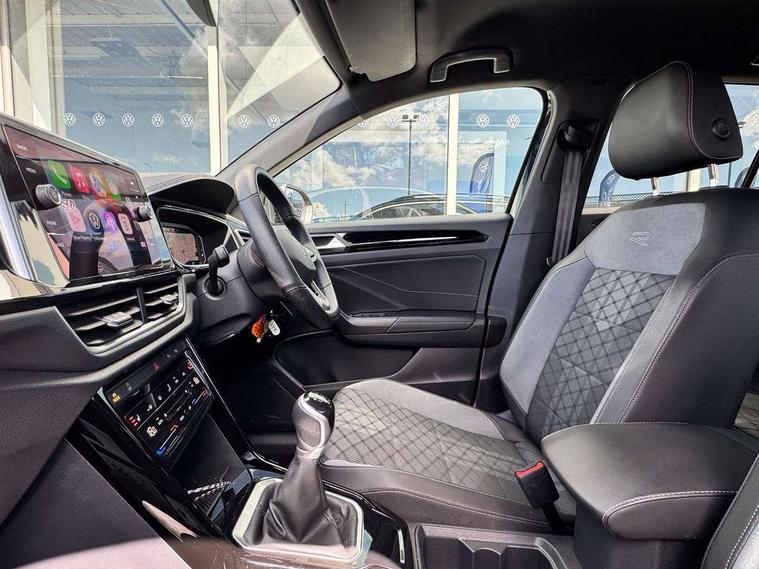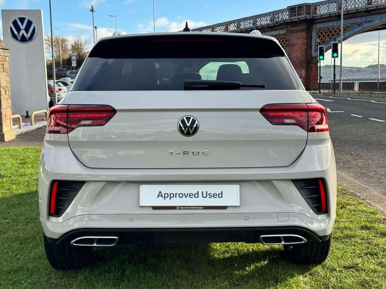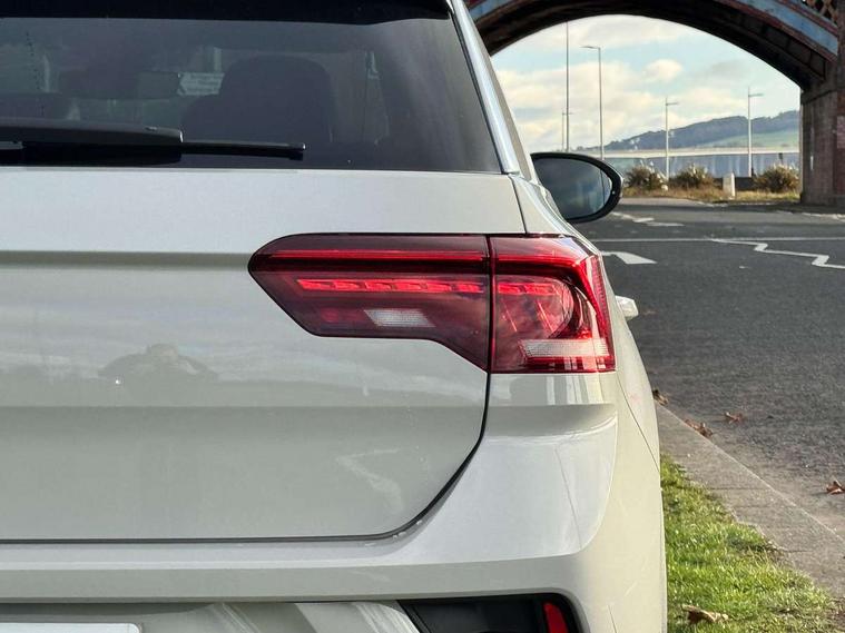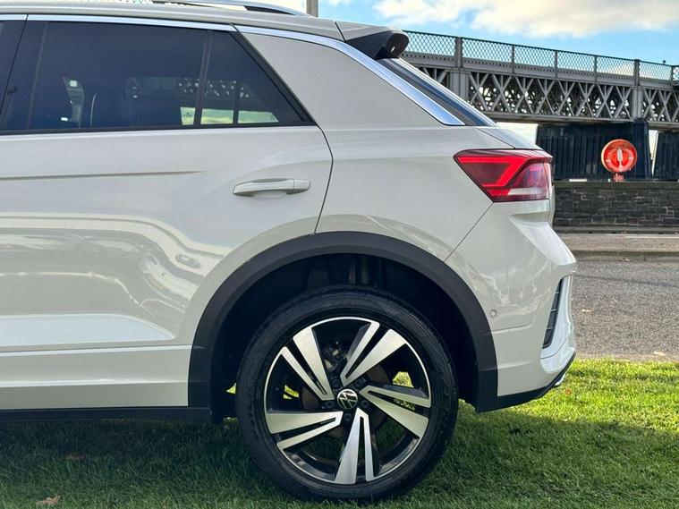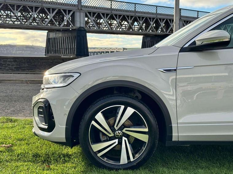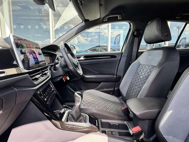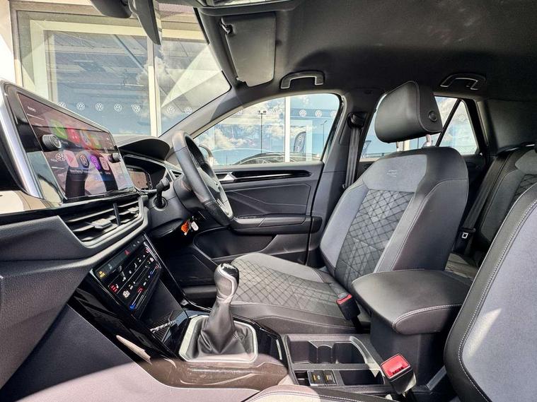 10.25" Digital cockpit pro, Bluetooth mobile phone interface, Driver alert system with fatigue detection, Driver tips and journey analysis, Emergency call service, Lane keeping system Lane Assist, Modified key software - reduce switch off time for key status change to Long no motion, Online services, Park assist including front and rear parking sensors, Service interval indicator, Tailgate/trunk lid release from outside, Think blue trainer driver tips and journey analysis, Warning sound and light for front seatbelts unfastened, Wireless app connect, Battery regeneration during braking, Start/stop function with battery regeneration, Diversity antenna for FM reception, Music playback - MP3, WMA and AAC files, Premium USB cable in choice of either Apple or Android smartphone compatibility, SD card slot, Simultaneous pairing of 2 compatible mobile devices, Title and cover art display, We Connect and We Connect Plus functionality, 3rd brake light, Auto dimming interior rear view mirror, Automatic hazard lights activation under emergency braking, Automatic headlight control with LED separate daytime running lights with coming/leaving home function, Extended roof spoiler, Exterior mirrors aspherical on driver side, convex on front passenger side, External USB type C socket and charging sockets, Front windscreen wiper with intermittent wipe and 4 position delay, Heated rear window, LED rear combination lamps, LED rear number plate lights, LED tail lamp rear comination lamps, Power windows with comfort operation and circuit breaker, R-Line design body coloured bumpers, Rain sensor, Rear exhaust tailpipe, Rear fog light on one side and reversing lights on both sides, Rear side wing doors, Rear wash/wipe with intermittent wipe setting, Remote electrically foldable door mirrors, puddle lights and reverse activated passenger's door mirror, 12V power socket in centre console, 3 rear head restraints, 3 seat bench in 2nd row, 4 load lashing points in luggage compartment, Air care climatronic air conditoning system with active combination filter and 2-zone temperature control, Black roof lining, Chrome plated radiator grille inserts, air vent surrounds and light switch surrounds, Door and side trim panel with leatherette insert, Drawer under drivers seat, Front + rear carpet mats, Front centre armrest, Front cupholders x 2, Front footwell illumination, Front reading light, Front scuff plates with R logo, Instrument lighting, white adjustable panel illumination, Interior ambient lighting and surround lighting, Interior light delay, Isofix child seat preparation, Leather gearshift handle, Load-through provision with cup holder when folded down ('Unsplit rear seat bench, split folding backrest, with centre armrest), Luggage compartment lighting, Single front passenger seat, Stainless steel pedals, Storage compartment in left and right luggage area, Storage compartment in rear doors, Storage compartments in driver and front passenger doors, Sunvisors with illuminated vanity mirrors, Variable boot floor, height adjustable and removable, Driver assistance pack without proactive passenger protection - T-Roc, 3 point height adj front seatbelts + pretensioners, 3 point seatbelts in outer rear with ECE label, ABS, Child locks on rear doors, Driver and front passenger airbag with front passenger airbag deactivation, Driver and front passenger safety-optimised head restraints, Drivers seatbelt reminder, Electronic parking brake, Electronic Stability Control (ESC) inc EDL (Electronic Differential Lock) and ASR (Traction Control), Front and rear passengers curtain airbag system including front side airbags, Front assist with city emergency braking and pedestrian monitoring, Front seat side impact airbags, Hill start assist, Predictive pedestrian protection, Rear disc brakes, Single tone horn, Tyre pressure loss indicator, Volkswagen roadside assistance, Anti-theft alarm system with interior monitoring, backup horn, and towing protection, Remote central locking with SAFELOCK, radio remote control with 2 remote control folding keys, Trims for alloy wheels,