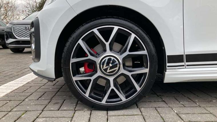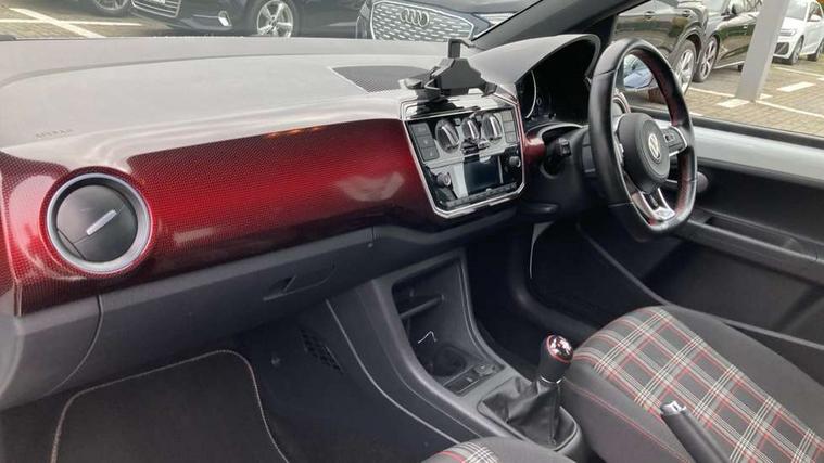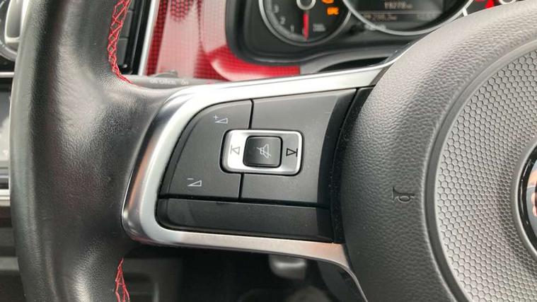 Digital clock, E-call, Lane assist, Multifunction computer, One touch indicators, Rev counter, Speed sensitive power steering, Speedometer, electronic odometer and fuel gauge, Body lowered sports suspension, Galvanished body, Start/stop function with battery regeneration, Composition colour system with 5" screen, DAB, AUX in socket, SD card, MP3/WMA/AAC, 4 X 20W, bluetooth, audio connection and USB connectivity, Smartphone answering button on multifunction steering wheel with audio over the vehicle speaker system, Smartphone interface navigation system, Antenna, Black decals above door sill, Black radiator grille, Body colour door handles, Body coloured bumpers, Chrome trimmed surround on light, Door sill protectors in stainless steel with black honeycomb pattern inset and GTI logo, Electric front windows, GTI badge, Halogen clear headlights with integrated indicators and range adjustable, Heated rear window, High level 3rd brake light, LED rear number plate lights, Left side chrome exhaust tailpipe, Manually dimming rear view mirror, Rear fog lights, Rear side wing doors, Rear tailgate spoiler in gloss black, Rear tinted glass from B pillar backwards, approx 65% tinted, Rear wash/wipe, Red Stripe on lower tailgate, Red stripe with chrome detailing on lower radiator grille, Unique GTI badging on front wings, rear tailgate and front radiator grille, Windscreen wipers intermittent wipe, 12V accessory power point in centre console, 2 cup holders in the front and rear centre console, 2 separate seats in 2nd row, Ambient lighting red below upper dashpad, Black roof lining, Cooled glovebox, Driver seat height adjust, Drivers and front passengers easy entry sliding seat with memory function, Drivers and front passengers sun visors with vanity mirrors, Folding front seat backrest release on front passenger seat, Front and rear carpet mats with contrast stitching in red and grey, Front head restraints, Front sports seats, GTI logo and red contrast stitching on steering wheel, Heating/ventilation unit with 4 speed fan, Height adjustable rear seat head restraints with red contrast stitching (x2), Height adjustable steering wheel, Interior light delay, Isofix Preparation 2 Rear child seats, Jacara red cloth upholstery, Jack and tool kit, Luggage compartment cover, Luggage compartment lighting, Multifunction leather trimmed three-spoke steering wheel, gear knob and handbrake grip, Single front passenger seat, Storage compartment in front doors, Two rear seats with 60/40 split folding rear seat backrest, Variable boot floor, GTI styling pack - Up, Winter pack - Up, 3 point front seatbelts with pre-tensioners, Anti-lock braking system with EDL, EBD + TCS, Curtain airbags for front and rear passengers, Driver and front passenger airbag with front passenger airbag deactivation, Driver/front passenger side airbags, Engine drag torque control, Front disc brakes, High tone horn, Hill hold control, Hydraulic Brake Assist (HBA), Manual child lock in rear doors, Rear drum brakes, Red brake calipers, Two 3 point rear seatbelts, Tyre pressure loss indicator, Volkswagen roadside assistance, Warning buzzer and light for front and rear seat belts if unfastened, Electronic engine immobiliser, Locking fuel filler cap, Remote central locking with 2 remote folding keys, Chrome surrounds to the air vents, radio controls and air conditioning, Matt chrome trim on interior door handles, infotainment system + instrument cluster, Red pixels dash pad, 17" Oswald alloy wheels with anti theft wheel bolts, Tyre mobility system,