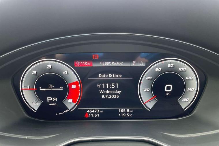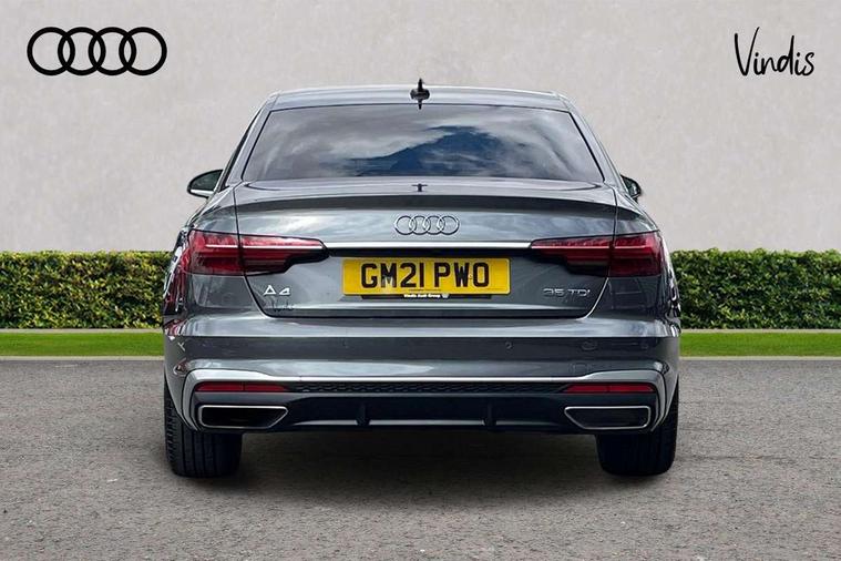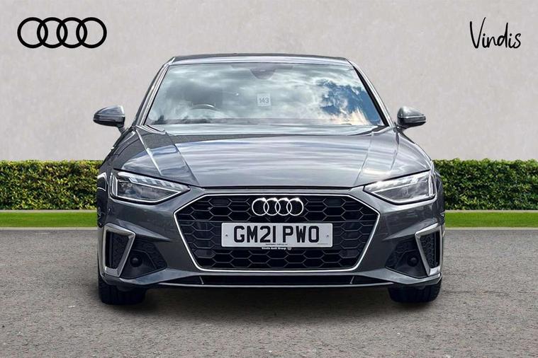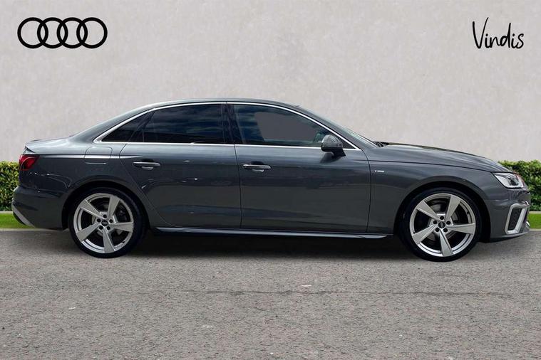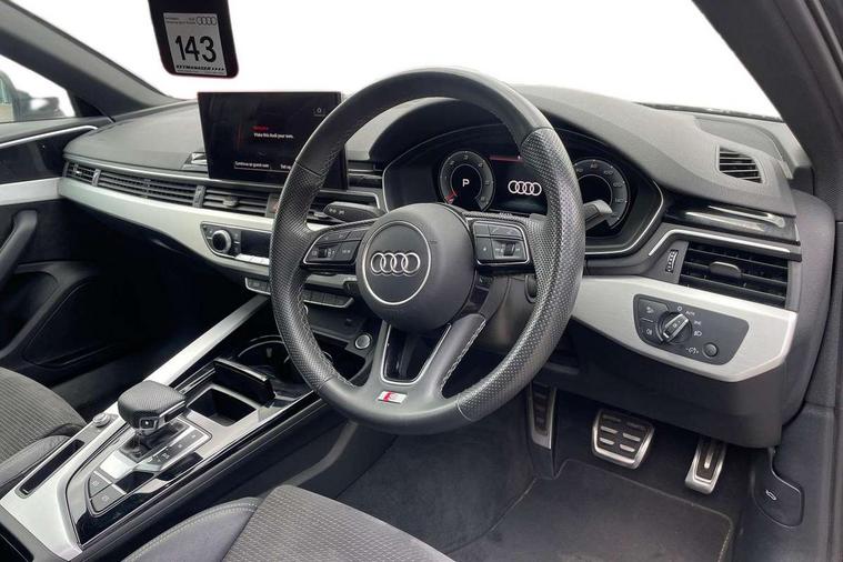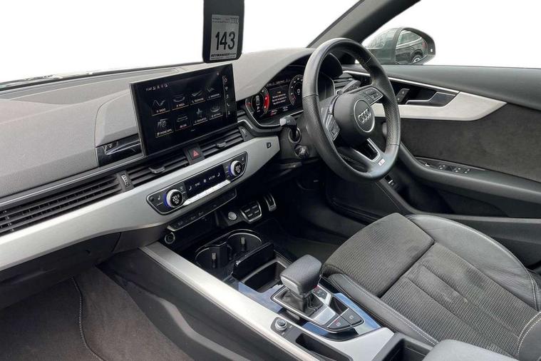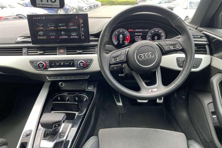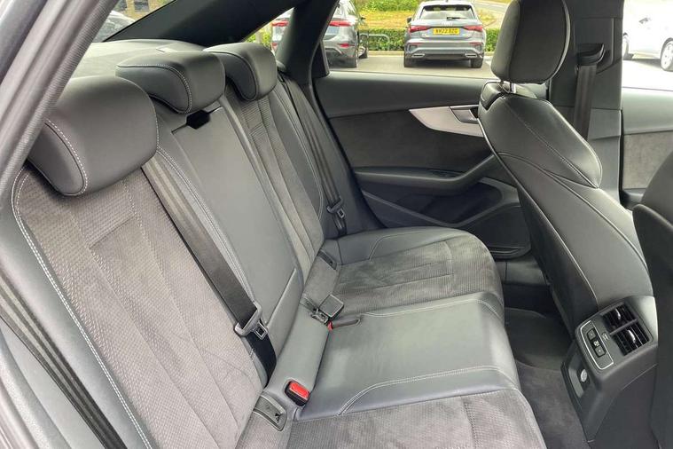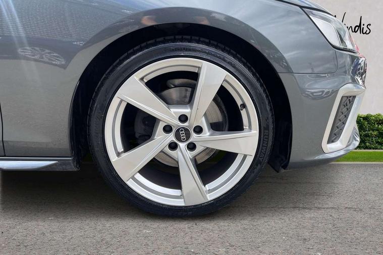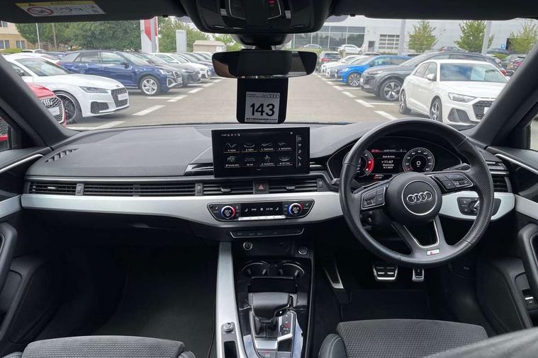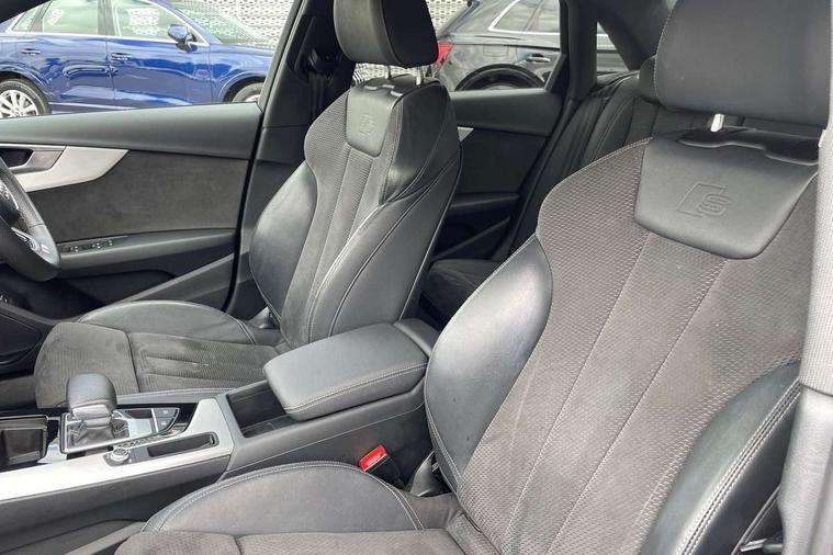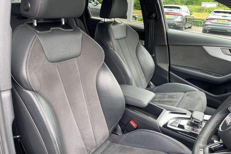 Audi connect safety and service (e-call), Audi connect with Amazon Alexa Integration, Audi drive select, Audi parking system plus with front and rear sensors, Audi smartphone interface, Audi virtual cockpit, Automatic start-stop system with coasting functionality and efficiency programme, Bluetooth interface, Electric boot lid release, Electromechanical power steering, Email, calendar and text messages displayed via MMI, MMI Navigation plus with MMI touch includes 10.1" high resolution colour MMI display, 3D map, Rear view camera, Voice control system, Sports suspension lowered by 23mm, 2 USB charging ports, 8 passive loudspeakers, DAB digital radio reception, Auto dimming rear view mirror, Body colour door handles, Body colour front spoiler lip, Body colour side sill trim, Body coloured door mirrors, Electrically folding auto dimming/adjustable/heated door mirrors with LED side indicators and kerb view function for passenger side, Grained matt black side air inlets with matt aluminium silver inlay, High beam assistant, Honeycomb structure radiator grille in grained matt black, LED headlights with LED rear lights + dynamic rear indicators + headlight adjustment and high beam, turning light + LED daytime running lights, Matt aluminium silver tailpipe trim, Privacy glass, Rain and light sensors, S Line badges on the front wings, S line front and rear bumpers with side skirts, S Line rear diffuser in matt titanium black with trim strip in matt aluminium silver, Windscreen with acoustic glazing, 4 way electric lumbar support for driver and front passenger, 40/20/40 split folding 3 rear seat bench in 3 parts with rear centre armrest, Black cloth headlining, Black perforated leather gearknob, Contrast stitching on seats, steering wheel and gear lever gaiter, Deluxe 3 zone electronic climate control, Door sill trims with aluminium inlay, Front and rear head restraints, Front centre armrest, Heated front seats, Illuminated door sill trims with S logo, ISOFIX child seat mounting and top tether, Manual seat adjustment, Stainless steel pedals and foot rest, Tool kit, High gloss package - A4, LED Interior light pack - A4/S4, 3 rear seatbelts, 6 airbags - Driver, front passenger, curtain and side windows, Electronic Stabilisation Control (ESC) including ABS, ASR and EDL, Hill hold assist, Multi collision brake assist, Pop-up bonnet for pedestrian protection, Pre sense city, Seatbelt monitoring, Warning triangle and first aid kit, Anti theft alarm, Anti theft wheel bolts, Keyless Go, Matt brushed aluminium inlays, Tyre repair kit,