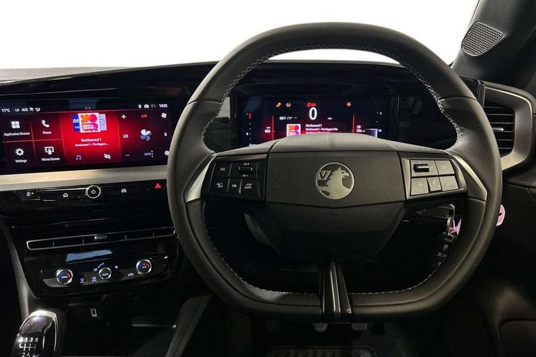10" digital instrument cluster, Cruise control with intelligent speed limiter, Digital instrumentation with digital speedometer, rev counter, fuel and water temperature gauge, Driver attention alert, Driver drowsiness alert system, Driver information display with multi function trip computer, audio info, digital clock and outside air temperature with ice warning function, Lane keep assist system (LAS) with Lane departure warning system (LDWS), Lights on audible warning, Panoramic rear view camera, Power assisted speed sensitive steering, RDS with traffic programme, Rear parking distance sensors, Speech recognition, Start/stop system, Vauxhall connect with e-Call, WiFi connectivity, Wireless phone projection with Apple CarPlay and Android Auto, Sports chassis, 2 rear USB connection, 6 speakers, AM/FM stereo radio with 36 station presets, DAB Digital radio, Front USB connection, Mobile phone portal - bluetooth connect, vehicle microphone, handsfree calls, SMS read out and reply, phone book access, Multimedia pure panel system with 10" colour touchscreen, Steering wheel mounted controls, Adaptive brake lights, Automatic lighting control with tunnel detection, Black DLO, Black door mirror housings, Black Griffin logo and vizor frame, Black lettering and emblems, Black upper window moulding, Body colour door handles, Body colour front and rear bumpers, Body colour skid plates, Dark tinted rear side windows, Electrically adjustable and heated door mirrors, Electrically operated front and rear windows with safety auto reverse and one touch up/down facility, Hazard warning lights, Heated rear window+rear wash/wipe, High gloss black front and rear bumper inserts, High gloss black painted claddings, lower grille and front lateral inserts, High gloss black painted lateral moulding, Integrated black tailgate spoiler, Intelli LED headlights, LED 3rd brake light, LED daytime running lights, LED side repeat indicators, LED tail lights, Manual headlamp level control, Rain sensitive windscreen wipers, Rear side wing doors, Reversing light, Shark fin antenna, Solar heat absorbing windscreen and windows, Windscreen and side window demist vents, 12V Accessory socket, 3 seat bench in 2nd row, 4 speed fan with illuminated controls, 6 way adjustable front passenger seat including height adjustment, 60/40 split folding rear seat, Air recirculation system, Ambient lighting, Black headliner, Cabin particulate filter - removes dust, airborne particles and pollen, Centre armrest console, Chrome effect interior door handles, Door pockets with two litre capacity, Driver and passenger sun visors with vanity mirror, Electronic climate control (ECC), Focus cloth/leather upholstery, Four adjustable facia vents, Four load restraint lashing eyes, Front centre armrest with storage, Front driver and co-driver side articulated grab handles, Front head restraints, Front map reading lights, Front seat back storage pockets, Fully carpeted load area, Interior courtesy light, Interior tailgate handle, Luggage compartment cover, Luggage compartment lighting, Reach + rake adjustable steering column, Rear Reading Lamps, Single front passenger seat, Three height adjustable rear seat head restraints, Twin gas assisted tailgate struts, 2x Isofix child seat fitting on outer rear seats, 3x3 point rear seat belts, Anti-lock braking system (ABS), Child proof locks on rear doors, Cornering brake control, Deactivation switch for front passenger front and side impact airbags, Drag torque control, Driver and front passenger airbags, front seat side impact airbags, full size curtain airbags, Electronic brake force distribution, Electronic Stability Programme (ESP), Emergency brake assist, Enhanced automatic emergency braking with pedestrian detection, Forward collision alert at low speed, Hill start assist, Inertia reel lap and diagonal seatbelts for all seats, Manual parking brake, Seatbelt unfastened audible warning and warning light, Straight line stability control, Traction control, Tyre pressure monitoring system, Electronically protected audio equipment, Engine deadlock immobiliser, Freewheeling door locks, Key left in ignition audible warning, Locking wheel nuts, Remote control central locking, Remote control ultrasonic security alarm system, Visible vehicle identification number, Light grey trim inserts on front doors, Vegan door inserts, 18" Black diamond cut alloy wheels,