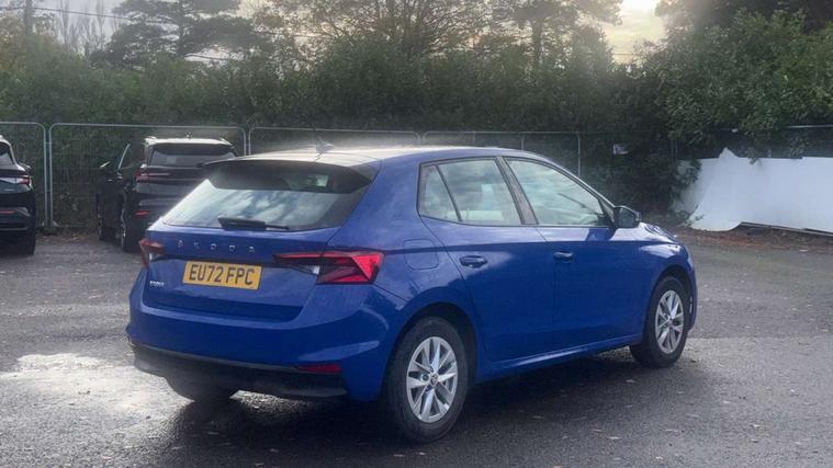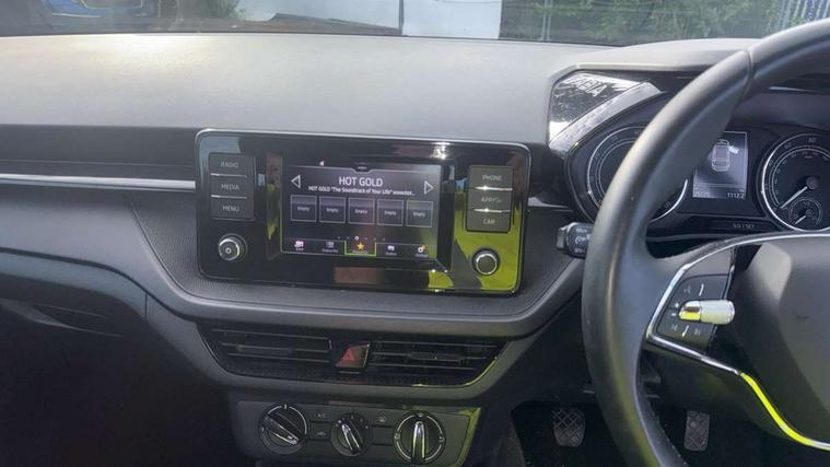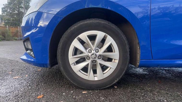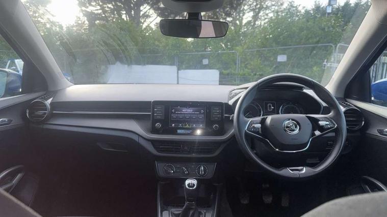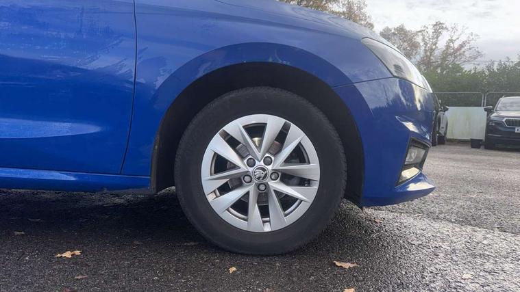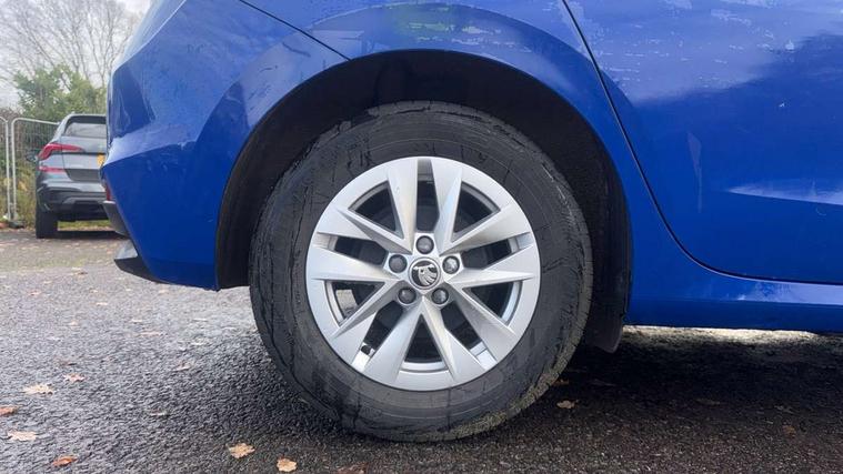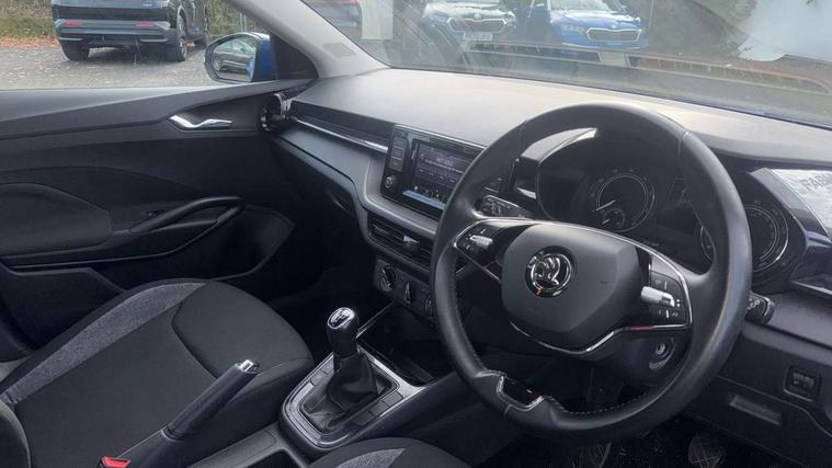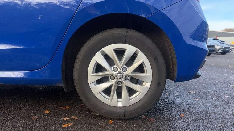 Bluetooth connection, Driver alert system - DAS, Electromechanical power steering, Exterior temperature gauge, Lane assist including road edge detection, Multifunction trip computer in black and white, Service interval indicator, SmartLink, Speed limiter, 2x USB-C in the front (for data transmission and charging), 4 speakers in front, Auxiliary socket for external MP3 player, DAB digital radio reception, Radio Swing with 6.5" colour display, Basic LED Headlights, Basic rear light, Body colour door mirrors, Body coloured bumpers, Dimming rear view mirror with black frame, Door mirror integrated indicators, Electrically adjustable and heated door mirrors, Electrically adjustable front windows with function auto up/down, Front fog lights, Front window wiper intermittent control, Headlight range control - Automatic, Ice scraper in fuel cap, LED daytime running lights with coming and leaving home feature, Mechanical adjustable rear windows, Rain sensor, Rear LED fog light, Rear side wing doors, Rear window wiper with washing nozzles, Roof mounted spoiler, SKODA tailgate lettering in chrome, Third brake light, 2 reading lights in front and 2 reading lights in rear, 2 spoke leather multifunction steering wheel, 3 rear headrests, Backrest split and folding, Central console with fixed cup holder and storage box, Chrome handbrake release button, Fabric upholstery, Gearshift knob/handle in leather, Grain satin black interior door handles, Hand brake lever handle in leather, Height adjustable front headrests, Height adjustable front seats, Height adjustable steering wheel, ISOFIX and TopTether anchorage points to the outer rear seats, ISOFIX and TopTether on the front passenger seat, Luggage compartment lighting, Manual air conditioning, Manually adjustable lumbar support in front seats, Pollen filter, Rear seat bench unsplit, Single front passenger seat, Storm grey headlining, Sun visors with mirror and airbag label on passenger side, Ticket holder, 3-point height adjustable front seats belts with pretensioner and force limiter, Automatic warning lights in case of crash, Driver and passengers airbag with switch off function, e-Call+, ESC including ABS, MSR, ASR, EDS, HBA and XDS, Front and rear seat belt warning, FRONT ASSIST (AEB City and AEB Inter Urban), Front side airbags, Head airbags, One tone horn, Pedestrian protection, Three rear 3-points safety seat belts with pretensioner and force limiter including stop function for outer rear seat belts, Tyre pressure monitoring system, Anti-theft alarm system including immobiliser, interior monitoring, backup horn, and towing protection, Central locking with radio remote control, interior controls, SAFE function and 2 foldable keys, Black painted air vents, Glossy black decorative trim, Grain satin black central console cover, Grain satin black lower decorative trim, Satin black door and side trim panel in front, Anti-theft wheel bolts protection, Super-low rolling resistance tyres,