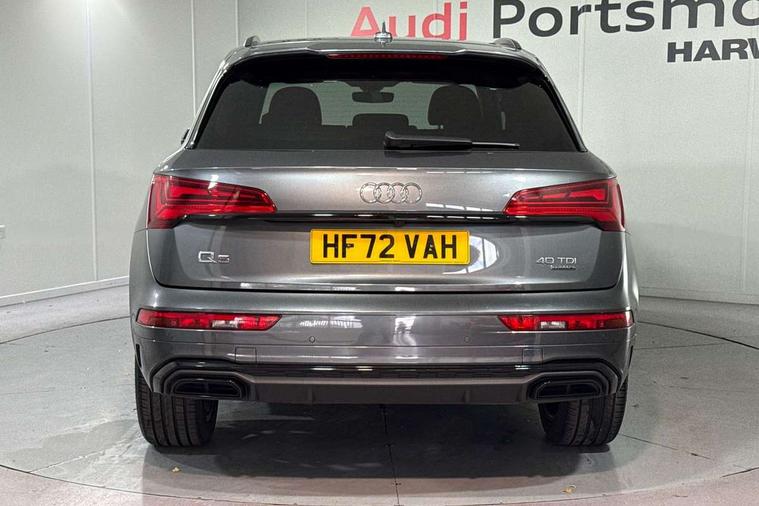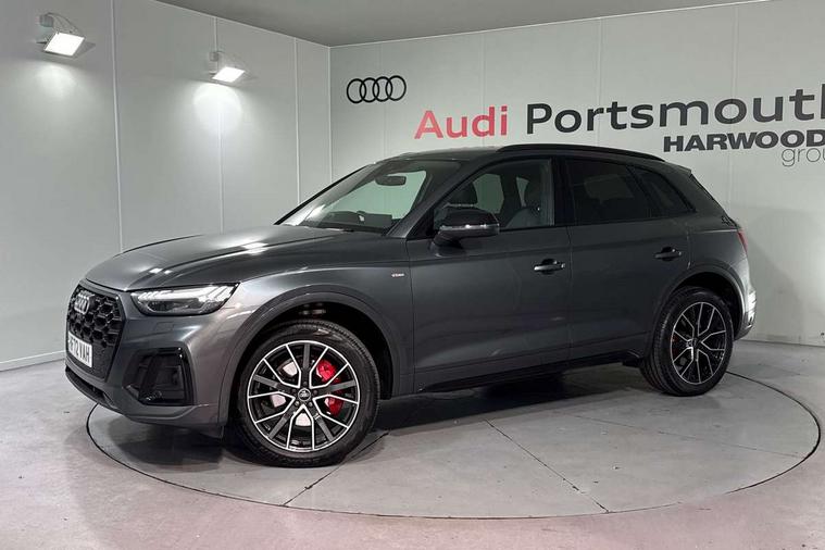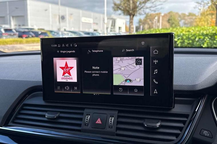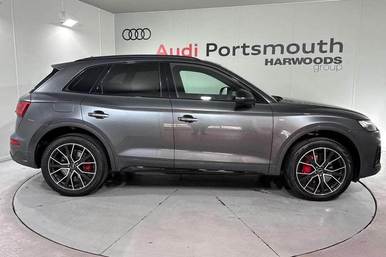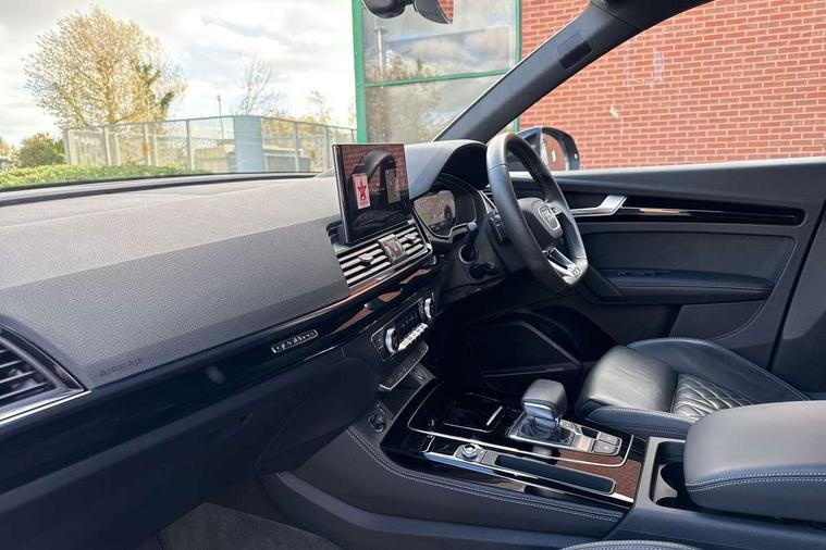 Audi connect safety and service (e-call), Audi connect with Amazon Alexa Integration, Audi drive select, Audi virtual cockpit plus with 12.3" screen and three different layout designs, Audi wireless smartphone interface, Automatic start-stop system with coasting functionality and efficiency programme, Bluetooth interface, Electro - mechanical power assisted steering, MMI navigation plus with 10.1" touch screen, Power tailgate, Reversing camera, Service interval indicator, Voice control system with Audi hotword activation "Hey Audi", Diesel particulate filter, Quattro on demand, S line sports suspension, 2 x USB charging port with aux input socket, DAB Digital radio, Acoustic windscreen, Audi matrix LED headlights with dynamic front and rear indicators, Audi rings at front and rear in black, Audi rings decal on rear doors, Auto dimming door mirrors, Auto dimming rear view mirror, Automatic headlight adjustment, Automatic headlights and windscreen wipers, Black roof rails, Body colour bumpers, Body colour underbody protection, Chrome plated exhaust trims, Daytime running lights, Door sills in Selenite silver, Electric adjustable/heated/folding door mirrors, Front air inlet surrounds in titanium black, Front and rear electric windows, Headlight washers, High gloss black B pillar trims and triangular rear door trim, High level LED brake light, Rear chrome trim strip below lights, Rear privacy glass and rear side windows, Rear side wing doors, Rear wiper, Roof bars, S Line rear spoiler, 3 rear headrests, 4 way electric lumbar support for driver and front passenger, 40:20:40 split folding 3 rear bench seat in 2nd row with rear centre armrest, Black cloth headlining, Comfort front centre armrest, Contrast stitching on seats, steering wheel and gear lever gaiter, Deluxe 3 zone electronic climate control, Electrically adjustable front seats, Fine Nappa leather upholstery with diamond pattern contrast stitching + front sport seats with S embossed logo, Front/rear floor mats, Gear lever in black leather, Heated front seats, Height adjustable front head restraints, Height/reach adjustable steering column, Illuminated door sill trims with S logo, ISOFIX child seat mounting and top tether, Luggage compartment cover, Rear seat bench plus, Removable luggage compartment floor, Single front passenger seat, Stainless steel pedals, Sunvisors with vanity mirrors, Black styling package - Q5 Edition 1, Extended interior upholstery pack - Q5, Extended LED Interior multi coloured Lighting Pack - Q5, 3 point seatbelts on all seats, 6 airbags - Driver, front passenger, curtain and side airbags, Electrically operated child locks on rear doors, Electromechanical parking brake, Electronic stabilisation control including ABS, ASR and EDL, Front and rear brake calipers painted in red, Front passenger airbag deactivation, Hill descent control, Hill hold assist, Multi collision brake assist, Pop-up bonnet for pedestrian protection, Pre sense city, Seat belt force limiter, Seatbelt monitoring, Tyre pressure warning, Warning triangle and first aid kit, Anti theft alarm, Anti-theft wheel bolts, Keyless Go access/ignition system, Remote central locking, Piano black finish inlay,