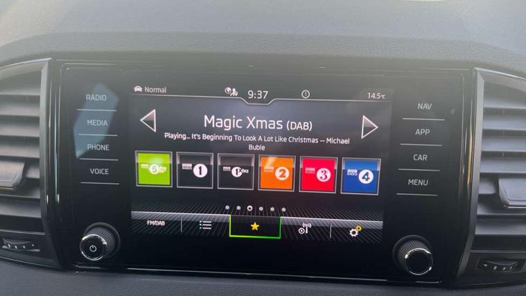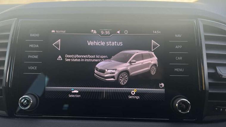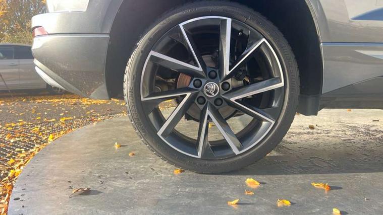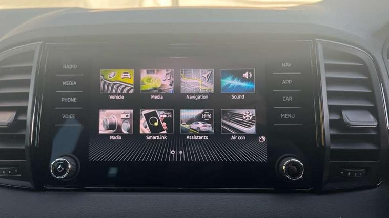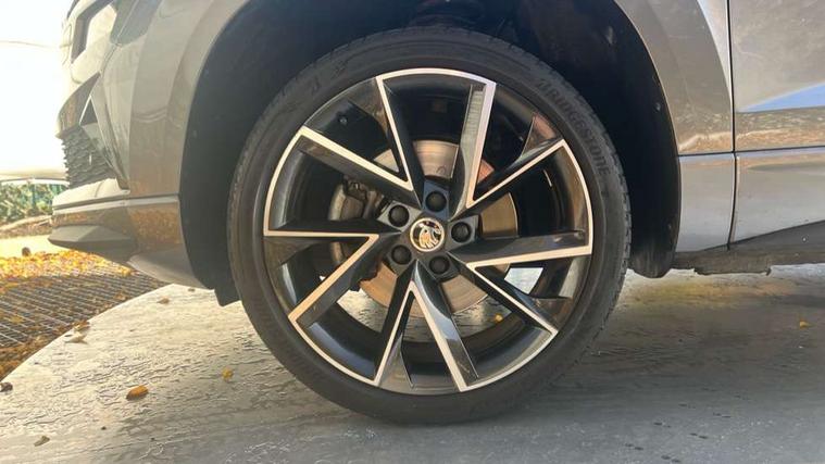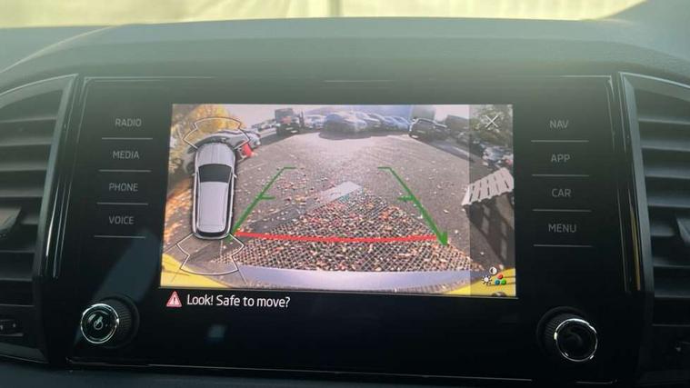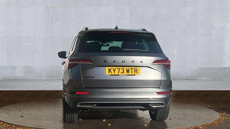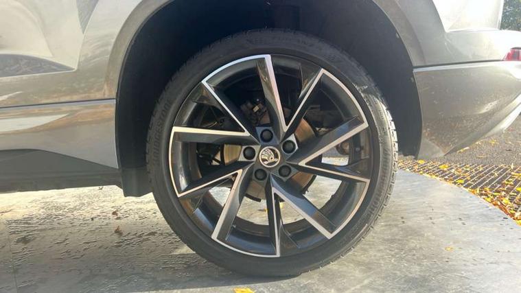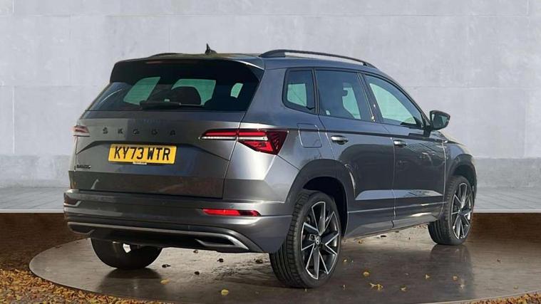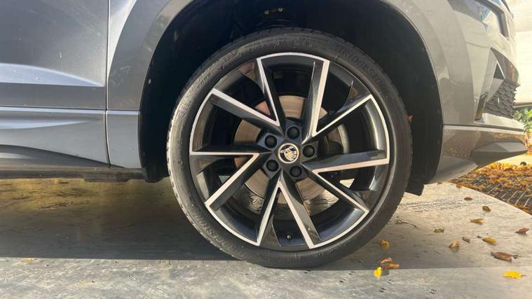 8" Digital display, Care connect, Driver fatigue sensor, Emergency services call system, Outside temperature gauge, Service interval indicator, SmartLink wireless for Apple and wired for Android, Start/stop system with regenerative braking, USB C Port x 2 in front centre console, Virtual cockpit, Virtual pedal with electrically operated boot door, 8 Speakers, DAB radio with Bluetooth, USB connection, Wireless charging without wireless aerial connection, Acoustic glass, Aero front windscreen wipers with intermittent function, Auto dimming rear view mirror with light and rain sensors, Black door mirrors, Black electric window control buttons, Black radiator grille, Black roof rails, Body colour door handles, Electric front and rear windows with child proof lock, Front door steps with SportLine logo, Heated rear windscreen, LED daytime running lights, LED rear lights with high functionality welcome effect and dynamic indicators, Light assistant (coming/leaving home/tunnel light), Panoramic sliding sunroof, Plastic scuff plates, Privacy glass, Protective door side sills in body colour, Rear diffuser, Rear side wing doors, Rear spoiler, Rear window wiper with washer system and intermittent control, Safety reflectors on front doors, Skoda lettering on tailgate in black, Sportline badge on front fender, Sportline decorative inserts with badging, Sports front and rear bumpers, 1.5 litre bottle holders in driver and front passenger door panels, 12V socket in boot, 12v socket in front centre armrest with storage compartment and rear air vents, 3 rear height adjustable headrests, 3 seat bench in 2nd row, 3 spoke leather sports multifunction steering wheel and silver stitching with gear shift paddles, 4 foldable roof handles with rear coat hooks, Black floor carpet, Black roof headlining, Chrome inner door handles, Double sided boot floor, Foldable hooks in the boot, Front head restraints, Height adjustable front three point seats belts with tensioners, Height/reach adjust steering wheel, Ice scraper, Illuminated glovebox, Illuminated luggage compartment, Isofix child seat preparation outer rear, Manual lumbar support for front seats, Pen holder, Pollen filter, Rear boot cover, Rear reading lights, Rear seats fixed folding and divided 60:40, Rubbish bin door, Safety vest holder, Single front passenger seat, Storage box in upper central dashboard closed, Sunvisors with illuminated vanity mirrors, Textile floor mats, Ticket holder, Titan black interior ceiling, Welcome animation with sportline logo, Boot pack - Karoq, Light Pack - Karoq, Parking pack - Karoq, Automatic door unlocking in case of crash, Automatic fuel cut off in case of crash, Child locks on rear doors, Driver airbag, Electronic parking brake with auto hold function, Emergency rear braking signal, ESC including ABS, MSR, ASR, EDS, HBA, DSR, RBS, MKB and traction control, Front side airbags, Hill hold control, Knee airbags, Passenger airbag with switch-off function, Pedestrian monitor, Seatbelt reminder signalisation and pretensioner for all seats, Three point seatbelts rear, Two tone horn, Tyre pressure display, Tyre pressure monitor, Alarm with interior monitoring, back up horn and tilt sensor with safe function, Electronic engine immobiliser, Keyless entry and start/stop, Remote central locking with 2 remote folding keys, Black air vent surround, Black centre console, Satin black dashboard, Satin black door trim, 19" Sagitarius anthracite alloy wheels with matt black aero inserts, Anti-theft wheel bolts protection, Matt black aero hub caps, Tool kit,