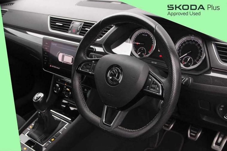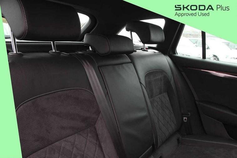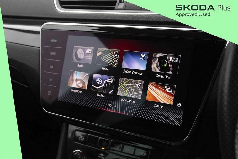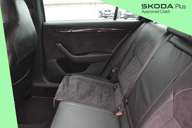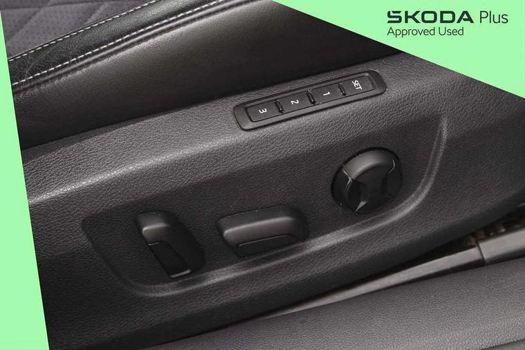 Adaptive cruise control, CareConnect and Emergency Call, Columbus colour 9.2" touch screen satellite navigation system, Radio/MP3/aux-in/USB, DVD, SD card and Wi-fi, Drive mode selector, Dynamic steering response (DSR), Electro-mechanical PAS, External temperature gauge, Fatigue detection system, Front assistant collision mitigation, Mirror link, Multifunction colour trip computer, Remote fuel cap release, Service interval indicator, SmartLink plus, Speed warning indicator, Voice control system, Diesel particulate filter, XDS electronic differential lock, DAB Digital radio, Aero wiper + intermittent function, Auto dimming rear view mirror, Bi-Xenon headlights with AFS + integrated headlight washers + LED daytime running lights, Black gloss door mirror housings, Body colour bumpers, Body colour door handles, Cornering front fog lights, Electrically adjustable/heated/folding door mirrors with puddle lights/Integrated indicators and memory function, Front and rear electric windows, Gloss black side window surrounds, Halogen headlights, Illuminated door handles, LED brake lights, Privacy glass, Rain sensor, Rear exhaust diffuser styling elements, Rear wiper, Sport front exterior styling with black grille, Twin exhaust tailpipe, 12v power point in centre console, 12V power point in luggage area, 3 rear height adjustable headrests, 3 spoke sports leather steering wheel with silver stitching, Alcantara/leather upholstery, Auxiliary heater, Black door trim, Black roof lining, Driver's electric lumbar adjustment, Electric driver's seat with memory, Footwell lights, Front and rear reading lights, Front armrest with storage box, Front passenger seat electric height adjust, Front/rear floor mats, Height/reach adjust steering wheel, Height/tilt adjustable front headrests, Illuminated air conditioned glovebox, Illuminated vanity mirrors, Isofix on 2nd row rear seats, Leather gearknob and handbrake lever, LED ambient lighting, Luggage compartment lighting, Multifunction steering wheel, Rear centre armrest with cupholders, Removable LED light in boot, Split folding rear seats, Sports seats, Sunglasses storage, Ticket holder, LED package plus - Superb, LED rear pack - superb, 3 point height adj front seatbelts + pretensioners, 3 rear 3 point seatbelts + pretensioners, ABS + EDL + ASR + MSR + ESC, Auto hold function, Cornering brake control (CBC), Curtain airbags, Door open warning, Downhill speed regulation (DSR) with switch, Driver and passenger seatbelts with warning light, Driver/Front Passenger airbags, Driver/front passenger side airbags, Drivers knee airbag, EDS, Electronic brake force distribution, Electronic parking brake, Hydraulic Brake Assist (HBA), Passenger airbag deactivate switch, Rear door child safety locks, Regenerative braking system, Tyre pressure monitor, Anti theft alarm with interior monitor and tilt sensor, Anti-theft wheel bolts, Immobiliser, Keyless entry and start, Remote central locking with SAFE system, Carbon interior trim, 19" Vega alloy wheels,