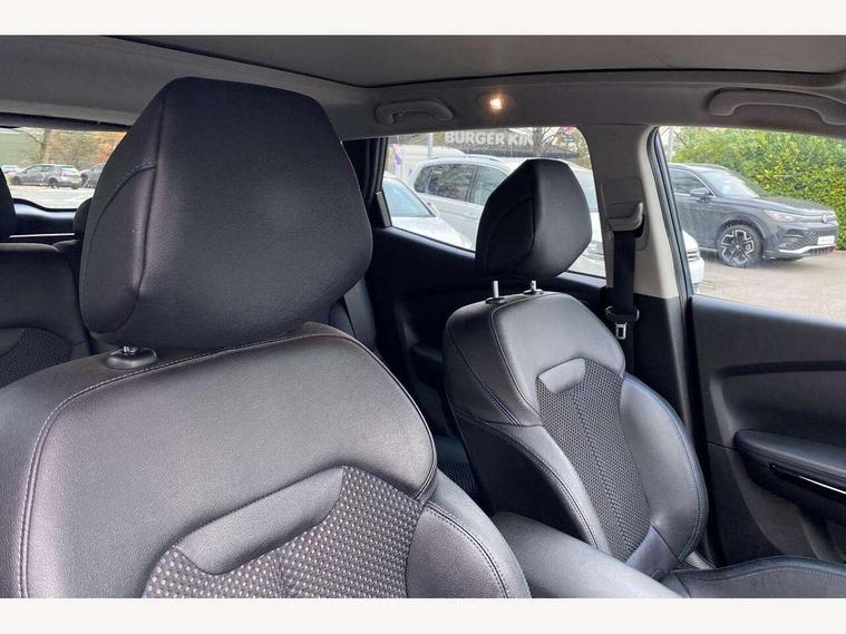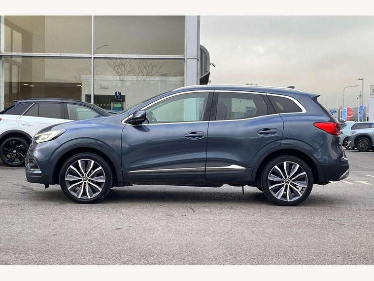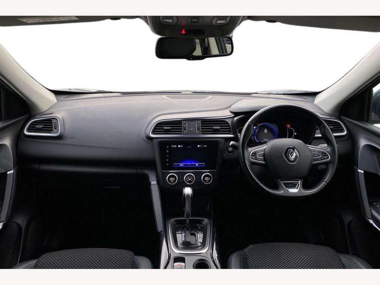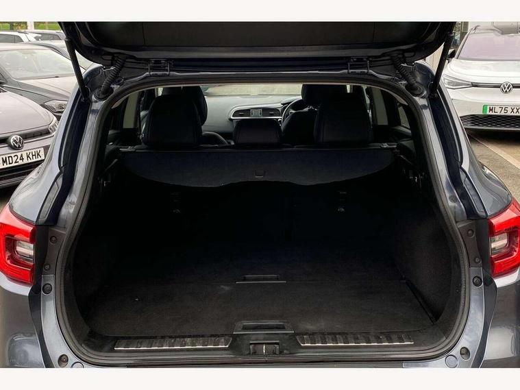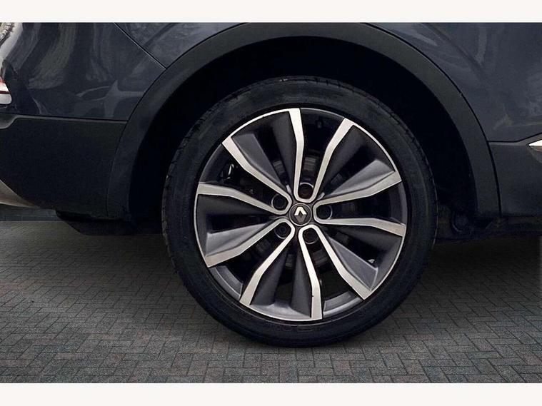 Cruise control + speed limiter, Digital speedometer with 7 TFT screen, Door/boot open warning light, Eco mode, Exterior temperature indicator, Front and rear parking sensors with rear parking camera, Gear change indicator, Lane departure warning system, Low fuel level warning light, Multi function trip computer, Oil level gauge, PAS, R-Link 2 Multimedia system + 7" touchscreen, TomTom + West European Map, DAB/FM/AM radio, bluetooth + hands free, USB/AUX, voice control, Rev counter, Smartphone integration, Diesel particulate filter, 4x35W speakers with 3D sound, Fingertip controls for audio system, Two rear USB sockets, Auto dimming rear view mirror, Automatic headlights, Automatic high/low beam, Automatic windscreen wipers with variable speed adjustment, Body colour door handles, Body coloured bumpers, Body coloured door mirrors, Bodyside mouldings with chrome inserts, Chrome fog light surround, Chrome roof rails, Chrome window surround, Electric adjustable/heated/folding door mirrors, Extra tinted glass in rear windows and tailgate, Fixed panoramic glass sunroof, Front and rear electric windows, Front and rear towing rings, Heated rear windscreen, Integrated C shape indicators with side repeaters, Integrated fuel filler cap, LED daytime running lights, LED front fog lamps with cornering function, LED high and low beam headlights with LED turn indicators, Rear wiper, Saturn grey front and rear skid plates, Shark fin antenna, Side and boot kick plates, 12v socket in front, 3 height adjustable rear headrests, 3 seat rear bench, 3D TEP fabric with synthetic leather upholstery with blue top stitching, 60/40 split folding rear seat, Accessory power point, Adjustable dashboard illumination, Air recirculation system, Centre rear armrest with cup holder, Driver sunblind with illuminated mirror and ticket holder, Driver's seat with lumbar adjustment, Driver/passenger reading lights, Dual zone automatic climate control, Easy life quick folding rear seat, Front courtesy lights, Front footwell illumination, Front/rear floor mats, Height adjustable driver's seat, Height adjustable front headrests, Height adjustable passenger seat, Height/reach adjust steering wheel, Illuminated boot, Illuminated centre console, ISOFIX child seat anchorage points attached on outer rear seats, Multi positional boot floor, Pollen filter, Rear courtesy lights, Rear passenger air vents, Sliding front centre armrest, Storage glovebox, Synthetic leather steering wheel, ABS/EBD, Driver/passenger 2 stage auto adaptive airbags, Electronic parking brake, Emergency brake assist, ESP with ASR and UCL (understeer control logical), Front and rear curtain airbags, Front lateral airbags, Front seat belts warning, Height adjustable front seatbelts with double pretensioners, Hill start assist, Passenger airbag deactivation system, Rear seatbelt warning indicator, Side impact protection, Three point rear center seatbelt, Traction control, Tyre pressure monitor, 3 Button retractable key, Anti-drill door locks/ignition barrel, Deadlocks, Insurance approved Cat 1 alarm system, Insurance Approved Immobiliser, Key card hands free with walk away lock function, RAID (Renault Anti-Intruder Device) with automatic door locking, Remote central locking, 19'' Zeus diamond cut alloy wheels,