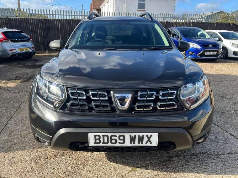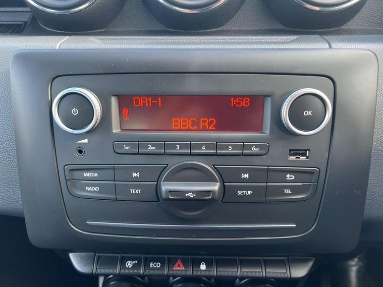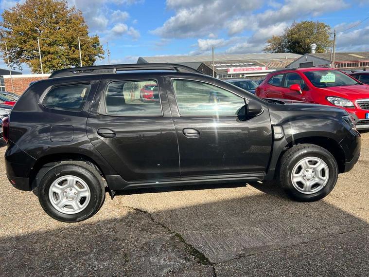 Bluetooth connectivity, Eco mode, Electric power assisted steering, On board computer, odometer, trip computer, average fuel consumption, average speed, service indicator, outside temperature gauge, Rev counter, Speed limiter, Stop/start system, 4x 20W FM/AM/DAB tuner with steering column mounted fingertip controls, Aux-in socket, USB connection for MP3 players, 3 speed windscreen wipers, Black door handles, Black door mirrors, Black longitudinal roof bars, Black side sills, Body coloured front and rear bumpers, Chrome front grille, Double optic headlights, Dusk sensor, Electric front windows, Front fog lights, Heated rear window, High level third rear brake light, LED daytime running lights, Manual rear windows, Manually adjustable door mirrors, Rear wash/wipe, Tailgate trim with satin chrome Duster inscription in black background, Tinted windows, 3 rear height adjustable headrests, 4 speed heating and ventilation with air recirculation, 60/40 split folding rear seat, Bainite cloth upholstery, Boot light, Front passenger reading light, Gear shift indicator, Height adjustable driver seat, Height adjustable front headrests, Height adjustable steering wheel, Isofix points for child seats in both outer rear seats, Manual air conditioning, Matt black front door handles, Matt black rear door handles, Rear passenger reading light, 3x3 point rear seatbelts, ABS and Emergency brake assist, ASR traction control with Electronic stability control, Child locks on rear doors, Door open warning, Driver airbag, Driver and passenger seatbelt not fastened - visual and audible warning, Front passenger airbag deactivation, Front seatbelt pretensioners, Front side airbags, Height adjustable front seatbelts, Tyre pressure monitor, Remote central locking, Thatcham approved engine immobiliser, Dark carbon central console surround, Matt black central console fascia, Satin chrome air vent surround, Satin chrome instrument dial surrounds, 16" Fidji steel wheels,