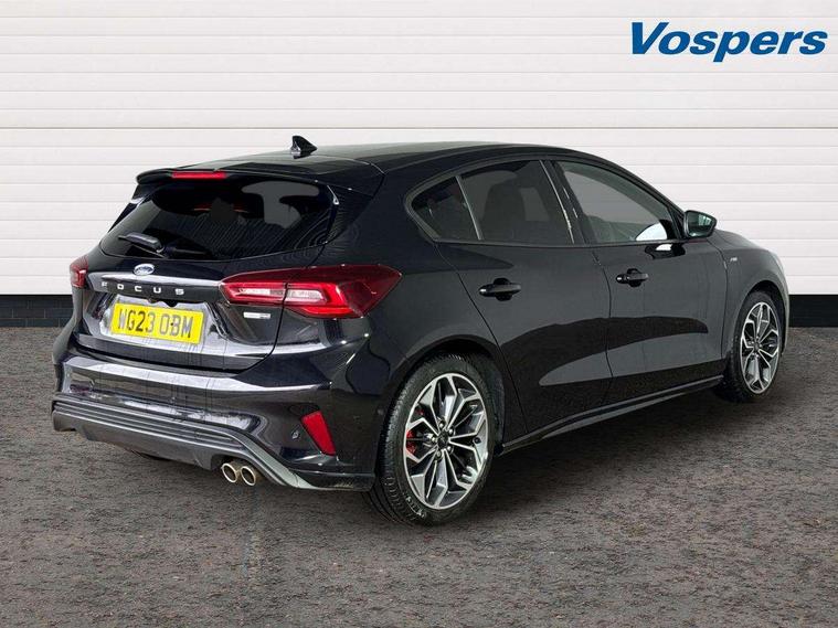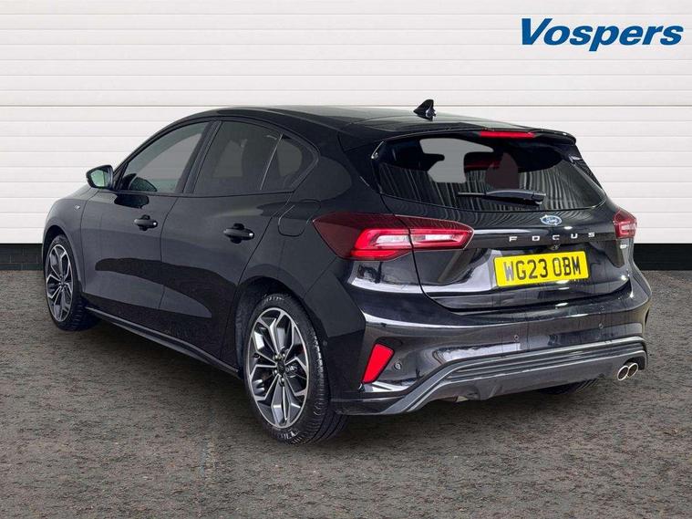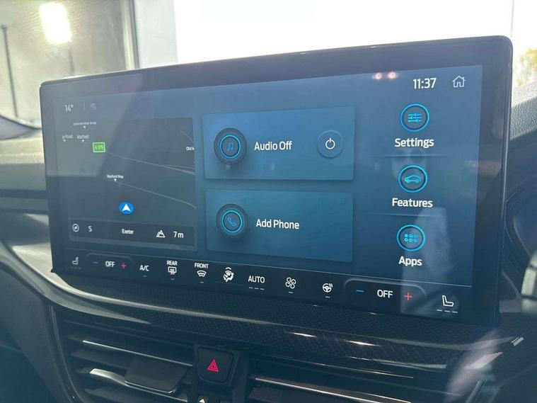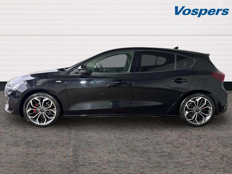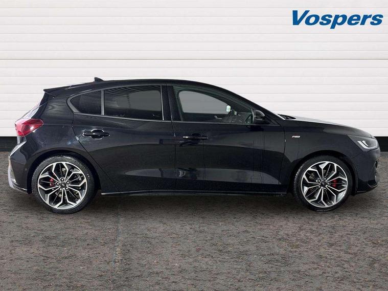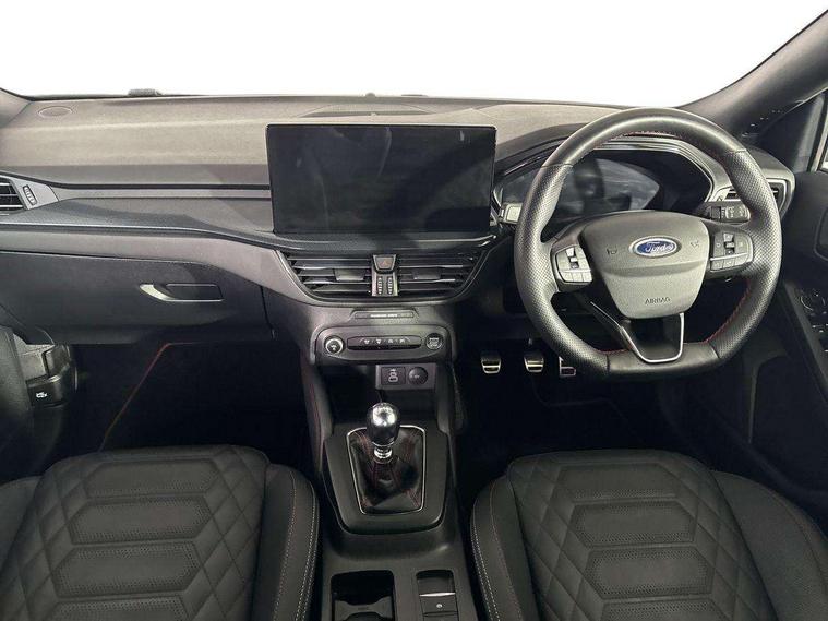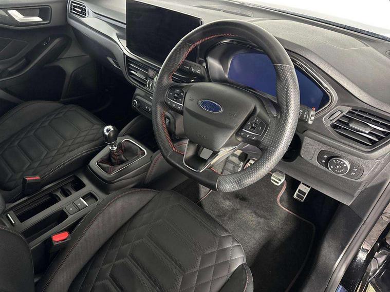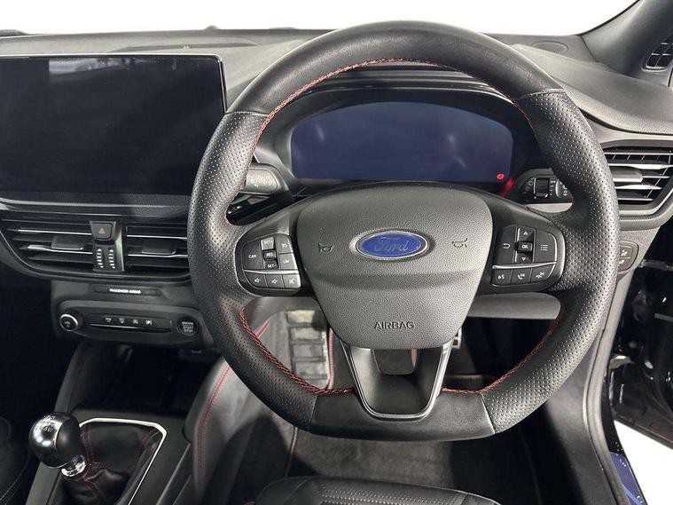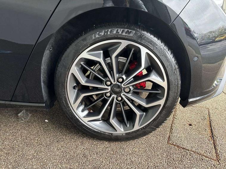 12.3" Digital instrument cluster, Bluetooth system, Digital clock, E-call, Easy fuel capless refuelling system, Eco mode, Ford SYNC 3 navigation with 8" TFT touchscreen, DAB radio and app link Android auto/Apple carplay, Intelligent speed assist, Lane keeping system - lane keeping alert and lane keeping aid, PAS, Selectable drive mode, Trip computer, Sports tuned suspension, 2 USB ports, Aux input, Auto dimming rear view mirror, Auto headlamps (on/off), Automatic rain sensing wipers, Body colour large rear spoiler, Body coloured bumpers, Body coloured door handles, Body coloured electrically operated and heated door mirrors with side indicators, Electrically operated front and rear windows with one touch opening and closing, Front variable intermittent wipers with electric wash, Heated rear window, LED daytime running lamp, Polished twin tailpipe, Power folding door mirrors with puddle lights, Quickclear heated windscreen, Rear privacy glass, Rear side wing doors, ST-Line upper and lower grille with full body styling kit and wing badges, Tailgate wash/wipe, Third brake light, Unique door and instrument panel inserts, 3 seat bench in 2nd row, 3 spoke flat bottomed Sensico steering wheel with red stitching, 6 way power adjustable driver seat, Aluminium gear knob, Dark headliner, Driver's lumbar support, Dual zone electronic air temperature control, Front and rear floor mats with red stitching, Heated driver and front passenger seats, Heating for Sensico steering wheel, Height adjustable front headrests, Isofix child seat preparation, Reach + rake adjustable steering column, Rear centre headrest, Sensico premium upholstery, Single front passenger seat, Soft console knee pads with red stitching, 3x3 point rear seatbelts, ABS+Electronic Brake force Distribution, Auto hold function, Driver airbag, Electronic parking brake, Electronic stability control, Front and rear seatbelt reminder, Front inertia reel height adjustable seatbelts with pre-tensioners, Front passenger airbag, Front side airbags, Hill start assist, Passenger airbag deactivate switch, Post collision braking, Pre collision assist with autonomous emergency braking and pedestrian/cyclist detection, Remote/power child rear door locks, Side curtain airbags, Three rear inertia reel lap/diagonal seatbelts, Tyre pressure monitoring system, Ford keyfree system with Keyless entry and keyless start/sleep mode key fob, MyKey system, Remote central locking & engine immobiliser, Thatcham category 1 alarm, 18" 5x2 spoke gloss black machined finish alloy wheels, Mini steel spare wheel,