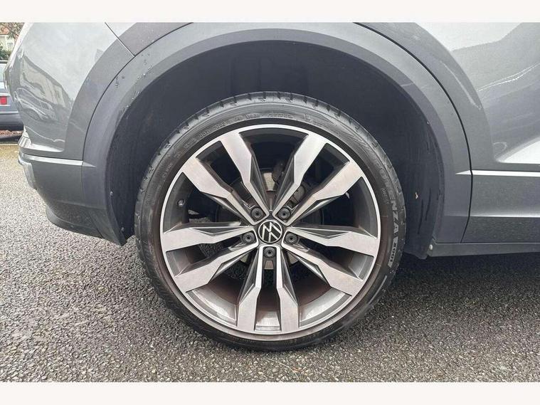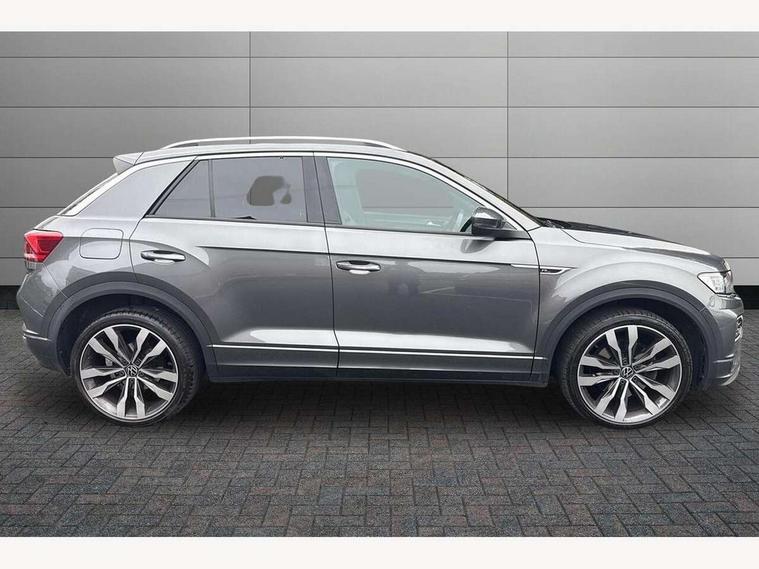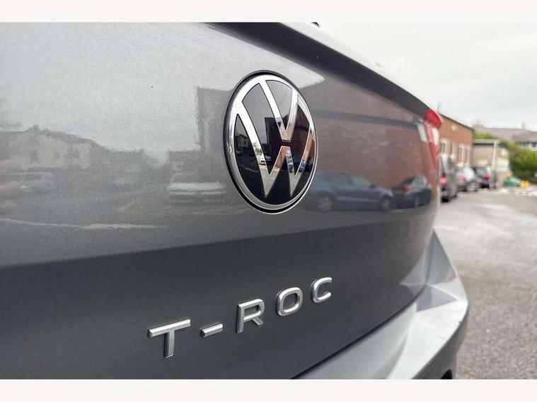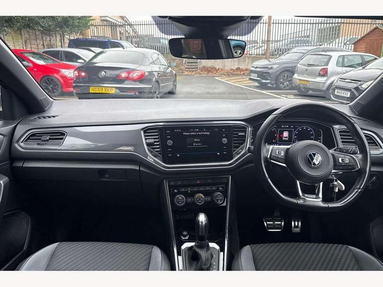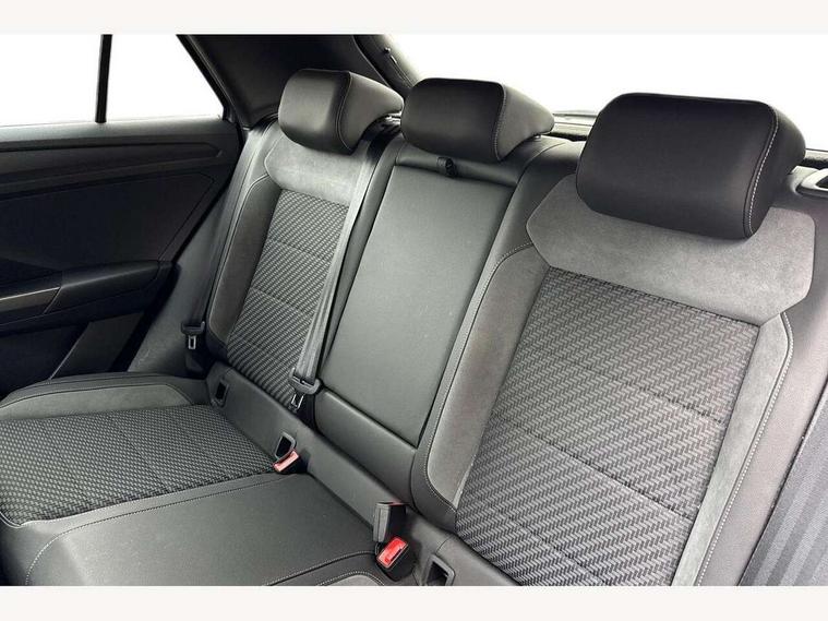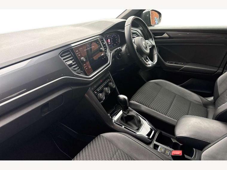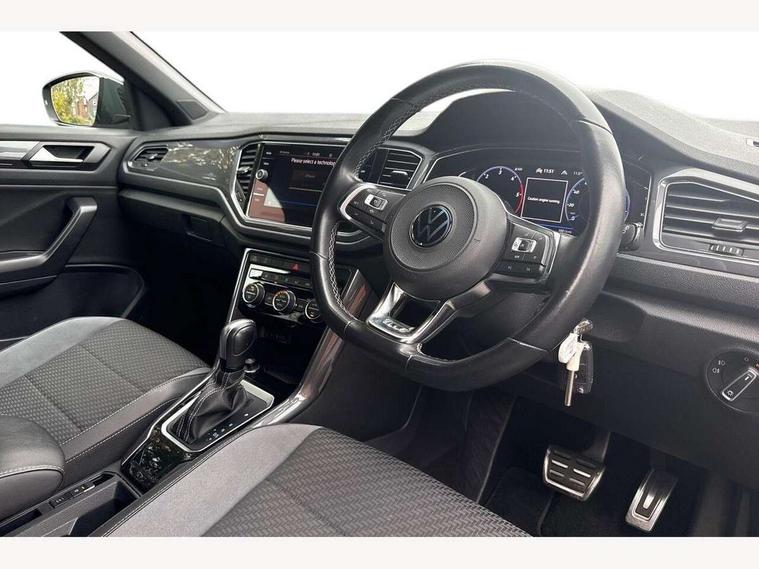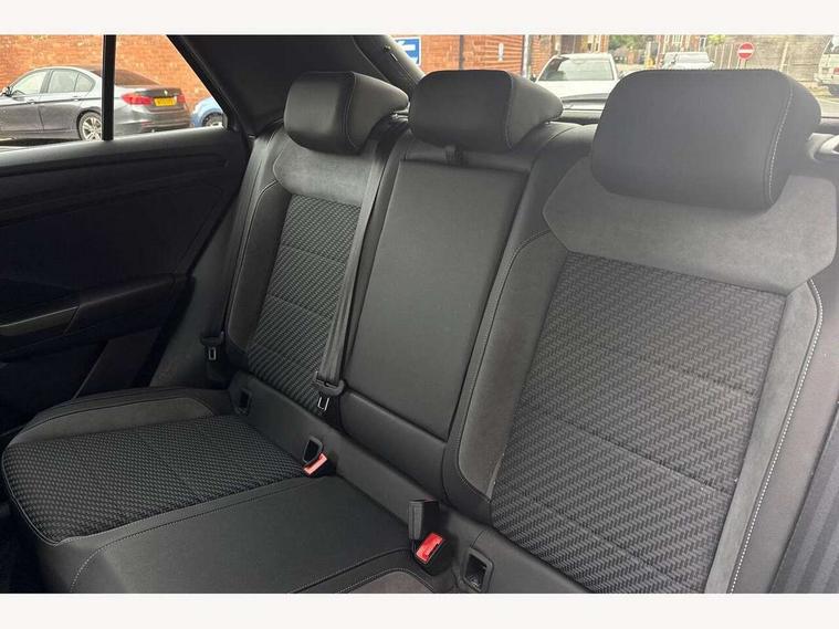'Lights On' Reminder warning buzzer, Adaptive cruise control with front assist, radar sensor controlled distance monitoring, city emergency braking, Automatic start/stop system, Bluetooth telephone and audio connection for compatible devices, Car information display, Digital Cockpit Pro - Active info display, Discover navigation including 8" touch screen display, streaming and internet, Driver alert system with audible and visual fatigue detection system, Driver tips and journey analysis, Lane assist with warning text instrument cluster, Modified key software - reduce switch off time for key status change to Long no motion, Multifunction computer with visual gear change recommendation for fuel consumption, Service interval indicator, Think blue trainer driver tips and journey analysis, Voice activation, Wireless app connect for apple carPlay, Battery regeneration during braking, Misfuel prevention device for diesel engine, Centre arm rest including USB type C interface and USB charging socket, DAB Digital radio, Diversity antenna for FM reception, Front USB type C Interface 2X and USB charging socket, Music playback - MP3, WMA and AAC files, Premium USB cable in choice of either Apple or Android smartphone compatibility, SD card slot, Simultaneous pairing of 2 compatible mobile devices, SMS functionality - read, compose and send SMS messages using touch-screen display, Storage compartment with longitudinal and height adjustable in armrest and two rear air vents, Three route options - Fast, Short, Eco, Title and cover art display, Auto dimming interior rear view mirror, Automatic hazard lights activation under emergency braking, Black grained lower door protectors, Body colour door handles, Body colour rear roof spoiler, Chrome effect left and right trapezoid exhaust tailpipe fascia surround, Chrome trim on upper and lower radiator grille, Dusk sensor, Electrically foldable, adjustable and heated door mirrors with puddle lights and reverse activated kerb-view adjustment on passenger's door mirror, Front and rear electric windows, Front fog lights with static cornering function, Front windscreen wiper with intermittent wipe and 4 position delay, Fully galvanised body, Heated rear window, High level 3rd brake light, LED darkened rear light clusters, LED dipped and main beam headlights with automatic range adjustment including signature LED daytime running lights, LED rear number plate lights, Manual coming/automatic leaving home lighting function, Rain sensor, Rear tinted glass from B-pillar backwards approx 65% tinted, Rear wash/wipe with intermittent wipe setting, Volkswagen roundel, 2 Front and rear reading lights incorporating LED technology, 3 rear head restraints, 4 load lashing points in luggage compartment, Aluminium pedals, Ambient lighting in front footwell and light strips below trim in front doors, Black roof lining and sun visors, Branded points of interest, Carbon flag cloth upholstery, Climate control - 2 zone electronic air conditioning with automatic air recirculation and allergy filter, Drawer under drivers seat, Front + rear carpet mats, Front cupholders x 2, Front seat back storage pockets, Front sports seats with R-Line logo on seat backrest, Glovebox, Height adjustable front seats, Height/reach adjust steering wheel, Illuminated vanity mirrors, Instrument lighting, white adjustable panel illumination, Interior light delay, Isofix easy fit child seat preparation for 2 outer rear seats, Load through provision with single cup holder when folded down, Luggage compartment cover, removable, Luggage compartment lighting, R Line badge, Split folding rear seat backrests with centre armrest, Storage compartment in left and right luggage area, Storage compartment in rear doors, Storage compartments in driver and front passenger doors, Three spoke multi function leather trimmed steering wheel and gear knob including paddle shift, Unique R Line door sill protectors, R line styling pack - T-Roc, Winter pack - T-Roc, 3 rear three point seatbelts, ABS, Curtain airbags, Driver and front passenger safety-optimised head restraints, Drivers and front passengers airbags with passengers deactivation switch, Drivers seatbelt reminder, Electronic parking brake with auto hold, Electronic stability control (ESC) includes ASR, EDL, EDTC and trailer stabilisation function, Front seat side impact airbags, Predictive pedestrian protection, Rigid safety cell with front and rear crumple zones, Three point height adjust front seatbelts + pretensioners, Tyre pressure loss indicator, Ventilated front and rear disc brakes, Volkswagen roadside assistance, Alarm with remote central locking and interior protection, Electronic engine immobiliser, Remote central locking with 2 remote folding keys, Shadow grey decorative inserts in dash and door panel, 19" Suzuka alloy wheels with low rolling resistance tyres and anti wheel bolts,
