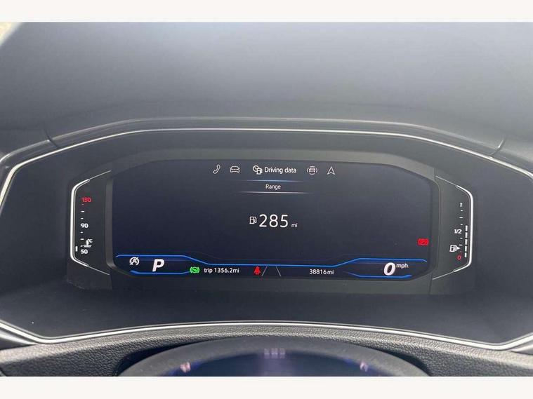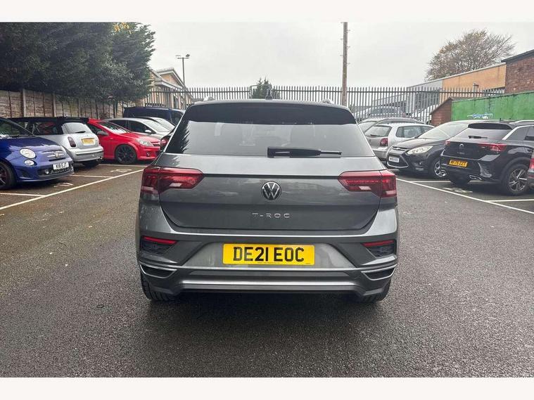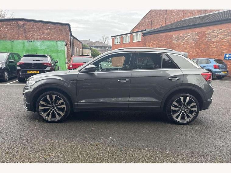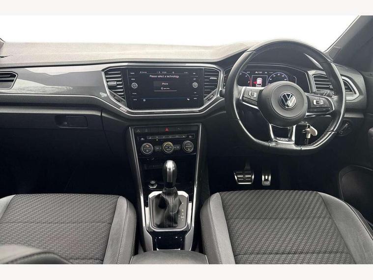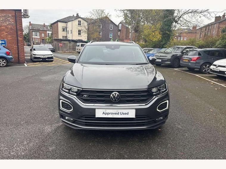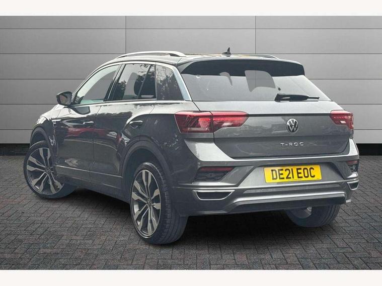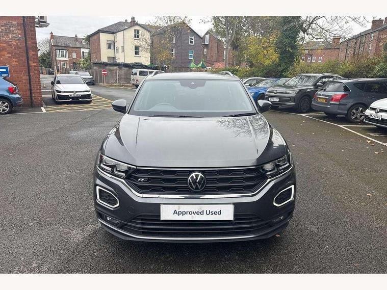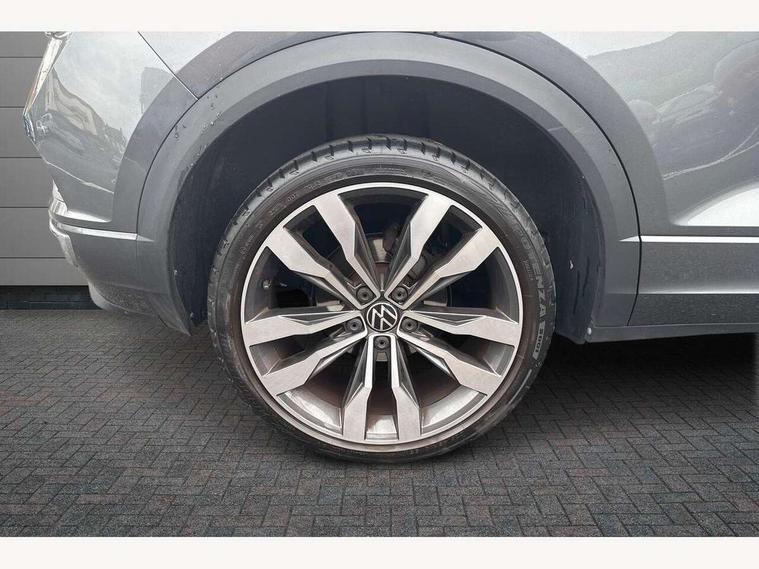 'Lights On' Reminder warning buzzer, Adaptive cruise control with front assist, radar sensor controlled distance monitoring, city emergency braking, Automatic start/stop system, Bluetooth telephone and audio connection for compatible devices, Car information display, Digital Cockpit Pro - Active info display, Discover navigation including 8" touch screen display, streaming and internet, Driver alert system with audible and visual fatigue detection system, Driver tips and journey analysis, Lane assist with warning text instrument cluster, Modified key software - reduce switch off time for key status change to Long no motion, Multifunction computer with visual gear change recommendation for fuel consumption, Service interval indicator, Think blue trainer driver tips and journey analysis, Voice activation, Wireless app connect for apple carPlay, Battery regeneration during braking, Misfuel prevention device for diesel engine, Centre arm rest including USB type C interface and USB charging socket, DAB Digital radio, Diversity antenna for FM reception, Front USB type C Interface 2X and USB charging socket, Music playback - MP3, WMA and AAC files, Premium USB cable in choice of either Apple or Android smartphone compatibility, SD card slot, Simultaneous pairing of 2 compatible mobile devices, SMS functionality - read, compose and send SMS messages using touch-screen display, Storage compartment with longitudinal and height adjustable in armrest and two rear air vents, Three route options - Fast, Short, Eco, Title and cover art display, Auto dimming interior rear view mirror, Automatic hazard lights activation under emergency braking, Black grained lower door protectors, Body colour door handles, Body colour rear roof spoiler, Chrome effect left and right trapezoid exhaust tailpipe fascia surround, Chrome trim on upper and lower radiator grille, Dusk sensor, Electrically foldable, adjustable and heated door mirrors with puddle lights and reverse activated kerb-view adjustment on passenger's door mirror, Front and rear electric windows, Front fog lights with static cornering function, Front windscreen wiper with intermittent wipe and 4 position delay, Fully galvanised body, Heated rear window, High level 3rd brake light, LED darkened rear light clusters, LED dipped and main beam headlights with automatic range adjustment including signature LED daytime running lights, LED rear number plate lights, Manual coming/automatic leaving home lighting function, Rain sensor, Rear tinted glass from B-pillar backwards approx 65% tinted, Rear wash/wipe with intermittent wipe setting, Volkswagen roundel, 2 Front and rear reading lights incorporating LED technology, 3 rear head restraints, 4 load lashing points in luggage compartment, Aluminium pedals, Ambient lighting in front footwell and light strips below trim in front doors, Black roof lining and sun visors, Branded points of interest, Carbon flag cloth upholstery, Climate control - 2 zone electronic air conditioning with automatic air recirculation and allergy filter, Drawer under drivers seat, Front + rear carpet mats, Front cupholders x 2, Front seat back storage pockets, Front sports seats with R-Line logo on seat backrest, Glovebox, Height adjustable front seats, Height/reach adjust steering wheel, Illuminated vanity mirrors, Instrument lighting, white adjustable panel illumination, Interior light delay, Isofix easy fit child seat preparation for 2 outer rear seats, Load through provision with single cup holder when folded down, Luggage compartment cover, removable, Luggage compartment lighting, R Line badge, Split folding rear seat backrests with centre armrest, Storage compartment in left and right luggage area, Storage compartment in rear doors, Storage compartments in driver and front passenger doors, Three spoke multi function leather trimmed steering wheel and gear knob including paddle shift, Unique R Line door sill protectors, R line styling pack - T-Roc, Winter pack - T-Roc, 3 rear three point seatbelts, ABS, Curtain airbags, Driver and front passenger safety-optimised head restraints, Drivers and front passengers airbags with passengers deactivation switch, Drivers seatbelt reminder, Electronic parking brake with auto hold, Electronic stability control (ESC) includes ASR, EDL, EDTC and trailer stabilisation function, Front seat side impact airbags, Predictive pedestrian protection, Rigid safety cell with front and rear crumple zones, Three point height adjust front seatbelts + pretensioners, Tyre pressure loss indicator, Ventilated front and rear disc brakes, Volkswagen roadside assistance, Alarm with remote central locking and interior protection, Electronic engine immobiliser, Remote central locking with 2 remote folding keys, Shadow grey decorative inserts in dash and door panel, 19" Suzuka alloy wheels with low rolling resistance tyres and anti wheel bolts,
