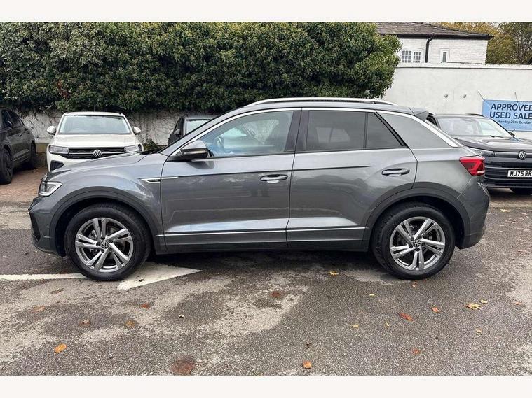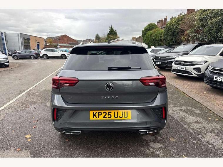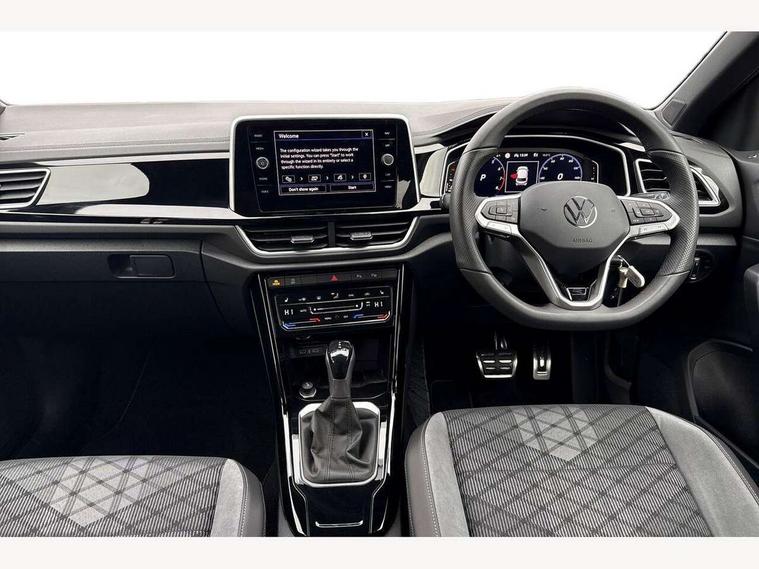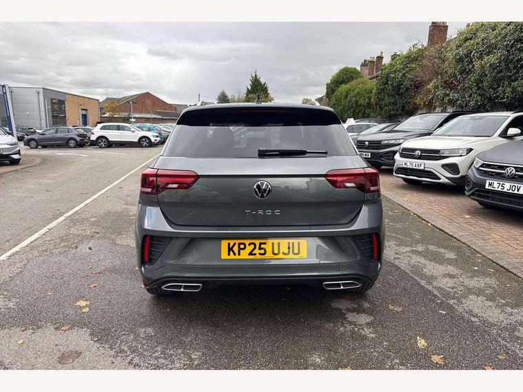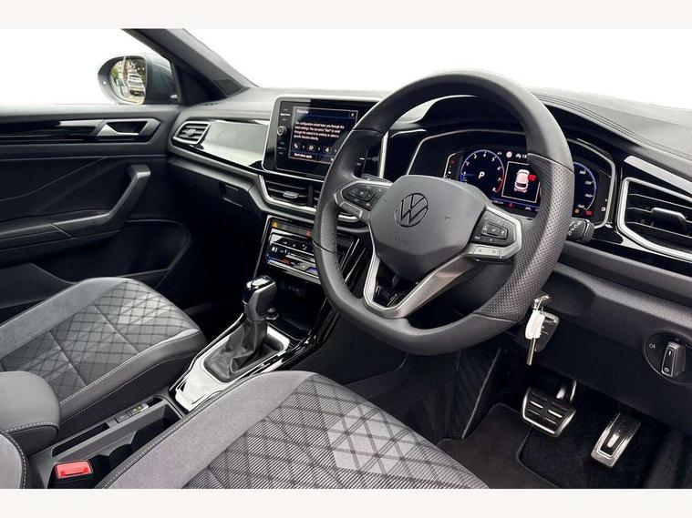 10.25" Digital cockpit pro, Advanced driver attention and drowsiness monitor, Emergency call service, Lane keeping system Lane Assist, Mobile phone interface, Modified key software - reduce switch off time for key status change to Long no motion, Online services, Park assist including front and rear parking sensors, Service interval indicator, Tailgate/trunk lid release from outside, Think blue trainer driver tips and journey analysis, Warning sound and light for front seatbelts unfastened, Wireless app connect, Battery regeneration during braking, Start/stop function with battery regeneration, DAB Digital radio, Diversity antenna for FM reception, Front and rear 6 speakers, Music playback - MP3, WMA and AAC files, Premium USB cable in choice of either Apple or Android smartphone compatibility, SD card slot, Simultaneous pairing of 2 compatible mobile devices, Title and cover art display, We Connect and We Connect Plus functionality, Auto dimming interior rear view mirror, Automatic hazard lights activation under emergency braking, Automatic headlight control with LED separate daytime running lights with coming/leaving home function, Body coloured exterior mirror housings and door handles, Electrically adjustable and heated door mirrors, Extended roof spoiler, Exterior mirrors aspherical on driver side, convex on front passenger side, External USB type C socket and charging sockets, Front windscreen wiper with intermittent wipe and 4 position delay, Heated rear window, LED 3rd brake light, LED rear combination lamps, LED rear number plate lights, Power windows with comfort operation and circuit breaker, Privacy glass for rear side windows and rear window, R-Line design body coloured bumpers, Rain sensor, Rear exhaust tailpipe, Rear fog light on one side and reversing lights on both sides, Rear side wing doors, Rear wash/wipe with intermittent wipe setting, Remote electrically foldable door mirrors, puddle lights and reverse activated passenger's door mirror, 12V power socket in centre console, 3 rear head restraints, 3 seat bench in 2nd row, 4 load lashing points in luggage compartment, Air care climatronic air conditoning system with active combination filter and 2-zone temperature control, Black roof lining, Chrome plated decorative trims, Chrome plated radiator grille inserts, air vent surrounds and light switch surrounds, Door and side trim panel with leatherette insert, Front + rear carpet mats, Front centre armrest, Front cupholders x 2, Front footwell illumination, Front reading light, Front scuff plates with R Line logo, Front seat back storage pockets, Glove compartment door with light, Instrument lighting, white adjustable panel illumination, Interior ambient lighting and surround lighting, Interior light delay, Isofix child seat preparation, Leather gearshift handle, Load-through provision with cup holder when folded down ('Unsplit rear seat bench, split folding backrest, with centre armrest), Luggage compartment lighting, Single front passenger seat, Stainless steel pedals, Storage compartment in left and right luggage area, Storage compartment in rear doors, Storage compartments in driver and front passenger doors, Sunvisors with illuminated vanity mirrors, Variable boot floor, height adjustable and removable, Driver assistance pack without proactive passenger protection - T-Roc, 3 point height adj front seatbelts + pretensioners, 3 point seatbelts in outer rear with ECE label, ABS, Child locks on rear doors, City emergency braking and pedestrian monitoring, Driver and front passenger airbag with front passenger airbag deactivation, Driver and front passenger safety-optimised head restraints, Drivers seatbelt reminder, Electronic parking brake, Electronic Stability Control (ESC) inc EDL (Electronic Differential Lock) and ASR (Traction Control), Front and rear passengers curtain airbag system including front side airbags, Hill start assist, Predictive pedestrian protection, Rear disc brakes, Two tone horn, Tyre pressure loss indicator, Volkswagen roadside assistance, Piano black decorative inserts in dashboard and front door trim panels, Trims for alloy wheels,