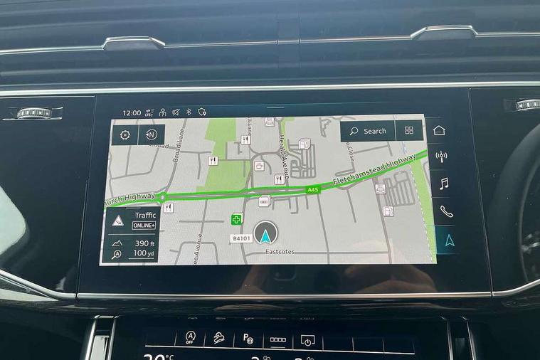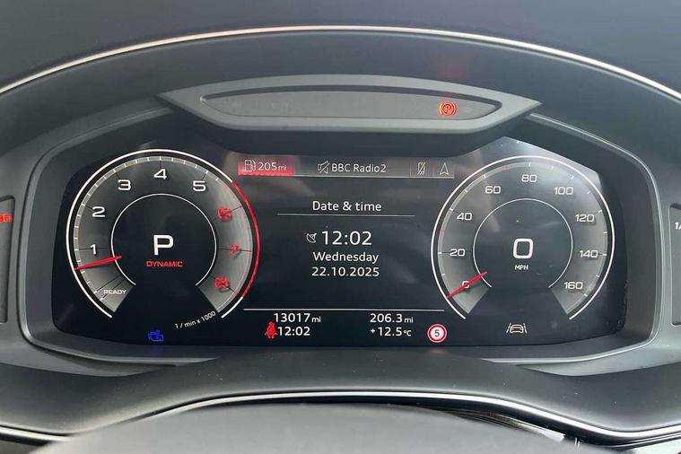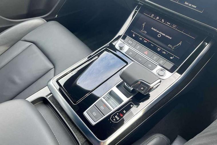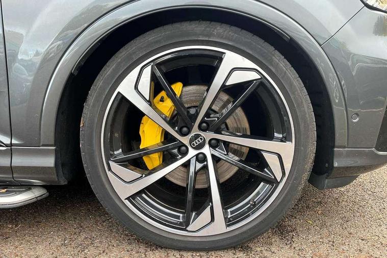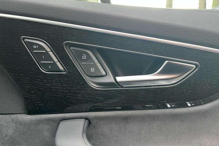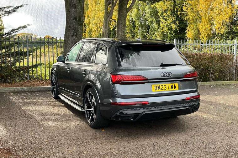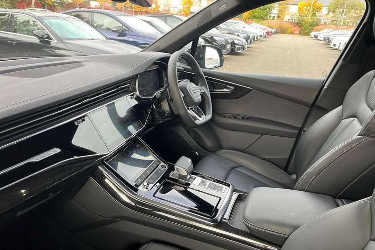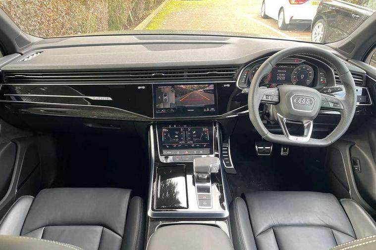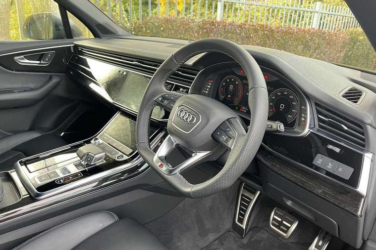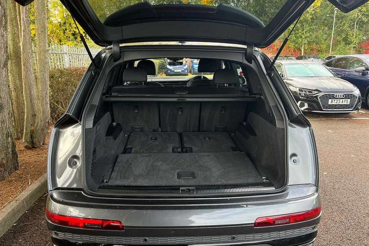 Audi connect safety and service (e-call), Audi connect with Amazon Alexa Integration, Audi drive select (Auto, Comfort, Dynamic, Efficiency, Individual, Off-road and All road), Audi phone box light with wireless charging, Audi virtual cockpit - 12.3" high-resolution LCD display with fully customisable instrument cluster, Bluetooth interface, Camera based traffic sign recognition, Electromechanical steering, MMI navigation plus with MMI touch screens includes 10.1" and 8.6" screens with haptic feedback, Natural voice recognition, Power operated tailgate, Smartphone interface includes wireless Apple carplay/Android Auto, Start/stop system, 48V Mild hybrid technology, 85 litre fuel tank, Adaptive air sports suspension, Quattro all wheel drive with self locking centre differential, Audi music interface - front 2 USB-C ports with charger and data functions, DAB digital radio module, 3rd brake light, Aluminium window trim, Audi Beam uses LEDs to project S emblem with red rhombus onto the ground when opening the side doors (front/rear), Auto dimming frameless rear view mirror, Black roof rails, Bumpers in contrast paint scandium grey finish includes door trim and wheel arch trim strips, inlays in door strip contain quattro embossing, Dark tinted Matrix LED headlights with dynamic front and rear indicators, Electrically adj heated/folding + automatically dimming exterior mirrors with memory + automatic kerb side function for passenger side exterior mirror, Heat insulating glass in windshield, Integrated LED indications in door mirrors, LED daytime running lights, LED rear tail lights, Privacy glass - dark tinted rear and rear side windows from B-pillar backwards, Rear side wing doors, Rear wiper, 2 seat bench in 3rd row, 3 seat bench in 2nd row, 7 seat layout with ISOFIX points for the front passenger seat and rear passenger seat, Black cloth headlining, Comfort front centre armrest, Electric adjustable front seat with 4 way lumbar support, driver memory functionality, Folding rear seats, Front head restraints, Front/rear floor mats, Heated front seats, Illuminated door sill trims with S logo, Luggage compartment sill protection in stainless steel, Rear head restraints, Single front passenger seat, Stainless steel pedals, Sunvisors with illuminated vanity mirrors, Black styling pack plus - Q7, Technology Pack Pro - Q7, 3 point seatbelts on all rear seats, Audi pre sense front, Child locks on rear doors, Driver and front passenger, front side and curtain airbags, Electromechanical parking brake, Electronic Stabilisation Control (ESC) including ABS, ASR and EDL, Extended pedestrian protection measures, Hill hold assist, Seatbelt monitoring, Tyre pressure loss indicator, Warning triangle and first aid kit, Anti theft alarm, Anti-theft wheel bolts and wheel loosening detection, Remote central locking, Polished oak trim with grey finish inlay, Tool kit, Tyre repair kit,