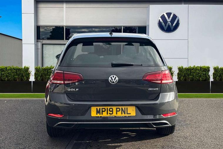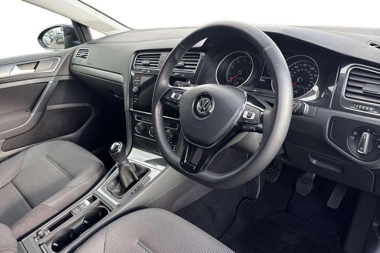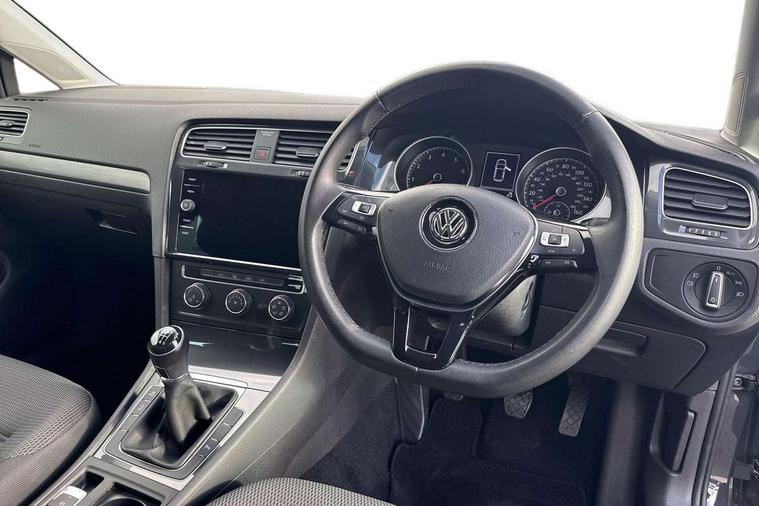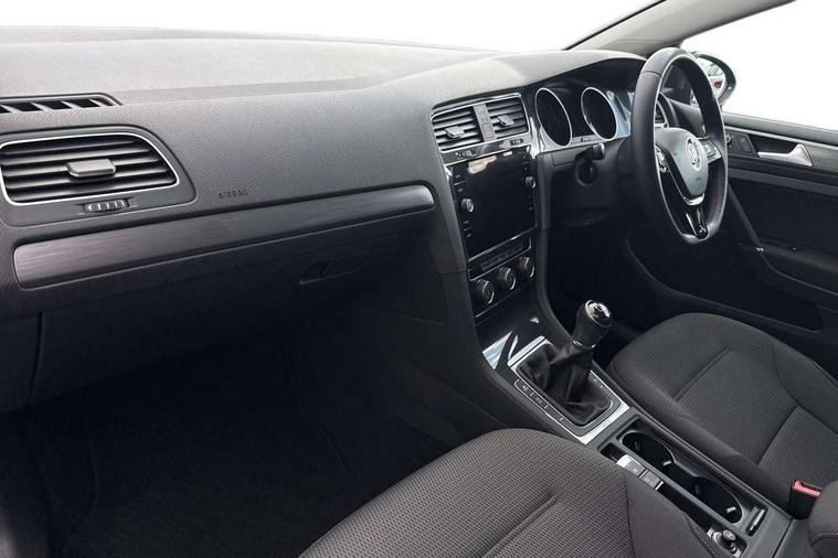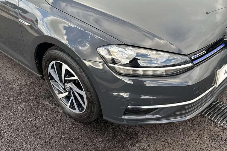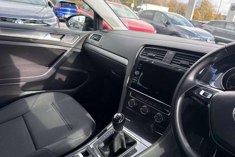 'Lights On' Reminder warning buzzer, ACC - Adaptive cruise control with front assist, forward collision warning, distance monitoring, city emergency brake and speed limiter, Bluetooth telephone and audio connection for compatible devices, Brake pad wear indicator warning light, Driver alert system, Driving Mode Selection with four preset modes - Eco, normal, sport or individual modes, Instrument cluster in white, Multifunction computer with visual gear change recommendation for fuel consumption, Power assisted speed sensitive electro-mechanical steering, Push tank flap, Speed limit display, Speedo, rev counter, electronic odometer, trip, service interval display, exterior temperature and fuel gauge, Stop/start system, Think blue trainer driver tips and journey analysis, Warning buzzer and light for front seatbelts unfastened, We Connect Go Dongle, Battery regeneration during braking, Standard suspension, XDS electronic differential lock, Composition media system, DAB Digital radio receiver, Driver Personalisation profile selection, MP3/WMA compatability, Multi device interface (MDI) with USB connection, Personalisation 1.1 profile for media, Premium USB cable in choice of either Apple or Android smartphone compatibility, SMS Functionality, Title and cover art display, 4 X 20W output, USB connection and socket, USB and SD card connectivity, Aerodynamic black radiator grille with chrome trimmed insert, Auto dimming rear view mirror, Black rear diffuser, Body colour bumpers, Body colour door handles, Body colour door mirrors with integrated indicators, Dusk sensor + automatic driving lights, Electric front windows, Electric rear windows, Electrically adjustable and heated door mirrors, Fully galvanised body, Heated rear windscreen, Hidden exhaust pipe, High level 3rd brake light incorporating LED Technology, LED front fog lights with static cornering light function, Range adjustable headlights via infotainment system with LED daytime running lights, Rear fog lamp, Rear number plate lights incorporating LED technology, Rear tinted glass 65% light absorbing from B pillar backwards, Rear window aerial, Rear window wash/wipe with intermittent wipe, Reflectors in all doors, Remote electrically foldable door mirrors, door mirror puddle lights and reverse activated kerb-view adjustment on passengers door mirror, Tailgate with integrated rear roof spoiler, Windscreen wipers/ intermittent wipe + 4 position delay, 12V socket in luggage compartment, 3 rear headrests, 4 load lashing points in luggage compartment, 60/40 split folding rear seat backrest, Auto fold down lever in rear seat backrest, Bag hook in luggage compartment x 2, Cooled glovebox, Cover for storage compartment in centre, Cupholder cover, Dust/pollen filter, Front and rear reading lights X 2, Front centre armrest with storage compartment and two rear air vents, Front seat back storage pockets, Grab handles front x 2, rear x 2 with integrated coat hooks, Height and reach adjustable steering wheel, Illuminated vanity mirrors, Instrument lighting white adjustable panel illumination, Interior light delay, Isofix preparation for 2 rear child seats, Load through provision with rear centre armrest and cupholders x2, Luggage compartment lighting, Overhead storage box, Passenger underseat drawer, Pearl grey headlining, Storage box in luggage compartment, Storage compartment in roof console with cover, Storage compartments in centre console, Storage compartments in front doors, Storage compartments in rear doors, Stowable luggage compartment cover, Sun visors, Variable boot floor, height adjustable and removable, Convenience Pack - Golf, Light and Sight pack - Golf, Mirror pack - Golf, 3 rear three point seatbelts, Airbags - Driver's and front passenger's, curtain airbag, Driver's knee, front side impact and passenger's airbag deactivation switch, Anti-lock Braking System (ABS) with Hydraulic Brake Assist (HBA), Automatic post collision braking system, Child locks on rear doors, Driver/Passenger optimised head restraints, Electronic parking brake with auto hold, Electronic stability control (ESC) including Electronic differential lock (EDL) and ASR (Traction control) with deactivation via infotainment system, Front ventilated disc brakes and rear disc brakes, Pre crash preventive occupant protection, Three point height adjustable front seatbelts with tensioners, Tyre pressure loss indicator, Alarm with interior protection and deactivation via infotainment system, Electronic engine immobiliser, Brushed dark silver decorative inserts in dash and door panels, Chrome plated air vent surround, Chrome-plated light switch surround, Polar night black decorative inserts in centre console, Steel space saver spare wheel,