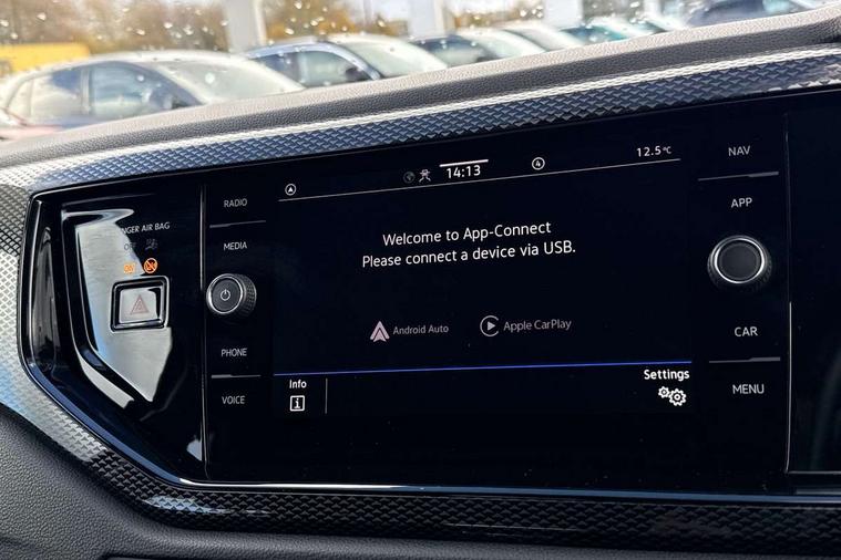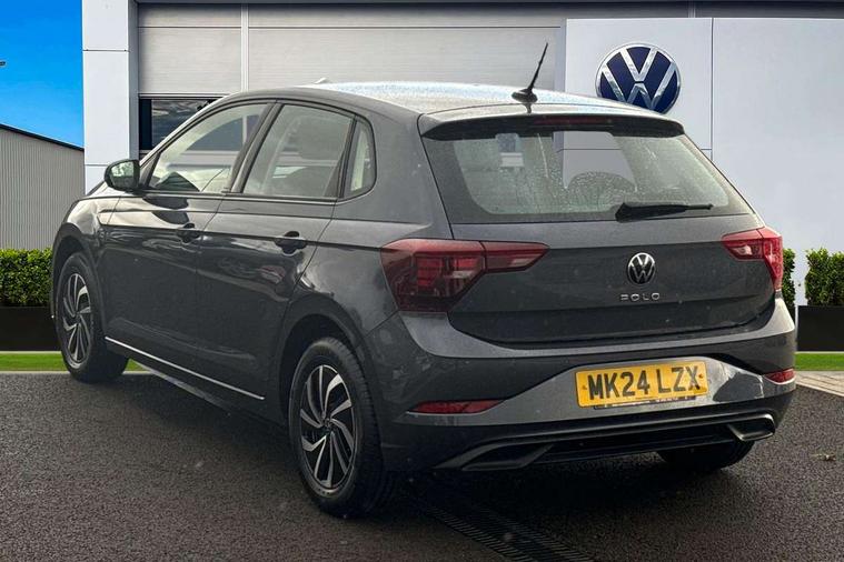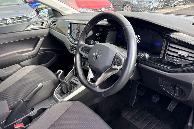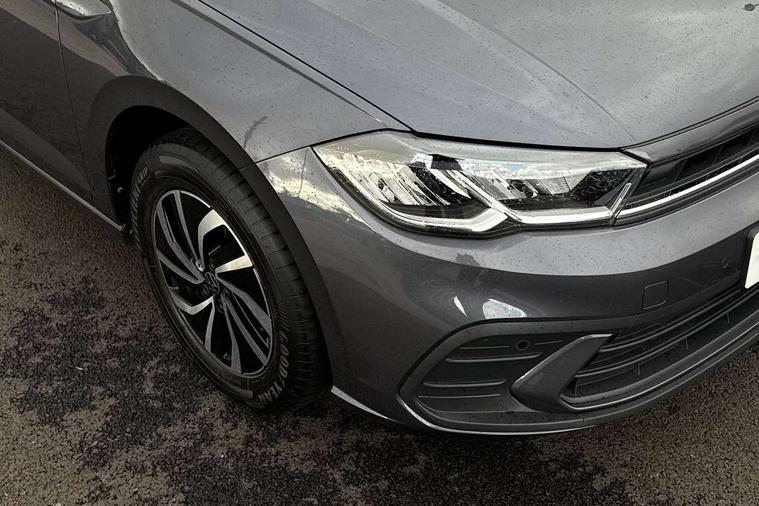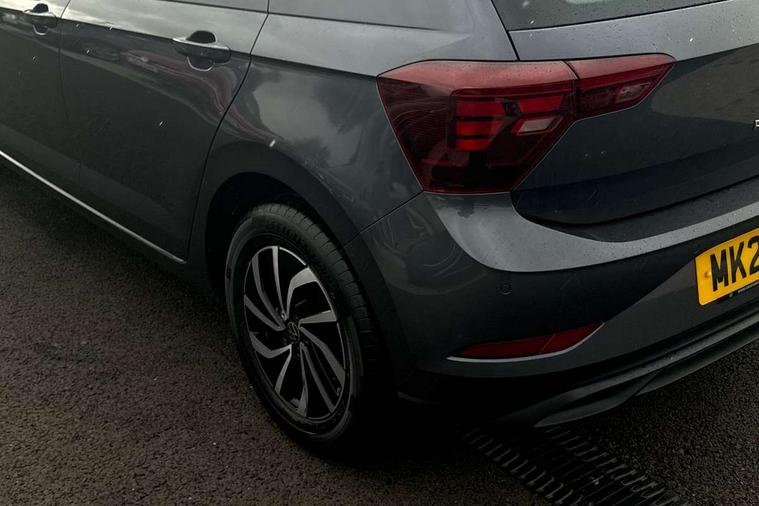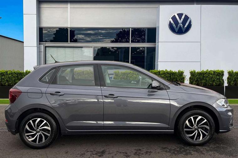 Advanced driver attention and drowsiness monitor, Bluetooth mobile phone interface, Cruise control + speed limiter, Dynamic road sign display, Emergency call service, Lane keeping system Lane Assist, Power assisted speed sensitive steering, Preparation for navigation system with media and internet package, Preparation for We connect and We connect plus, Speedo and rev counter, electronic odometer, trip, service interval display and exterior temperature gauge, Standard rear axle, Trip computer, Warning signal and warning light for front and rear seatbelts not fastened, Washer fluid level indicator, Wireless app connect, Front wheel drive, Rear shock absorpion, Start-stop system with battery regeneration (recuperation - energy recovery during braking), DAB Digital radio, Diversity antenna for FM reception, Front and rear 6 speakers, Automatic dimming interior rear view mirror, Automatic headlight control with LED separate daytime running lights with coming/leaving home function, Body colour bumpers with chrome inserts, Body colour door handles, Body colour door mirrors, Electric front windows, Engine badge deletion, Headlight range adjustment, Heat insulating and laminated safety glass windshield, Heat insulating darkened glass in side and rear windows, Heat insulating glass windscreen, LED Headlights, LED rear combination lamps, Power folding adjustable/heated exterior mirrors and front passenger exterior mirror lowering function, Rain sensor, Rear electric windows, Rear fog light, Rear side wing doors, Rear windscreen washer and wiper with interval delay, Third brake light, 12V power socket in centre console, 2 front and 2 rear reading lights with switch off delay and dimmer, 2 USB-C ports in the front, 2 USB-C charging sockets on the center console in the rear, 3 rear head restraints, 60/40 split folding rear seat and rear seat bench not split, Ceramique roof lining, Chrome plated radiator grille inserts, air vent surrounds and light switch surrounds, Door and side trim panel, Driver and front passenger seat height adjustment, Driver/passenger sunvisors with illuminated vanity mirrors, Front centre armrest, Front seat backrest storage pockets, Front standard seats, Handbrake lever handle in leather, Hartley/Thomas cloth upholstery, Headliner in recycled material, Isofix child seat preparation easy-fit (for two outer rear seats, and front passenger seat) compatible with I-size, Leather trimmed gear knob, Luggage compartment cover, Luggage compartment lighting, Removable luggage compartment floor, Single front passenger seat, Standard climatic zones, Standard pedal cluster, Three spoke leather wrapped multifunction steering wheel, Light and vision pack - Polo, 3 point height adj front seatbelts + pretensioners, 3x3 point rear seatbelts, ABS, Driver and front passenger airbag with front passenger airbag deactivation, Drivers and front passengers safety optimised head restraints, ESC (Electronic stability control) + EDL (Electronic Differntial lock) and ASR (Traction control), Extended and predictive pedestrian/ cyclist protection, Front assist with autonomous emergency braking (for Adaptive Cruise Control ACC up to 130 mph), Front curtain and side airbags with center airbag, Front disc brakes, Hill hold control, Manual child lock in rear doors, Rear drum brakes, Single tone horn, Tyre pressure loss indicator, Alarm with interior protection, Anti-theft alarm system with interior monitoring, backup horn, and towing protection, Anti-theft wheel bolts, Electronic engine immobiliser, Lava stone black gloss/matt decorative inserts in dash and front door panels, Low rolling resistance tyres,