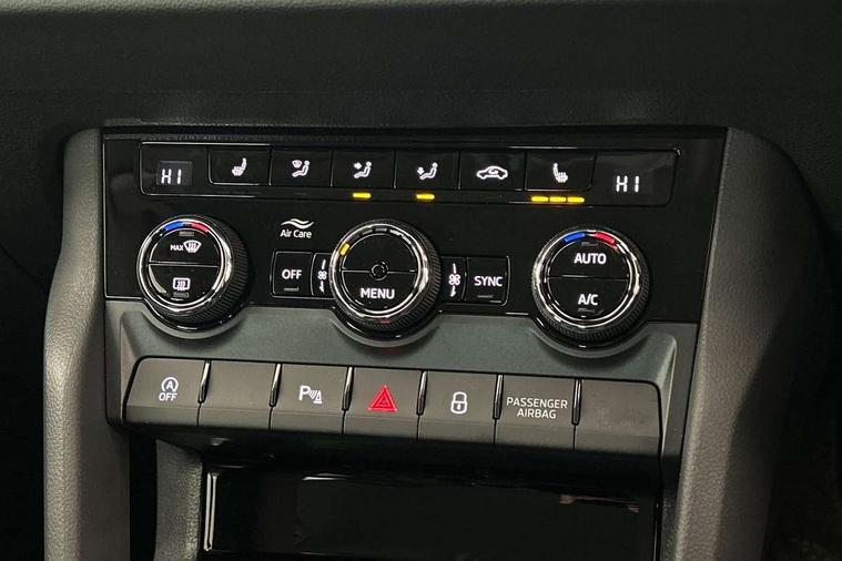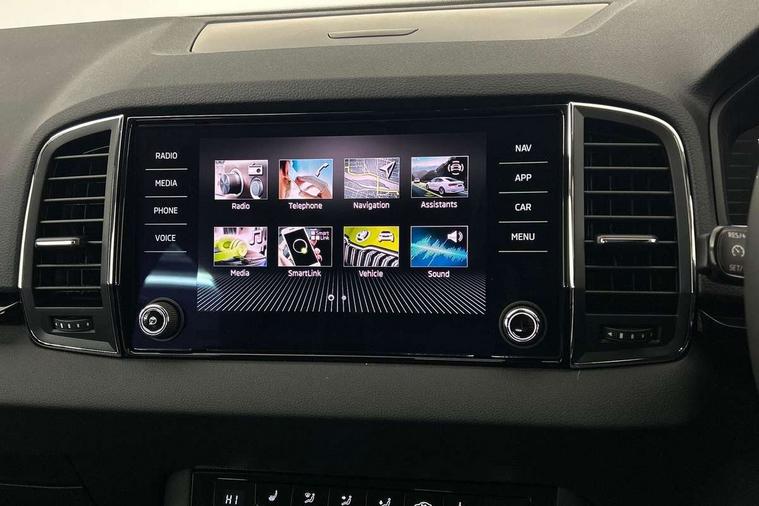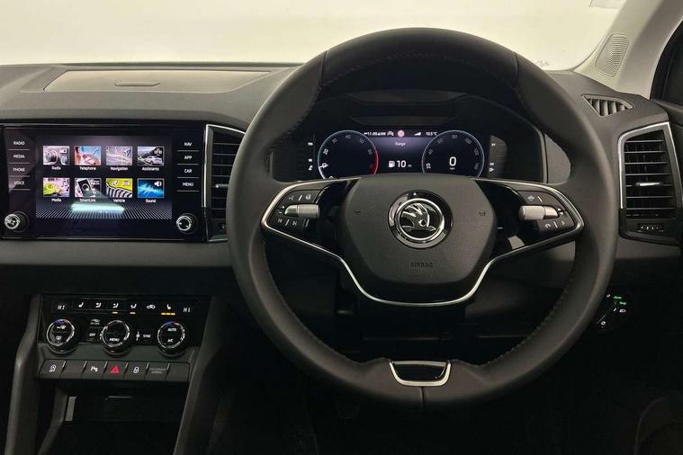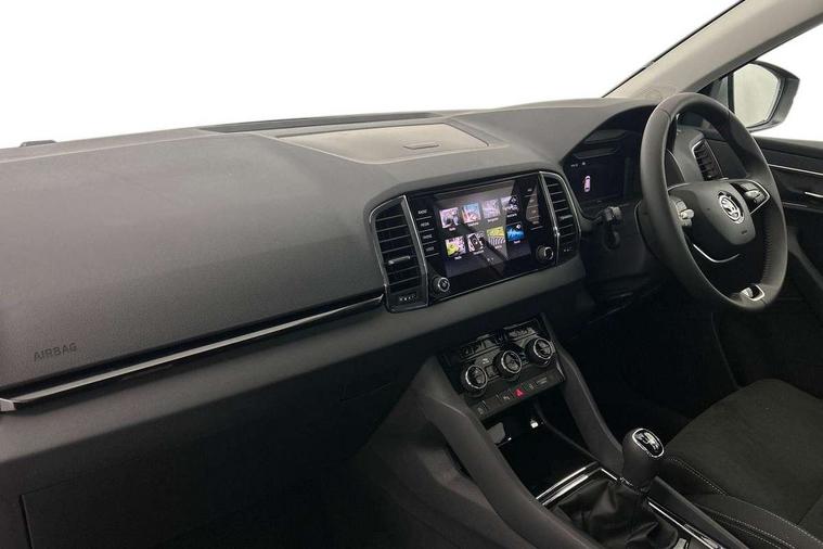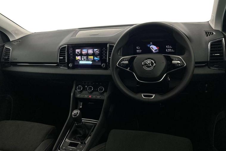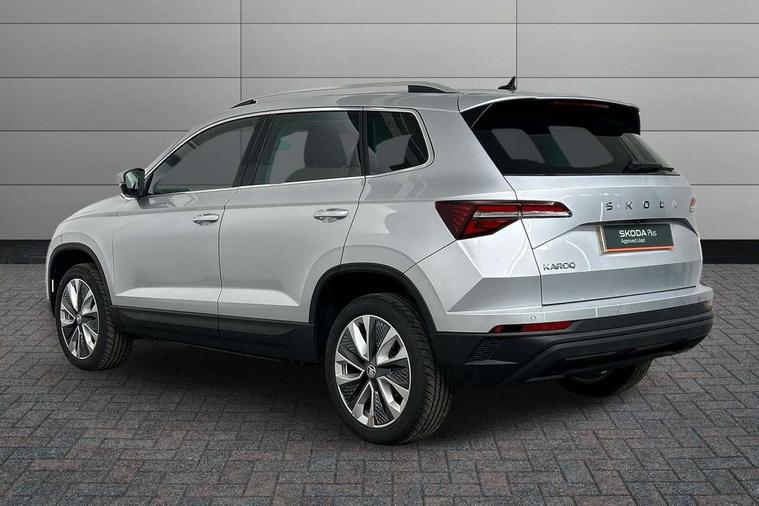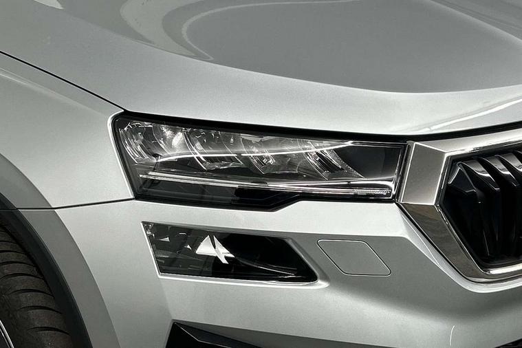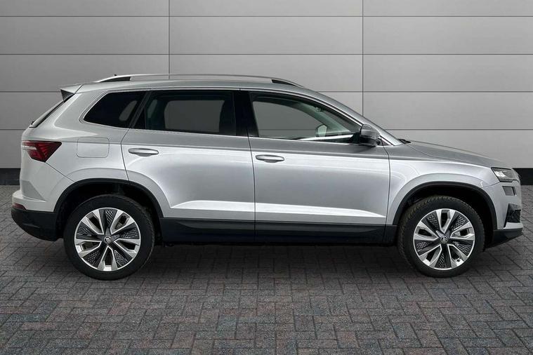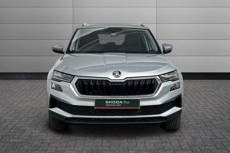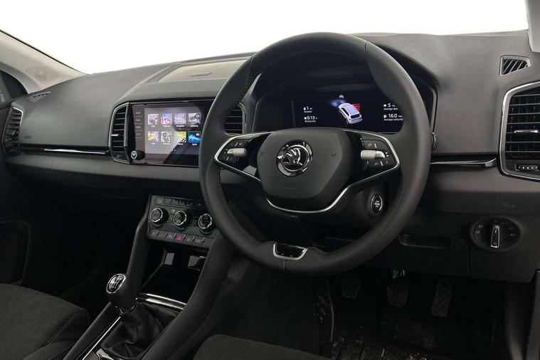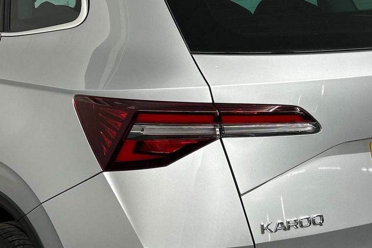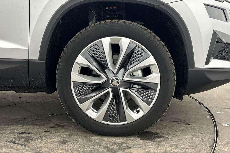 8" Digital display, Advanced driver attention and drowsiness monitor, Drive Mode Selection including ECO function, Electro-mechanical PAS, Emergency services call system, Outside temperature gauge, Sensor for driver assistance systems, Service interval indicator, SmartLink wireless for Apple and wired for Android, Start/stop system with regenerative braking, USB C Port x 2 in front centre console, Virtual Cockpit - 10.25" digital display, Wireless smartphone charging, DAB radio with Bluetooth, USB connection, Acoustic glass, Aero front windscreen wipers with intermittent function, Auto dimming rear view mirror with light and rain sensors, Black electric window control buttons, Body colour door mirrors and handles, Electric front and rear windows with child proof lock, Heated rear windscreen, LED daytime running lights, LED rear lights with high functionality welcome effect and dynamic indicators, Light assistant (coming/leaving home/tunnel light), Plastic scuff plates in door apertures, Privacy glass, Rear side wing doors, Rear spoiler, Rear window wiper with washer system and intermittent control, Safety reflectors on front doors, Third brake light, 1.5 litre bottle holders in driver and front passenger door panels, 12V socket in boot, 12v socket in front centre armrest with storage compartment and rear air vents, 2 spoke leather heated multifunction steering wheel, 2 x Tablet holder, 3 rear height adjustable headrests, 3 seat bench in 2nd row, 4 foldable roof handles with rear coat hooks, Black floor carpet, Chrome inner door handles, Foldable hooks in the boot, Front head restraints, Height adjustable front three point seats belts with tensioners, Height/reach adjust steering wheel, Ice scraper, Illuminated glovebox, Illuminated luggage compartment, Interior noise suppression, Isofix child seat preparation for front passenger seat, Isofix child seat preparation outer rear, Manual lumbar support for front seats, Pearl grey interior ceiling, Pen holder, Pollen filter, Rear boot cover, Rear reading lights, Rubbish bin door, Safety vest holder, Single front passenger seat, Storage box in upper central dashboard closed, Sunvisors with illuminated vanity mirrors, Textile floor mats, Ticket holder, Design Pack - Karoq, Non Smokers pack, Parking pack - Karoq, Automatic door unlocking in case of crash, Automatic fuel cut off in case of crash, Driver airbag, Electronic parking brake with auto hold function, Emergency rear braking signal, ESC (incl. ABS+MSR+ASR+EDS+HBA+DSR+RBS+MKB), Front side airbags, Head airbags, Hill hold control, Knee airbags, Passenger airbag with switch-off function, Pedestrian monitor, Seatbelt reminder signalisation and pretensioner for all seats, Three point seatbelts rear, Two tone horn, Tyre pressure monitor, Alarm with interior monitoring, back up horn and tilt sensor with safe function, Electronic engine immobiliser, Keyless entry and start/stop, Remote central locking with 2 remote folding keys, Black centre console, Chrome framed air vents, Satin black dashboard, Anti-theft wheel bolts protection, Breakdown and tool kit,