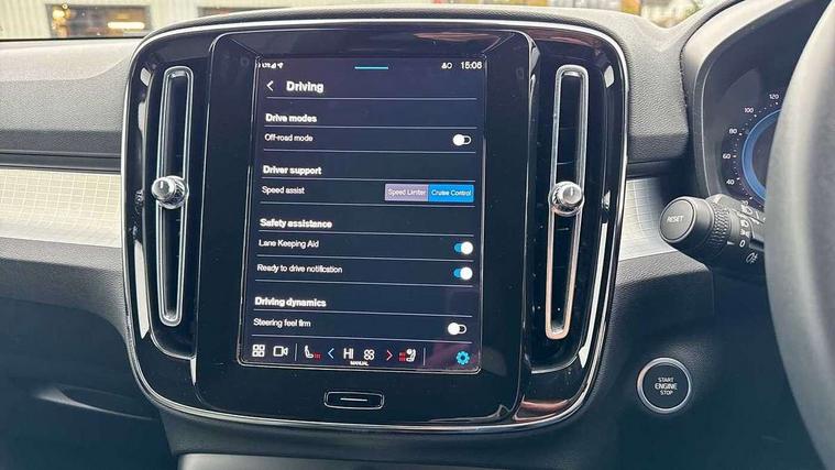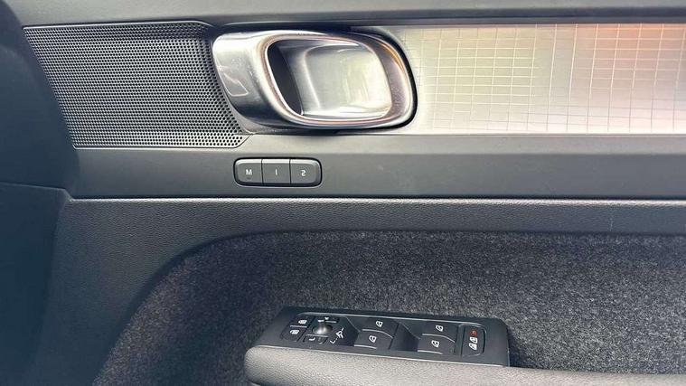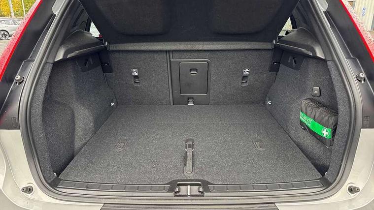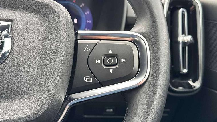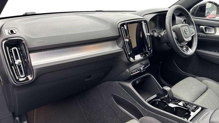 12.3" Progressive Driver Display, 9" centre console portrait touch screen, Adjustable steering wheel force, Bluetooth hands free telephone kit, Cruise control, Driver awareness - blind spot information system with steer assist, cross traffic alert with autobrake, rear collision warning and migitation, E-call, Front park assist, Google automatic services - Nav with google maps, apple carplay/android auto, voice recognition with google assistant, Hands free power tailgate, Lane keep assist with driver alert control, Oncoming Lane Mitigation, Rear park assist, Rear park assist camera, Speed limiter, Speed sensitive steering, Wireless/Inductive Mobile Phone Charging, Dynamic chassis, DAB Digital radio, High performance sound, 8 speakers/250W, front USB and 2 rear type C USB, Steering wheel mounted remote controls, Adaptive brake lights with high level LED brake lights, Auto dimming feature for exterior door mirrors, Auto dimming interior mirror, Automatic headlamp levelling, Automatic LED Headlights + Active high beam incorporating daytime running lights, Front aluminium tread plates, Front and rear electric windows, High gloss black front and rear skid plate, High gloss black mesh front grille with high gloss black surround, High gloss black window trim, Home safe and approach lighting, Integrated roof rails in high gloss black, LED front fog lights, Puddle lights, Rain sensor with automatic windscreen wiper activation, Rear side wing doors, Rear wiper, Roof antenna, Roof spoiler, Visible VIN plate, 12V socket in front tunnel console and luggage compartment, 2-Zone electronic climate control with CleanZone air quality system and pollen filter, 3 seat bench in 2nd row, 3 Spoke tailored steering wheel with chrome trim, 60/40 versatile split folding rear seat, A-pillar parking ticket holder, Ambient front door and instrumental panel lighting, Centre console cupholders and storage, Flexible load floor and grocery bag holder, Floor mats, Front door pocket and front cupholder illumination, Front footwell illumination, Front headrests, Front reading light and theatre lighting, Front seat cushion extensions, Front tunnel pocket, Glovebox bag hook, Heated front seats, Height adjustable passenger seat, Height/reach adjustable steering column, High gloss centre tunnel deco, Illuminated glovebox, Illuminated luggage compartment, Illuminated tailgate, Illuminated vanity mirrors, Integrated waste bin, Isofix attachments on outer rear seats, Load protection net, Multi directional lumbar support, Power driver seat with memory + exterior mirrors memory, Rear armrest / integral cup holders / storage tray, Rear headrests, Rear reading and courtesy lights, Single front passenger seat, Underfloor cargo storage, Climate pack without heated front seats - XC40, 3x3 point rear seatbelts, City safety with steering support with Pedestrian + cyclist + front collision warning with full auto brake and rear auto brake, Drivers knee airbag, Dual stage driver/passenger airbags, Electronic parking brake with auto hold, First aid kit, Front and outer rear seatbelt reminder and pretensioners, Front seats SIPS airbags, Hill descent control, Hill start assist, Inflatable curtain, Passenger airbag cut-off device, Power child locks on rear doors, Road sign information display, Run off Road Mitigation, Run off Road Protection, SIPS (Side Impact Protection System), Slippery road and hazard light alert, Stability and Traction Control with Spin control, Engine Drag Control and Corner Traction Control, Tyre pressure monitoring system, Vehicle deceleration control with Anti-lock Brake System, Electronic Brake Distribution and Emergency Brake Assist, Warning triangle, WHIPS whiplash protection system - front, Anti-theft alarm including immobiliser/volume sensor + level sensor, Key integrated remote control central locking + fuel flap with deadlocking system and auto open/close power windows, Keyless drive includes keyless entry and keyless start, Locking wheel nuts,