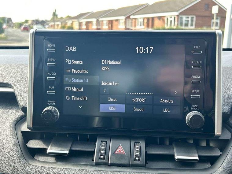 7" TFT multi information display, Analog tachometer, Apple car play and Android auto, Blind spot monitoring with rear cross traffic alert, Bluetooth system, Cyclist Detection, Drive mode selector, eCall emergency call system, ECO-driving indicator, Electric power steering, EV audible alert, Front parking sensors, Full range intelligent adaptive cruise control, Hybrid system indicator, Lane departure warning system, Lane trace assist, Lights on warning, Memory on adjustable speed limiter, My T Connected services, Night Time Pedestrian Detection, Power boot opening and closing, Push button start, Rear parking camera, Rear parking sensors, Remote boot door release in cabin, Remote boot door release in key, Road sign assist - RSA, Touch 2 Go navigation system including 3D maps and voice control, Traffic sign recognition, Trip computer, Voice control system, Vehicle Stability Control (VSC), 6 speakers, 8" Multimedia display touch screen, Auxiliary socket for external MP3 player, DAB audio, Toyota touch media system, USB connection, Adaptive automatic high beam, Automatic headlamp levelling, Automatic headlights, Automatic wipers, Automatically retractable door mirrors, Black rear spoiler, Black roof rails, Black Shark-fin antenna, Body colour door handles, Door mirror puddle lights, Dual exhaust pipes, Electric adjustable door mirrors, Electrochromatic rear view mirror, Emergency brake-light signal (EBS), Follow me home headlights, Front fog lights, Glass black protection moulding on side doors, Gloss black door mirrors, Gloss black front and rear bumper, Heated door mirrors, LED daytime running lights, LED High mounted stop lamp, LED rear combination lights, Meshed upper front grille, Power front windows, Power rear windows, Privacy glass, Projector LED headlights, Rear screen wiper - intermittent, Rear windscreen defogger, Silver front under-run, Silver rear under-run, Trailer sway control, Turning signal integrated indicators in door mirrors, 3 rear headrests, 60/40 split fold rear seat back, Black roof lining, Boot light, Clean air filter, Driver and front passenger personal light, Driver and front passenger Whiplash Injury Lessening seats, Driver and passenger sunvisors with illuminated vanity mirrors, Dual sided deck board in boot, Dual zone automatic air conditioning, Dynamic sports seats, Floor mats, Folding rear centre armrest, Front and rear bottle holders, Front centre armrest, Front footwell lights, Front headrests, Front seat and rear pockets, Front/rear roof mounted assist grips, Heated driver and front passenger seats, Illuminated entry system, Isofix child seat preparation, Leather gear shift with chrome surround, Light blue ambient lighting on front cupholders and open tray, Manual telescopic and tilt 3-spoke leather steering wheel with Chrome insert, Manually reclining and sliding front passenger seat, Multimedia switches on steering wheel, Pollen filter, Power height-adjustable sliding reclining and lumbar support for driver seat, Rear coat hooks, Rear door armrests, Rear passenger air vents, Rear view display in display audio screen with dynamic guide lines, Reclining rear seats, Satin chrome interior door handles, Sunglasses holder, Synthetic leather upholstery, Telephone and voice recognition switches on steering wheel, 3x3 point rear seatbelts, ABS/EBD, Acoustic vehicle alerting system, Adjustable front driver and passenger seat belt extender, Brake assist function, Brake hold function, Child proof door locks, Collision mitigation braking system, Driver/Front Passenger airbags, Driver/front passenger side airbags, Drivers knee airbag, Electronic parking brake, Electronic Stability Programme (ESP), Front and rear curtain airbags, Front and rear seatbelt reminder, Front passenger airbag detector, Hill start assist, Passenger airbag cut-off device, Pedestrian detection, Pre collision system, Seatbelt pretensioners with load limiters, Toyota safety sense, Traction control, Tyre pressure warning, Glass-breaking alarm sensors, Immobiliser, Intrusion alarm, Light - on and Key in reminder, Motion sensor alarm, Remote central locking, Smart entry + Smart start, Speed sensitive auto door locking, Tilt detection sensors, Piano black centre console with silver insert, Soft-touch black lower dashboard, Soft-touch black upper dashboard with silver insert, 19" 5 Spoke black alloy wheels, Full size spare wheel,