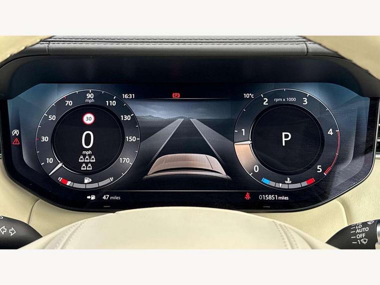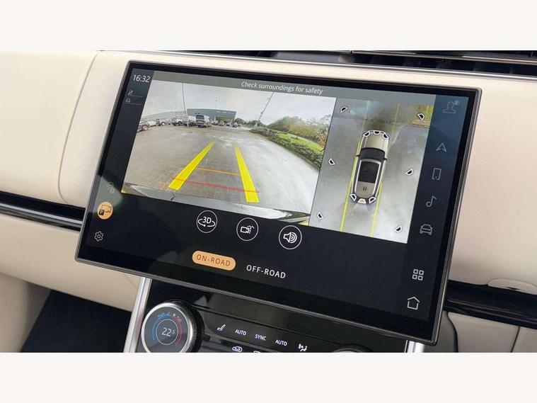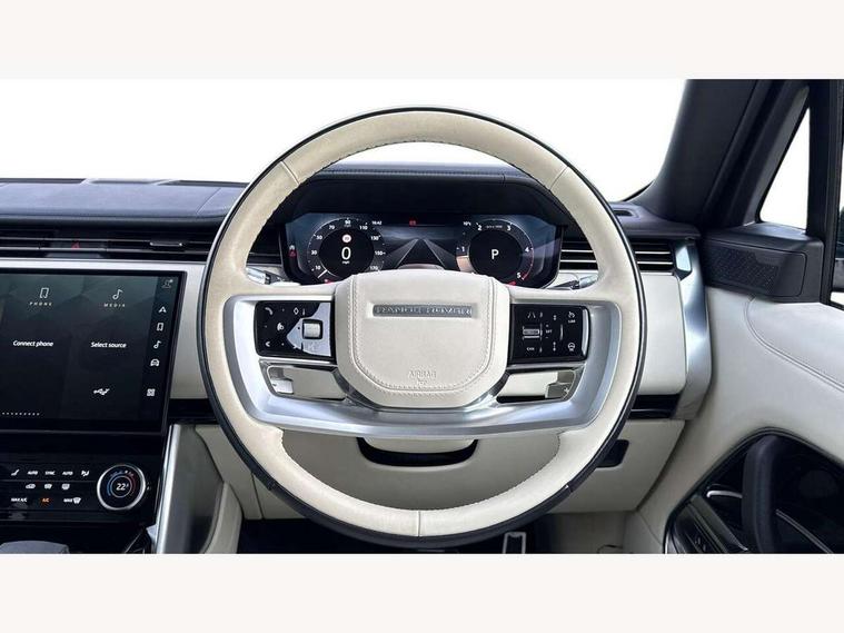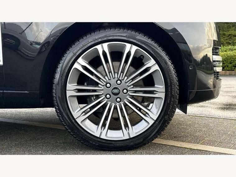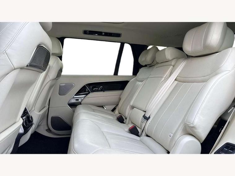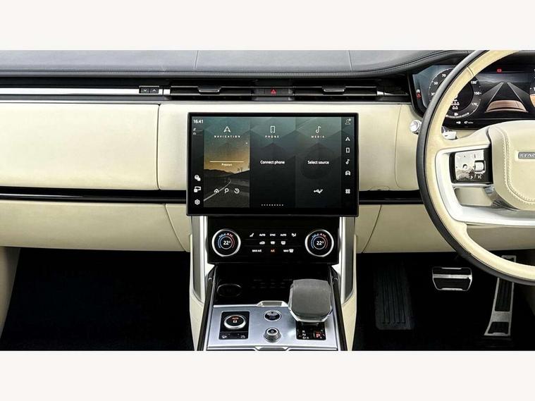 13.1" Touchscreen, 3D surround camera inc frwd traffic detection, vehicle clearance guidance, 3D view, clearsight ground view, manoevure light, 360 parking aid, wade sensing, Adaptive cruise control with steering assist, All Terrain Info Centre, All wheel steering, Android Auto, Apple car play, Blind spot assist, Bluetooth connectivity streaming, Configurable programs, Driver condition response, Eco mode, Electric power assisted steering (EPAS), Emergency call service, Front and rear parking aid, Head up Display, Interactive driver display, Lane keep assist, Powered gesture tailgate/boot lid, Rear collision monitor, Rear traffic monitor, Remote, Traffic sign recognition with adaptive speed limiter, Wi-Fi Enabled with data plan, Wireless device charging with phone signal booster, 8 speed automatic transmission, Active damper technology system, Adaptive dynamics, All terrain progress control, All Wheel Drive (AWD), Automatic access height, Electronic active differential with torque vectoring by braking, Electronic air suspension with dynamic response, Terrain Response 2 Auto, Twin speed transfer box, Digital Audio Broadcast radio-DAB, Meridian 1600W signature sound system, Pivi pro including smart settings, Connected navigation pro, nuance speech, USB socket, Acoustic laminated windscreen, Animated directional indicators, Automatic headlights, Automatic levelling headlights, Centre high mounted stop light, ClearSight interior rear view mirror, Electric windows with one touch open/close and anti trap, Flush deployable exterior door handles, Front and rear recovery eyes, Front fog lights, Headlamp power wash, Heated rear window, Heated washer jets, Illuminated metal treadplates with Autobiography script, Laminated front and rear side glass, LED tail lights, Power fold, auto-dimming, heated door mirrors with approach lights, Rain sensing windscreen wipers, Rear boot, Rear fog lights, Rear side wing doors, Rear wash/wipe, Side repeater indicators in mirror, Solar attenuating windscreen, Trailer stability assist, Winter wiper park position, 12V power sockets, 2 seat bench in 3rd row, 24-way heated and cooled, massage electric front seats with power recline heated and ventilated rear seats and heated third row seats, 3 seat bench in 2nd row, Air quality sensor, Bright metal pedals, Cabin air purification pro, Cabin lighting, Customer configurable single point entry, Driver and passenger front seat armrests, Easy boot loading, Ebony Carpet, Electric rear side window sunblinds, Four zone climate control, Front and rear cupholders, Front and rear grab handles, Front head restraints, Gearshift paddles, Heated steering wheel, Hook in load space, Loadspace cover, Loadspace light, Luggage tie down in loadspace, Multifunction steering wheel, Perforated Semi-Aniline leather upholstery, Rear centre armrest, Rear head restraints, Rear ISOFIX, Single front passenger seat, Soft close doors, SV bespoke carpet mats, SV bespoke full extended leather upgrade, Twin blade sunvisors with Illuminated vanity mirrors, Upper and lower glovebox, Versatile loadspace floor in tailgate, Online pack with data plan - Range Rover, 3x3 point rear seat belts, Anti-lock braking system (ABS), Black brake calipers, Brake hold function, Cornering brake control (CBC), Customer configurable autolock, DSC - Dynamic Stability Control, Electronic brake force distribution, Electronic parking brake, Electronic traction control, Emergency brake assist, Emergency braking, Front airbags with passenger seat occupant detector, Front side airbags, Hill descent control, Hill launch assist, Illuminated seat belt buckles, Low traction launch, Occupant protection assist, Power operated child locks, Roll stability control, Tyre pressure monitoring system (TPMS), Immobiliser, Intrusion sensor and alarm, Keyless entry, Locking wheel nuts, Remote central locking, Noble chrome controls,