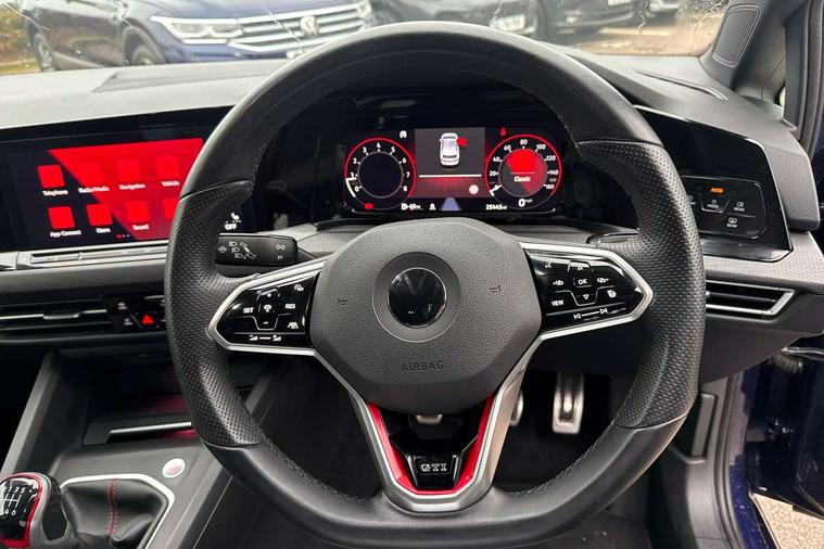 Adaptive cruise control (ACC) with speed limiter and front assist (reacting to vehicles pedestrians and cyclists), Car2X communication, Digital cockpit pro - 10.25" high resolution TFT dash display screen with customizable menus and information, Driver alert system, Driver profile selection, Dynamic road sign display, eCall - Emergency call service for SOS calls to emergency response, Lane assist, Lane change assistant, Mobile phone interface with wireless inductive charging function, Progressive steering, Speedo, rev counter, electronic odometer, trip, service interval display, exterior temperature and fuel gauge, Start/Stop function, Travel assist including side assist with electrically foldable door mirrors, Warning buzzer and light for front seatbelts unfastened, Wireless app connect, Front differential lock, Petrol Particulate Filter, XDS electronic differential lock for improved traction and handling, Premium USB cable in choice of either Apple or Android smartphone compatibility, Advanced high beam control dynamic light assist for LED matrix headlamps, Ambient lighting, exterior illuminated styling elements at the sides, Auto dimming rear view mirror, Automatic headlamp activation with Coming home and Leaving home feature, Body colour bumpers, Body colour door handles, Body colour door mirrors with integrated indicators, Body colour rear roof spoiler, Chrome plated tailpipes (1 either side), Front and rear electric windows, GTI style bumpers, Heat insulating glass windscreen, Heated rear windscreen, High level 3rd brake light, Highway light, Illuminated front grille, IQ.Light - LED Matrix headlights, dynamic headlight control with advanced high beam control matrix dipped main beam + LED DRL + 22 LED lights, LED front fog lights with 5 honeycomb design, LED License plate illumination, LED rear combination lamp inlcuding dynamic turn signal, Rain sensor, Rear fog light on one side and reversing lights on both sides, Rear tinted glass 65% light absorbing from B pillar backwards, Rear windscreen washer and wiper with interval delay, Remote electrically heated, adjustable and foldable door mirrors, including door mirror puddle lights and reverse activated kerb-view adjustment on pa, Welcome light, 12V socket in front centre console, 12V socket in luggage compartment, 3 rear head restraints, 3 zone climate with controls in the rear, Aluminium gear knob, Ambient lighting - Customisable 30 colour ambient lighting, Black roof lining, Brushed stainless steel pedals, Centre console, Chrome plated surround to electric mirror button, window switch and air vent surrounds, Drivers and front passengers sun visors with vanity mirrors, Front + rear carpet mats, Front centre armrest with storage compartment, Front cupholders x 2, Front reading lights x 2 incorporating LED technology, Front seat lumbar support adjuster, Front sports seats, Glovebox, Height adjustable front seats, Height and reach adjustable steering wheel, Isofix child seat preparation for 2 rear child seats and front passenger seat, Leather wrapped multifunction sports heated steering wheel, Luggage compartment lighting, Removable luggage compartment cover, Split folding backrest with centre armrest and unsplit rear seat bench, Woven fabric storage compartments in front and rear doors, 3 point height adj front seatbelts + pretensioners, 3 rear three point seatbelts, ABS, Driver and front passenger airbag with front passenger airbag deactivation, Drivers and front passengers safety optimised head restraints, Electronic parking brake with auto hold, ESC (Electronic Stability Control), Extended pedestrian protection measures, Front and rear passengers curtain airbag system including front side airbags, Front disc brakes, Rear disc brakes, Two tone horn, Tyre pressure monitoring system, Alarm with interior protection and deactivation via infotainment system, Electronic engine immobiliser, Keyless entry with start/stop button on centre console, Black metal chrome decorative inserts in dash and front door trim panels, Soul dashboard,