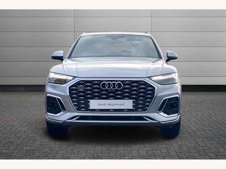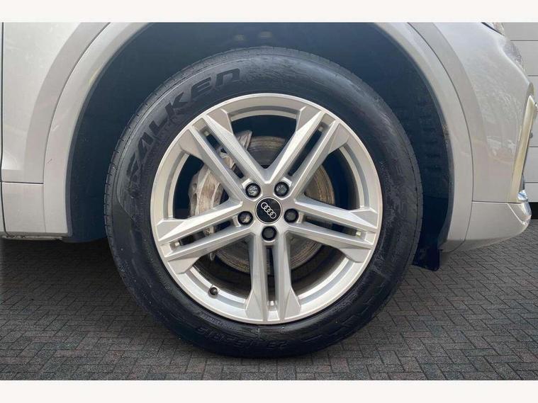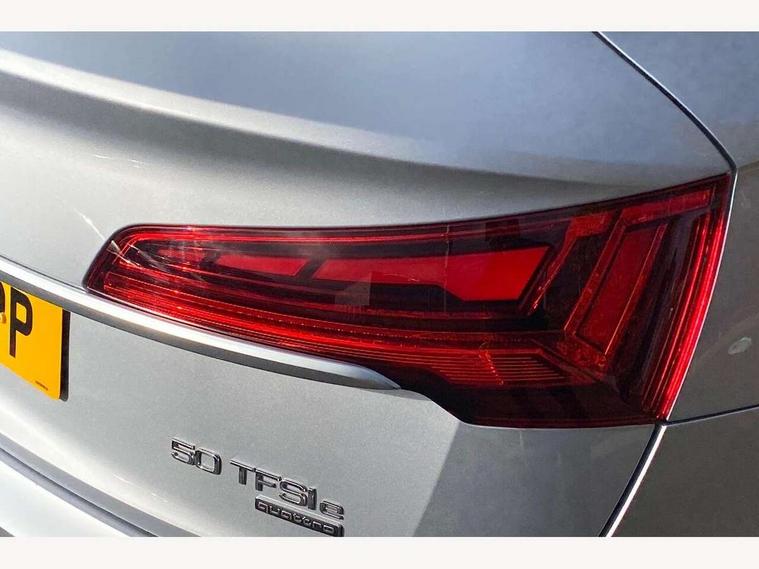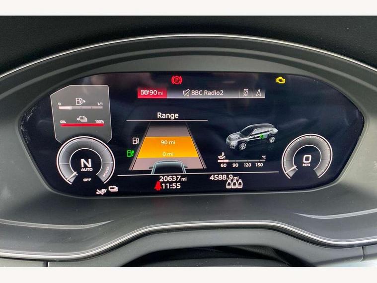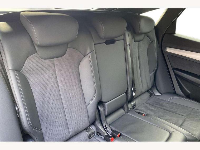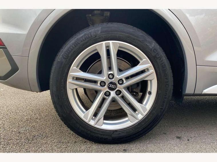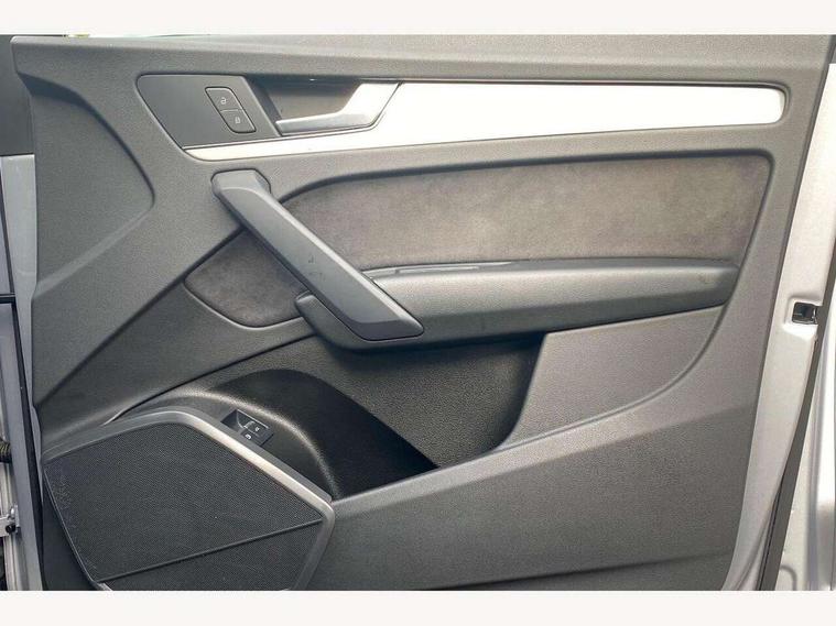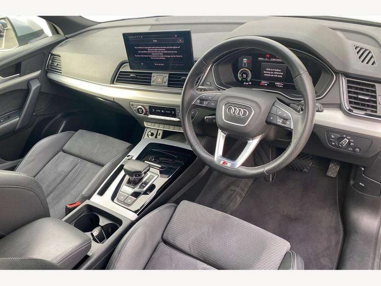 Audi connect safety and service (e-call), Audi connect with Amazon Alexa Integration, Audi drive select, Audi virtual cockpit plus with 12.3" screen and three different layout designs, Audi wireless smartphone interface, Automatic start-stop system with coasting functionality and efficiency programme, Bluetooth interface, Electro - mechanical power assisted steering, MMI navigation plus with 10.1" touch screen, Power tailgate, Reversing camera, Service interval indicator, Voice control system with Audi hotword activation "Hey Audi", 3 pin 10 amp domestic charging cable, Dynamic suspension, Quattro on demand, Type 2 mode 3 22kW 32 amp charging cable, Type 2 socket for AC charging, 2 x USB charging port with aux input socket, DAB Digital radio, Acoustic windscreen, Aluminium roof rails, Audi matrix LED headlights with dynamic front and rear indicators, Auto dimming rear view mirror, Automatic headlights and windscreen wipers, Body colour bumpers, Body colour door mirrors, Body colour rear diffuser with matt aluminium silver surrounds, Body colour underbody protection, Chrome plated exhaust trims, Door sills in Selenite silver, Electric adjustable/heated/folding door mirrors, Front air inlet surrounds in aluminium, Front and rear electric windows, Front radiator grille in honeycomb design, Headlight washers, Lower bumpers painted in contrast Manhattan grey, Rear chrome trim strip below lights, Rear privacy glass and rear side windows, Rear spoiler, Rear wiper, Roof bars, S Line badges on the front wings, S Line front and rear bumpers, S Line side skirts, 3 rear headrests, 40:20:40 split folding rear seat with rear centre armrest, Black cloth headlining, Comfort front centre armrest, Contrast stitching on seats, steering wheel and gear lever gaiter, Deluxe 3 zone electronic climate control, Front/rear floor mats, Gear lever in black leather, Heated front seats, Height adjustable front head restraints, Height/reach adjustable steering column, Illuminated door sill trims with S logo, ISOFIX child seat mounting and top tether, Manual seat adjustment with 4-way electric lumbar support, Rear seat bench plus, Sunvisors with vanity mirrors, Trunk roller cover, High gloss pack - Q5, LED interior light pack - Q5, 3 point seatbelts on all seats, 6 airbags - Driver, front passenger, curtain and side airbags, Electrically operated child locks on rear doors, Electromechanical parking brake, Electronic stabilisation control including ABS, ASR and EDL, Front passenger airbag deactivation, Hill descent control, Hill hold assist, Multi collision brake assist, Pop-up bonnet for pedestrian protection, Pre sense city, Seat belt force limiter, Seatbelt monitoring, Tyre pressure warning, Warning triangle and first aid kit, Anti theft alarm, Anti-theft wheel bolts, Keyless Go access/ignition system, Matt brushed aluminium inlays, Tool kit, Tyre repair kit,