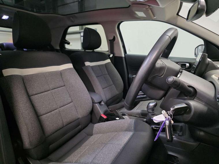 7" touch screen, Apple car play/Android Auto, Bluetooth Handsfree Phone Connection, Citroen connect box emergency assist system, Citroen connect Nav with connect box, Cruise control + speed limiter, Driver alert system, Exterior temperature gauge with frost alarm, Gear selection indicator, Lane departure warning system, Rear parking sensor, Variable PAS, 6 speakers, Auxiliary input socket, Bluetooth audio streaming, DAB Digital radio, RDS radio with MP3 player, Steering wheel mounted controls, USB socket, 3D effect LED rear lights, Acoustic windscreen, Automatic lights and wipers, Body colour door handles, Body coloured bumpers, Cornering front fog lights, Dark tinted rear windows, Electric adjustable/heated/folding door mirrors, Electric front windows - anti trap + one touch, Electrochrome rear view mirror, Gloss black door mirrors, Gloss black finish B pillar, Gloss black rear insert with Cactus lettering, Hinged rear windows, LED daytime running lights, Rear spoiler, Rear wiper, Thermal insulated panoramic sunroof, Wheel arch extensions, 1/3 to 2/3 split folding rear seats, 12V socket, 3 rear headrests, Automatic air conditioning, Carpet mats, Cupholders in centre console, Dashboard storage, Driver's footrest, Driver/passenger sunvisors and vanity mirrors, Front armrest with storage box, Front courtesy lights, Front cupholders x 2, Front door pockets, Front head restraints, Height adjustable driver's seat, Height adjustable passenger seat, Isofix system on outer rear seats, Leather steering wheel, LED rear reading lights, Load lashing points, Lumbar adjustment for driver seat, Reach + rake adjustable steering column, Rear coat hooks, Rear door pockets with bottle holders, Rear parcel shelf, Rear storage pockets, City camera pack - C4 Cactus, 3x3 point rear seatbelts, ABS + EBD + EBA, Active brake assist, Curtain airbags, Driver/Front Passenger airbags, Electric child locks, ESP, Front lateral airbags, Front seatbelt pretensioners with force limiters, Front side airbags, Height adjustable front seatbelts, Hill start assist, Passenger airbag deactivate switch, Road sign information display, Seatbelt warning lamp, Tyre pressure monitor, Alarm, Deadlocks, Locking wheel nuts, Remote central locking, Transponder immobiliser, Space saver spare wheel,