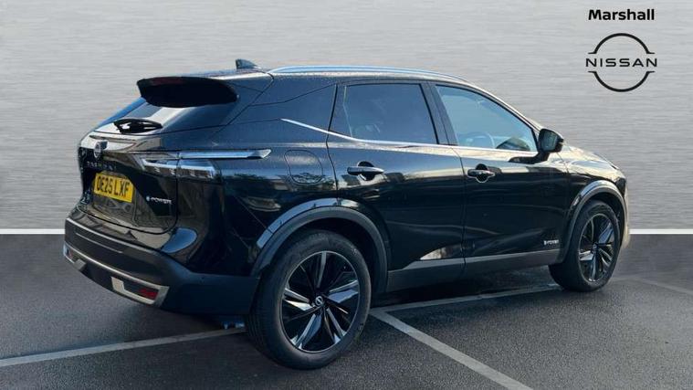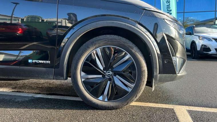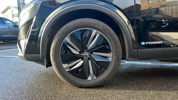 2 front USB-C ports, 2 rear USB-C ports, 360 degree Intelligent around view monitor with moving object detection, Advanced windscreen head up display, Blind spot warning, Drive assist custom mode, Drive modes (sport, normal, eco), Driver drowsiness and attention warning, e-Pedal step, Electric speed sensitive power steering, Emergency and breakdown call, Emergency lane keep assist, Emergency Stop Signal (ESS), Engine start/stop button, EV mode switch, Event data recorder, Front and rear parking sensors, Full Digital 12.3" TFT Digital Combimeter, Google virtual personal assistance, Hands free power tailgate, Idle stop/start system, In-car WIFI hotspot, Intelligent Cruise control (ICC), Intelligent driver alert system, Intelligent forward collision warning, Intelligent lane intervention, Intelligent speed assist, Lane departure warning system, Nissan connect 12.3 inch touchscreen infotainment system, Nissan connect navigation with google maps, Nissan connect services 2.0 (Google Automotive System), Outside temperature sensor, Propilot assist with Navi-Link, ProPilot park, Rear cross traffic alert, Remote control services - door locks, lights, horn and car locator, Reversing detection, Traffic jam pilot, Traffic sign recognition with legal speed adjustment, Trip computer, Wireless Apple CarPlay/Android Auto, Wireless charging pad, Limited slip differential, 6 speakers, AM/FM audio system with DAB, Bluetooth audio streaming, Auto dimming frameless rear view mirror, Auto rear wiper when reversing, Body colour mirror caps, Body coloured door handles, Bodyside mouldings, Chrome side window finisher, e-POWER badging, Electric auto folding door mirrors, Electrically adjustable and heated door mirrors with LED turn indicator, Follow me home headlights, High beam assist, Intelligent auto headlights, LED 3rd brake light, LED daytime running lights, LED headlights with adaptive driving beam, LED rear lights, LED sequential turn lights, One touch front and rear electric windows with remote opening and closing, One touch passenger window, Partially body coloured bumpers, Rain sensing wipers, Rear privacy glass, Rear roof spoiler, Rear side wing doors, Rear styling plate, Reverse tilting door mirrors, Shark fin antenna, Silver roof rails, Splash free rain sensing wipers, Super RED rear LED lights, Super UV and infrared cut glass, Thermaclear heated windscreen, 12v power socket in dashboard and luggage, 3 bench rear seats in 2nd row, 3 rear headrests, 60/40 split folding rear seat bench, Chrome interior door handles, Dark headlining, Driver and passenger sunvisors with illuminated vanity mirrors, Driver seat back pocket, Dual zone automatic climate control with pollen filter, e-POWER shifter, Electrically adjustable driver seat, Electrically adjustable lumbar support for driver, Fixed Glass roof with electric sunshade, Front centre console and armrest, Front cupholders, Front door with bottle holders, Heated front seats, Heated steering wheel, Height adjustable front headrests, Height adjustable passenger seat, Luggage board system, Luggage space lighting, Manual adjustable lumbar support for passenger, Multifunction steering wheel, Passenger seat back pocket, Quilted/PVC upholstery, Rear door bottle holders, Rear seat armrest with 2 cupholders, RGB ambient light (Full area coverage), Single front passenger seat, Smooth leather steering wheel, Tilt/telescopic adjustable steering wheel, Two rear isofix child seat anchorage points with top tether, 3x3 point rear seatbelt pretensioners + load limiters, ABS with EBD and brake assist, Autonomous emergency braking, Child locks on rear doors, Curtain and front side, far side airbags, Driver and passenger airbags, Driver, passenger and 2nd row rear seat belt reminder, Electric handbrake with auto hold function, Front seatbelt pretensioners + load limiters, Height adjustable front seatbelts, Hill start assist, Intelligent blind spot intervention, intelligent front emergency braking, Intelligent rear automatic braking, Tyre pressure monitoring system, Vehicle dynamic control, Engine immobiliser, Intelligent key with walk away lock and approach unlock functions, Remote central door locking with deadlocking, Thatcham alarm, 19" Diamond cut alloy wheels, Tyre puncture repair kit,