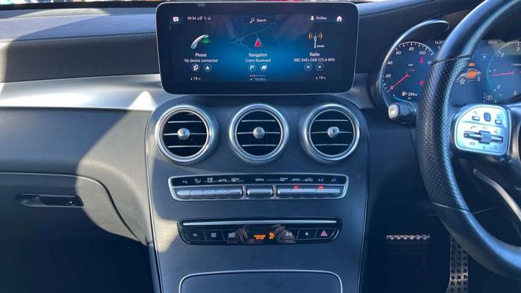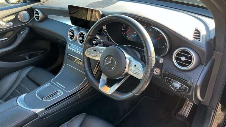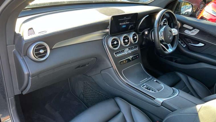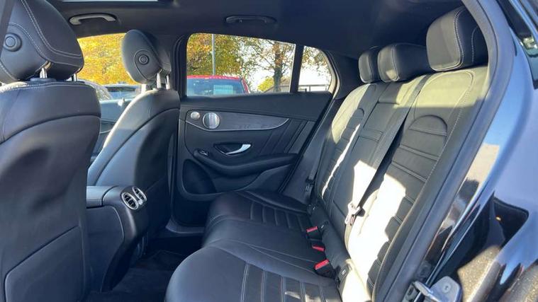 360 degree camera, Active parking assist with parktronic system, Attention assist, Bluetooth interface for hands free telephone, Collision prevention assist plus, DYNAMIC SELECT with a choice of driving modes (ECO, Comfort, Sport, Sport+ and Individual), ECO start/stop function, Hard disk navigation, Hey Mercedes Voice activation, Instrument cluster with12.3-inch digital instrument cluster display. High resolution instrument cluster screen with choice of three display styles, MBUX augmented reality for navigation, Mercedes connect me with remote online services, Multi function trip computer, Outside temperature display, rear seatbelt status indicator, Power opening/closing tailgate, Remote boot release, Service indicator (ASSYST), Smartphone integration with Apple CarPlay and Android auto, Traffic sign assist, Wireless charging, 66 litre fuel tank, Diesel particulate filter, Sports suspension tuned for improved handling and driving dynamics, Burmester surround sound system, DAB Digital radio, MBUX multimedia system with DAB digital radio and touchpad including satellite navigation, Media display 10.25-inch touchscreen display, Pre installation for Mercedes Benz Link, USB ports x 2 in centre console, Adaptive brake lights, AMG bodystyling - AMG front apron with sporty air intakes and chrome trim element, AMG diffuser-look rear apron with insert in black, Body colour door mirrors, Body coloured bumpers, Electric sliding glass sunroof, Electric windows one touch open/close, Electrically adjustable and heated door mirrors, Exhaust tailpipe finisher, Front and rear exterior chrome trim, Headlamp assist automatic headlamp activation, LED tail lamp, Multi beam LED headlamps with 84 indiviually control LED, daytime running lamps, Active Light, cornering light, enhanced fog lamp, adaptive Highbeam Assist, Privacy glass (to rear of B post), Radiator diamond grille, Rain sensor windscreen wipers, Range adjustable headlights, Rear wiper, Running boards, Tinted glass all round, Two chrome plated tailpipe trim elements, 2 way rear head restraints, 3-spoke multifunction AMG steering wheel in black nappa leather with flattened bottom section, chrome inserts and perforated leather in grip area, 40:20:40 split folding rear seats, Ambient lighting, AMG floor mats with edging and embroidered AMG lettering, AMG sports seats, Automatic child seat recognition sensor, Automatic climate control, Black roof lining, Dividing net - rear, Double cup holder in centre console, Electrically adjustable height/reach steering wheel, Front armrest with storage box, Front door sills with Mercedes Benz lettering, Front seats with electric adjust (backrest, height and seat cushion inclination) with 4 way electric lumbar support and manual cushion depth adjust, Gearshift paddles, Heated front seats, Illuminated and lockable glove compartment, Leather upholstery, Multifunction steering wheel, Rear top tether child seat ISOFIX attachment, Sports pedals with stainless steel surfaces and rubber studs, Sunvisors with illuminated vanity mirrors, Easy pack - GLC, Easy-pack load compartment cover, Interior lighting pack - GLC, Keyless Go comfort pack - GLC, Memory pack - GLC, Mirror pack - GLC, Storage pack - GLC, 3 rear 3 point seatbelts, Active bonnet, Adaptive brake system with HOLD function and brake drying in the wet, ASR, Black seat belts, Brake calipers with Mercedes-Benz lettering + perforated brake discs, Child proof door locks, Dual-stage airbags - driver and front passenger, driver knee bag and window bags for driver, front passenger and rear passengers, Electronic parking brake, Electronic stability programme (ESP) with curve dynamic assist and cross wind assist, Front and rear seatbelt reminder, Front passenger seat occupancy sensor, Hill hold function, Tyre pressure monitoring system, Warning triangle and first aid kit, Alarm system/interior protection/immobiliser, Automatic door locking, KEYLESS-GO starting function, Remote central locking, Open pore black ash wood trim, 20" 5 twin spoke light alloy wheels painted in titanium grey with high sheen finish and tirefit, Tirefit tyre sealant kit,